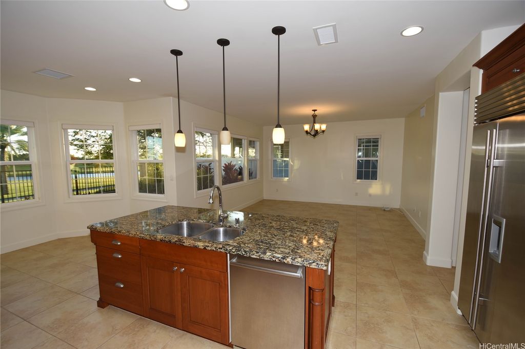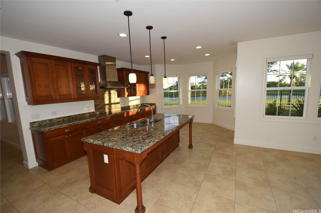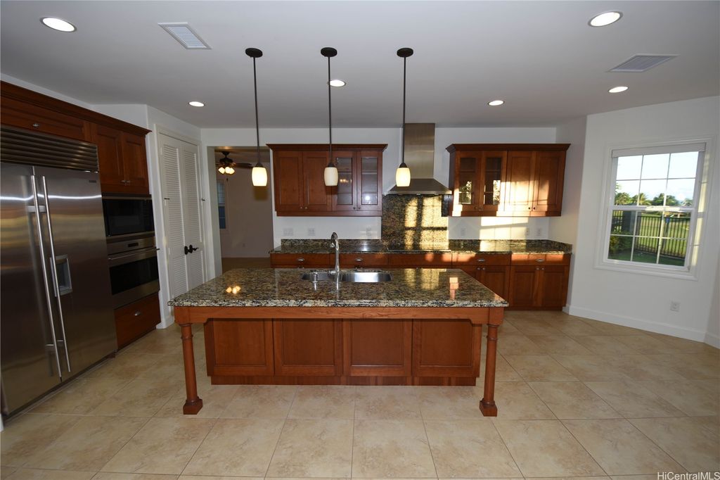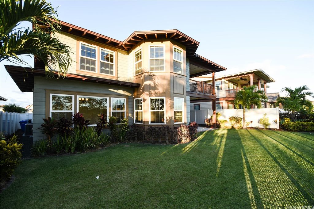 Beautiful 5 bedroom 3.5 bathroom home located on Hole 8 of the private Hoakalei Country Club. The downstairs bedroom is a mother-in-law suite with its own bathroom. There is also an additional 1/2 bath on the first floor. This home features leased Photo Voltaic (PV) Panels that will significantly reduce your electricity bill, a beautiful kitchen with high Subzero, Viking, and Bosch appliances, 18 inch porcelain throughout the first floor, granite countertops, unobstructed views of the 8th hole and pond, landscaped front and backyards, and a 3 car attached garage (tandem) with a 2 car driveway. $50K credit with full price offer.