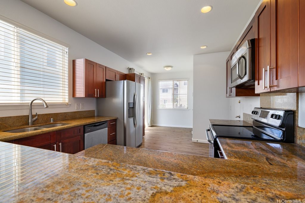 This very clean & private 3 bedroom, 2.5 bathroom house has a 2 car garage & extra parking stall. Easy guest parking across from your next home. Enjoy peek-a-boo ocean views too! Relax with peace of mind & privacy offered by the gated community of Seascape at Makakilo. Love the spacious living room & kitchen with plentiful counter space. Enjoy the cool mountain air being nestled in the hills of Makakilo. Convenient access to H- 1 freeway makes commuting easy. Minutes from Costco, Home Depot, Target, TJ Maxx, Koolina, dining, movie theatres & so much more. Quick drives to beautiful beaches. Convenient to Schofield Barracks, Wheeler Field & Joint Base Pearl Harbor Hickam. You will love everything about this house. Seller will credit Buyer 2.5% toward closing costs. Easy to see. Have your agent arrange your appointment showing.