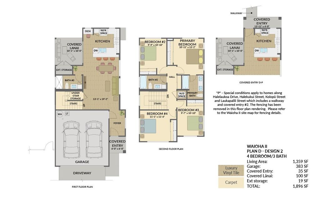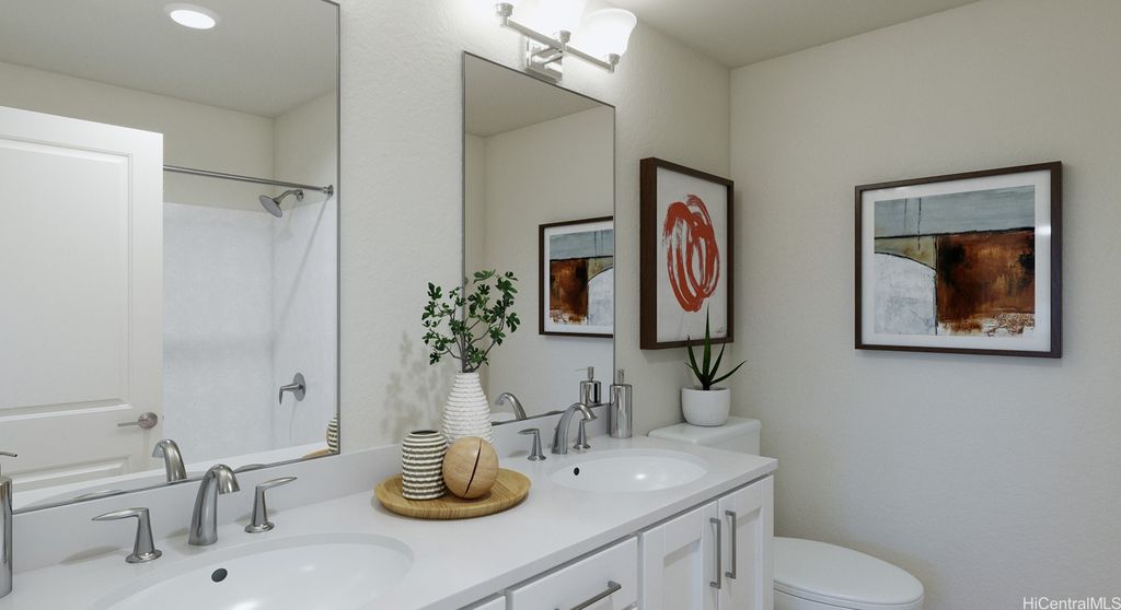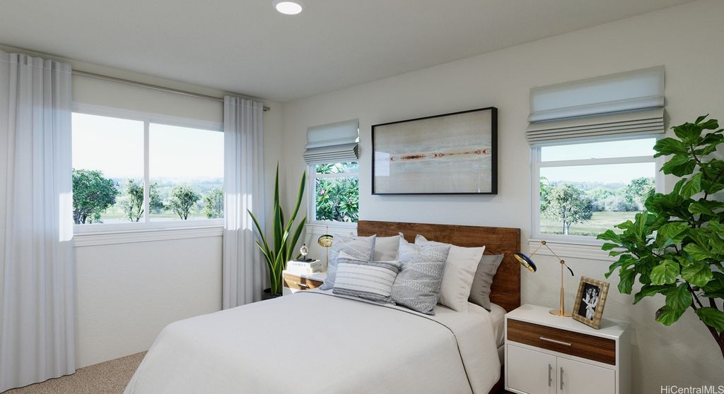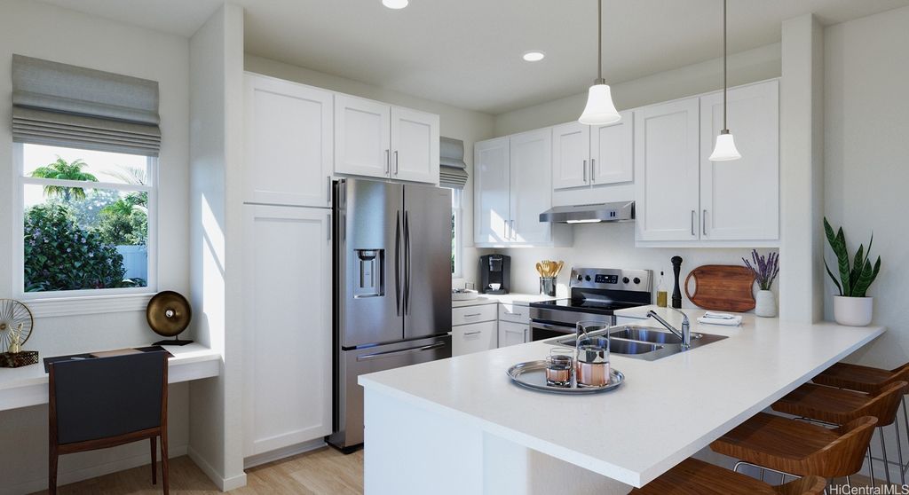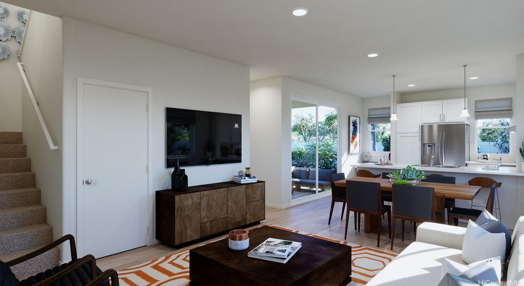 Modern, Efficient, and Convenient! BRAND NEW construction at Waioha II, Ph 3. This single-family detached condominium home with a vinyl fenced yard is located in the highly desirable Koa Ridge master planned community located in Central Oahu. Plan DP design 2 is a 4 bedroom, 3 bath two story home. Just a short drive to Costco, Foodland, restaurants, Central Oahu Regional Park, Waikele Shopping Center and more. Ask about our AWESOME closing costs credit on select homes. White shaker cabinets in the kitchen & bathrooms with soft close drawers and doors. Artic white HI MACS solid surface countertops in the bathrooms with contemporary oval sinks. Split air conditioning units in all bedrooms and living area will keep you cool in the comfort of your home. A solar water heater as well as EV ready for your electric car and PV ready if you plan to add photovoltaic panels.