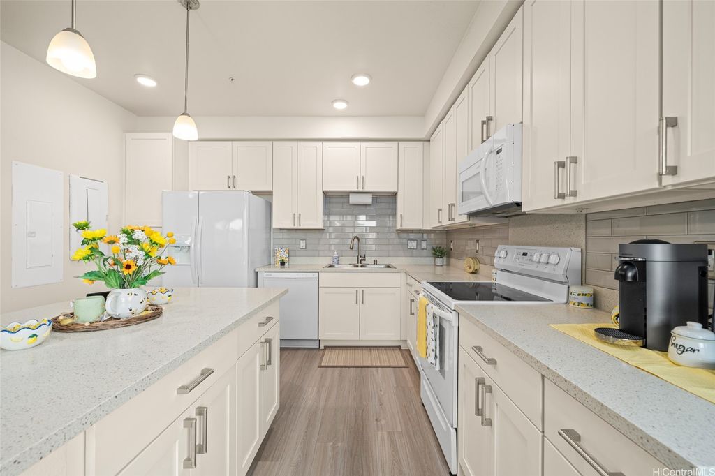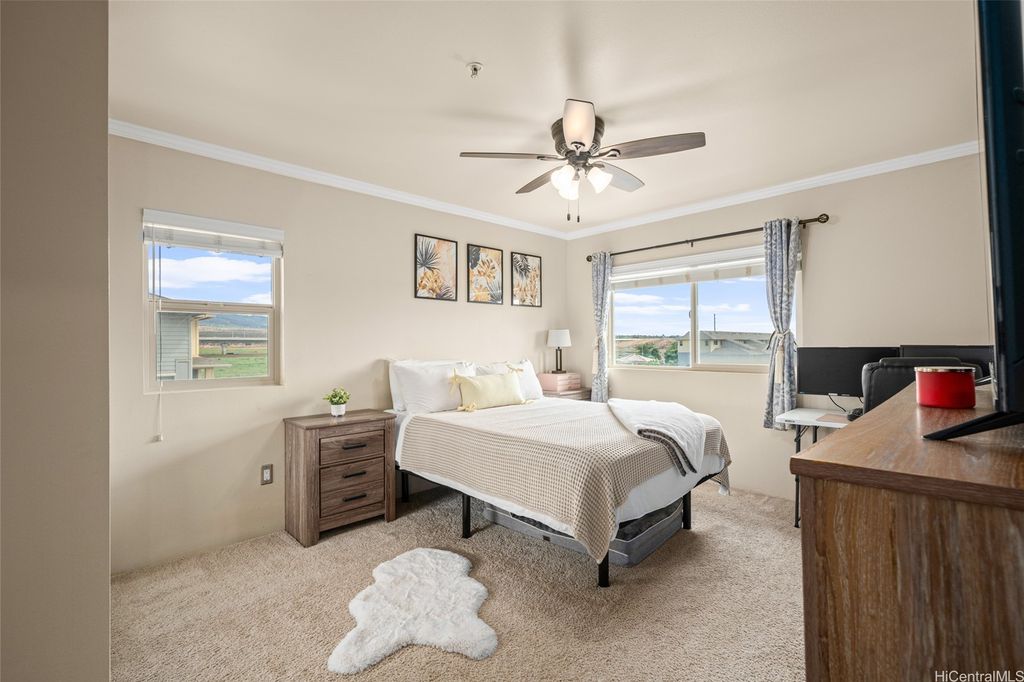 Welcome home to this immaculate and highly coveted CORNER UNIT townhome with beautiful mountain views. You'll love this bright and airy home with lots of natural light! This excellent condition 2 BR 2.5 bathroom townhome with 2 assigned parking stalls features a spacious kitchen with many upgrades, stylish backsplash and crown moldings in the living room. Split A/C units in both bedrooms and living room. Close distance to Ka Makana Ali'i Mall, Kroc Center, UH west campus, eateries, and close proximity to H1 to allow quick access onto the freeway. Pets Allowed (Verify). (Monthly Tax amount is based upon year 2024)