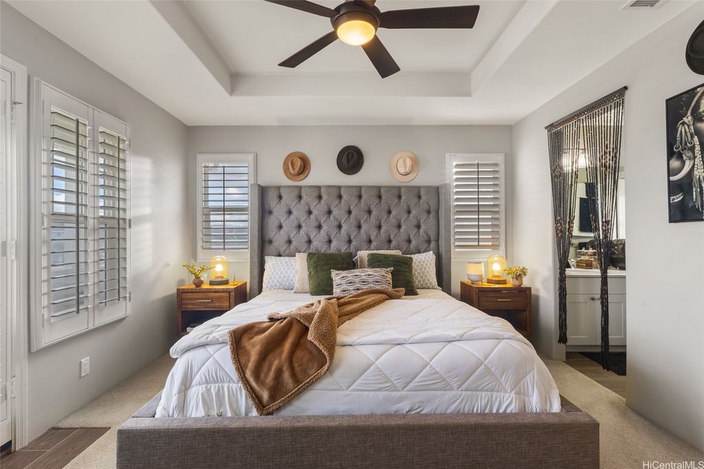 Welcome to Kuapapa at Hoakalei, where everyday feels like a vacation and you're steps away from the ocean. This move-in ready 4 bedroom, 3 bathroom, Model 25.20 home offers a spacious & flexible layout w/ high-end touches throughout, including plantation shutters, Corian countertops, and stainless steel appliances. The landscaped yard features a smart irrigation system, and the extended lanai is perfect for entertaining or just relaxing outdoors. You'll also appreciate the large 2 car garage. This home comes fully equipped with 16 owned solar panels (5.2kW) & a Tesla Powerwall 2 battery, giving you energy savings & backup power when you need it. As part of the Kuapapa community, you'll enjoy access to the private Wai Kai Lagoon & exclusive neighborhood amenities like the resort-style pool and hot tub. Ideal for soaking, swimming, or simply enjoying the island sunshine. Plus your HOA dues cover cable, high-speed internet, & home phone service, making it even easier to enjoy the lifestyle here. Fully furnished. Located towards to end of Kaileolea Dr., behind Ocean & Halili St. & just a short distance from the ocean.