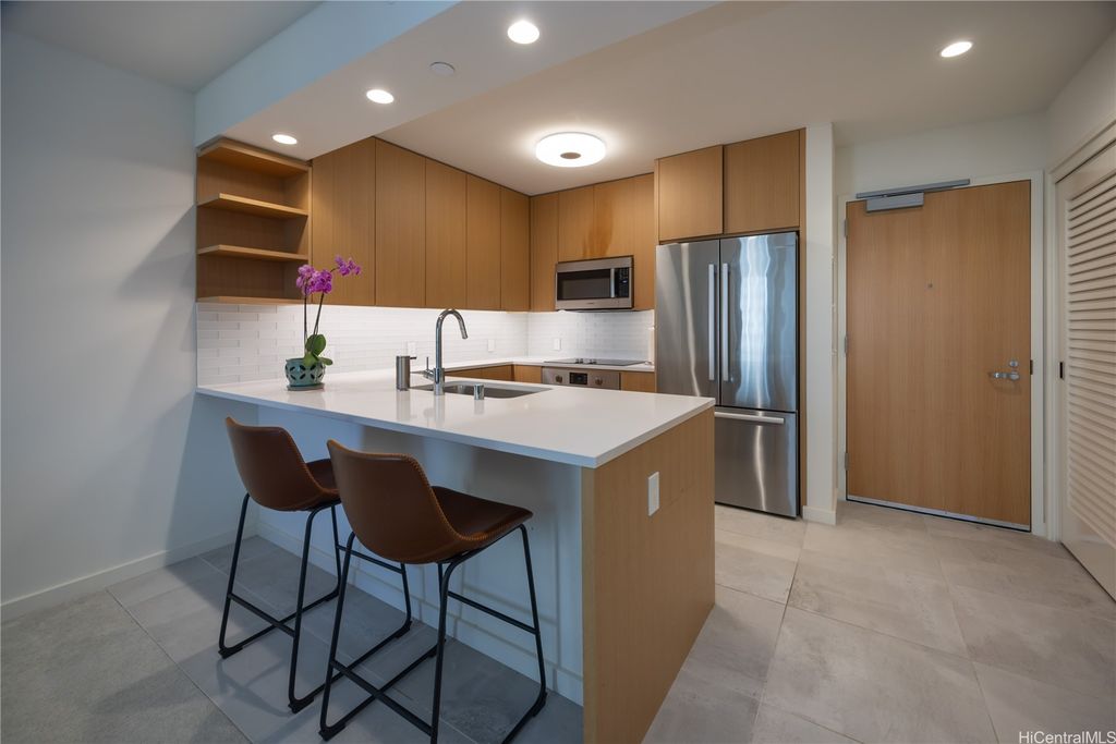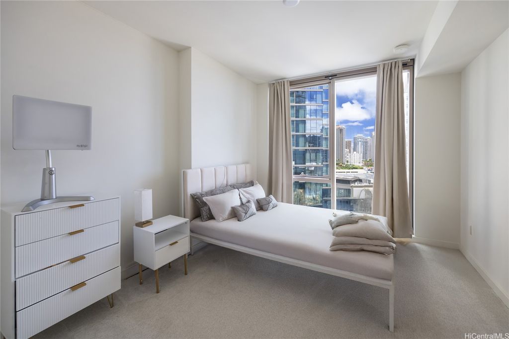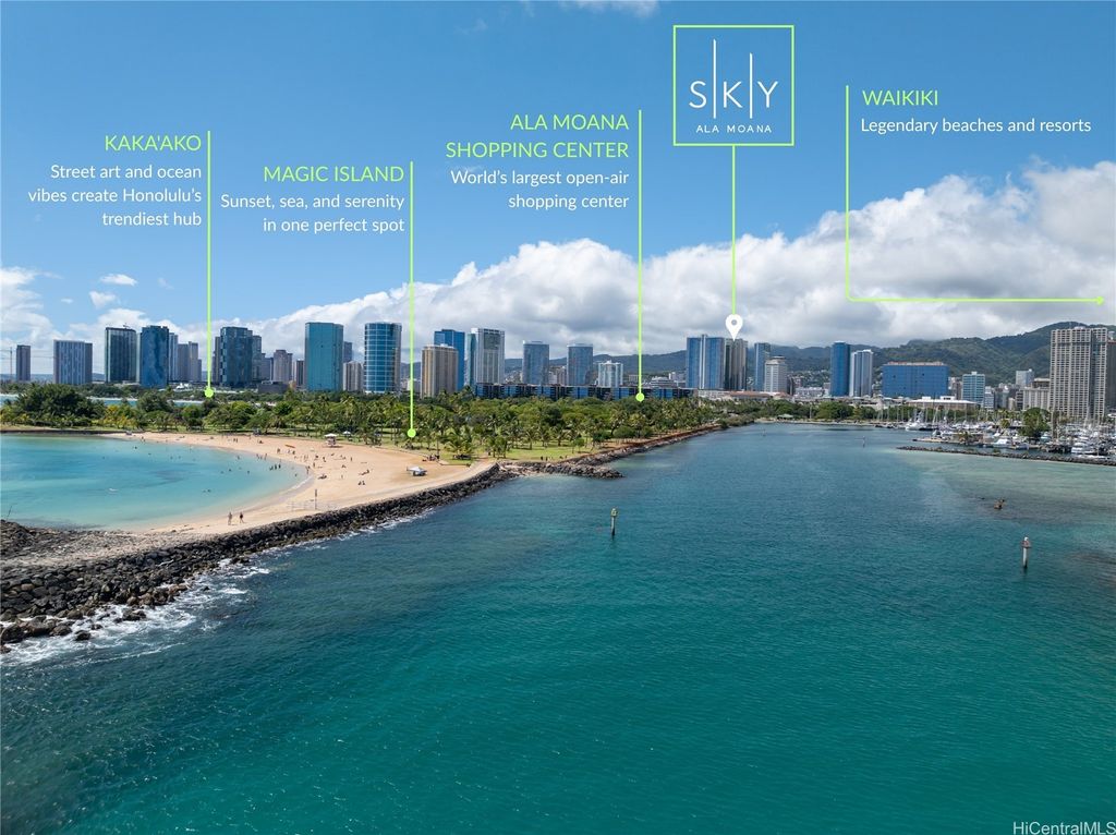 Welcome to luxury living in the heart of Ala Moana. This rarely available 15th floor "05" stack 1-bedroom, 1-bath home offers the Pacific Ocean views and Magic Island from the living room, bedroom, and private covered lanai. Just right across the street from Ala Moana Shopping Center and a short walk to Ala Moana Beach Park, you're perfectly positioned for world-class shopping, dining, and outdoor recreation. Inside, enjoy a contemporary open layout with premium Bosch and Electrolux appliances, a spacious open-concept kitchen with bar seating, and a dual-zone split A/C system. The building boasts resort-style amenities including a pool, whirlpool spa, BBQ cabanas, fitness areas, private dining rooms, and a playground. A covered garage parking stall completes this rare offering. Island living meets modern comfort in one of Honolulu's most desirable neighborhoods. Perfect for investment, 2nd home or enjoy the paradise 24/7/365 yourself