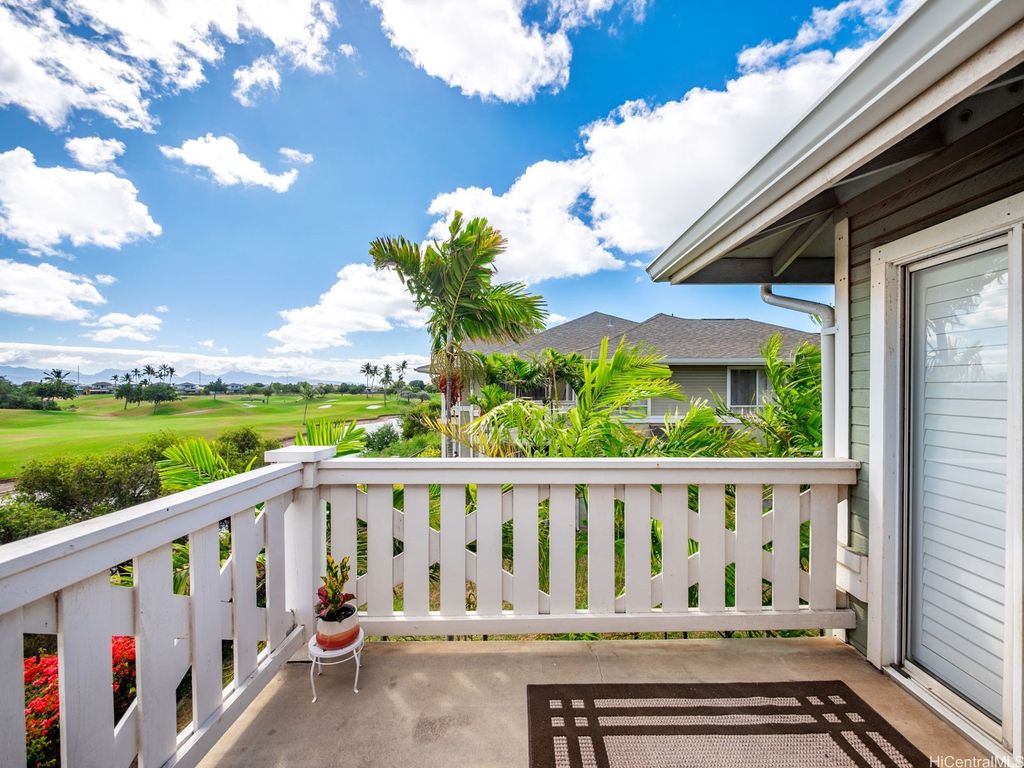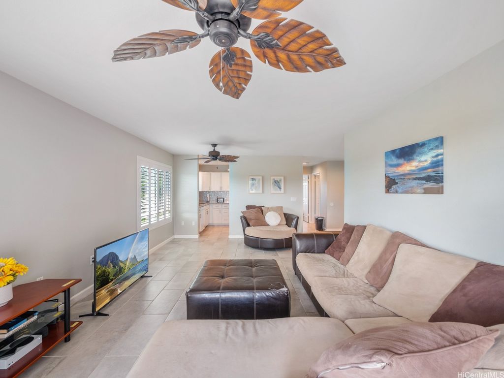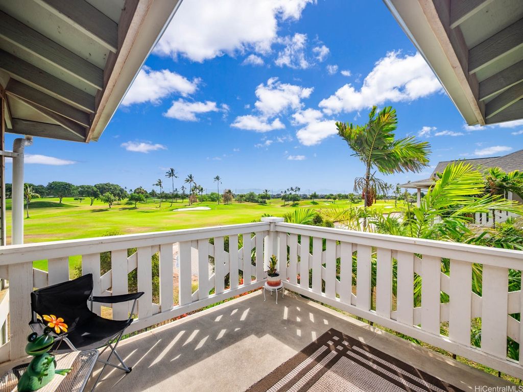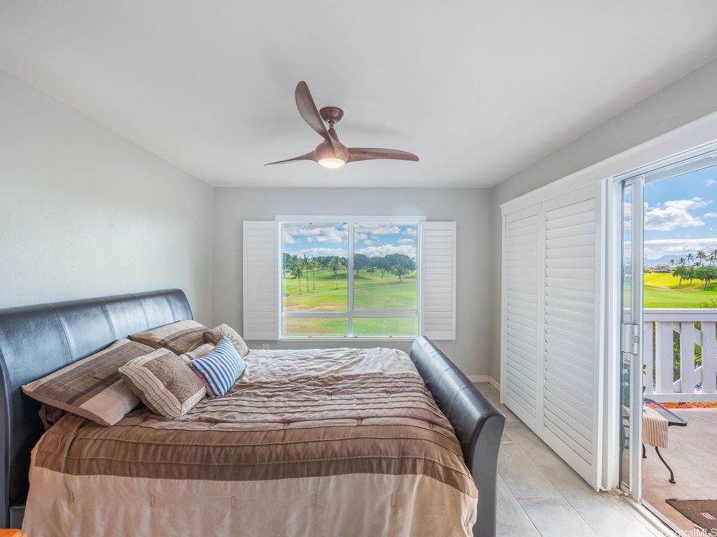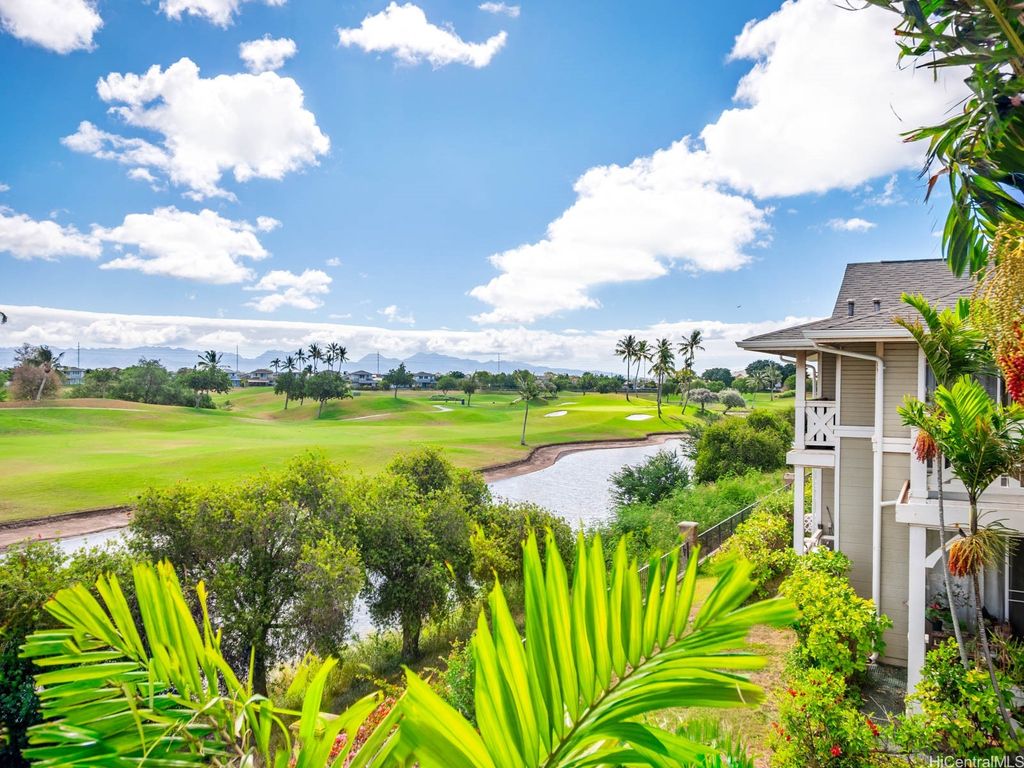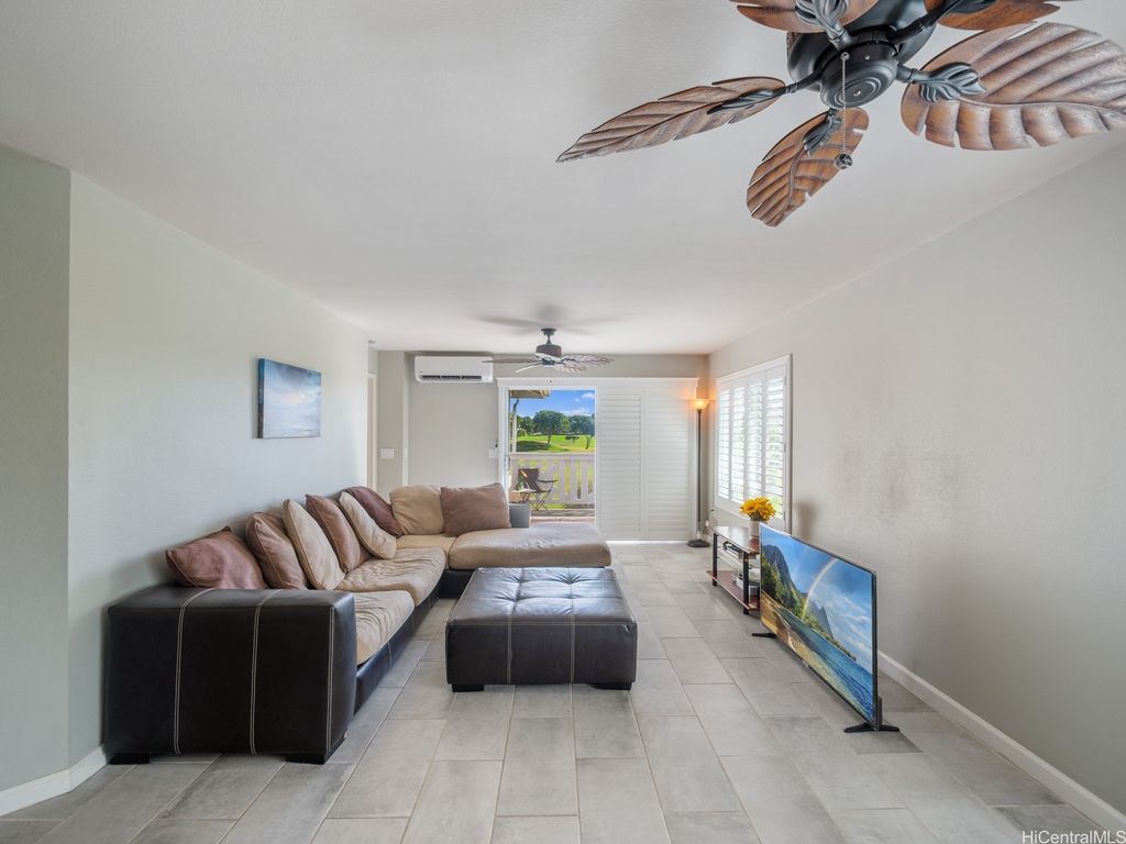 Spacious 2-Bed, 2-Bath Condo with GOLF COURSE VIEWS! Assumable VA loan at 4.99% interest rate and super small gap for qualified VA Buyers. Well-maintained condo featuring an updated kitchen, ceramic tile flooring, and plantation shutters throughout. Split AC units in both bedrooms and the living room provide year-round comfort. Enjoy beautiful golf course views from your lanai and main bedroom. Includes 2 parking stalls. Amenities include a sparkling pool, recreation room, and access to Villages Of Kapolei pool and recreation area. Conveniently located near schools, shopping at Ka Makana Ali'i Mall, dining, and more. A great opportunity in a prime location!