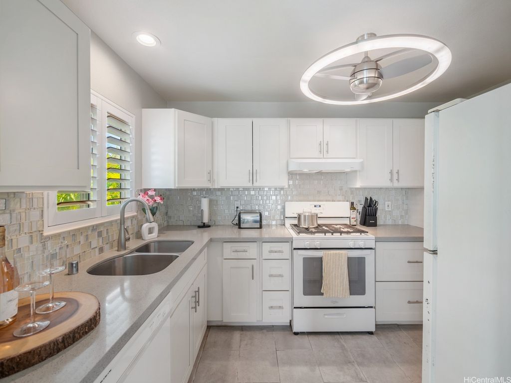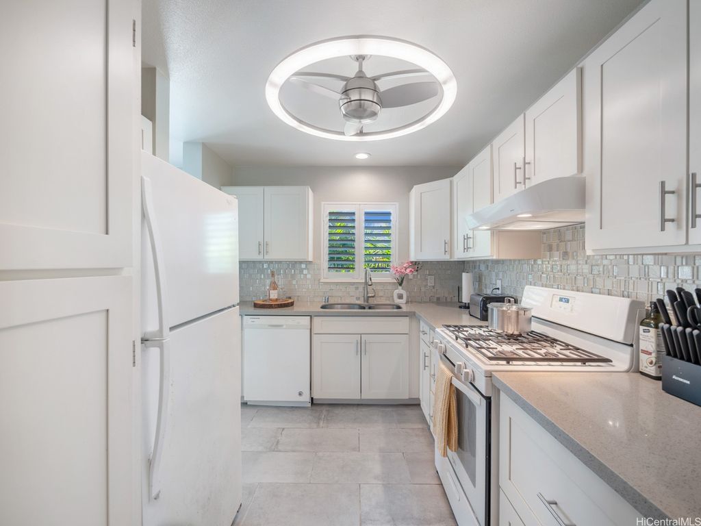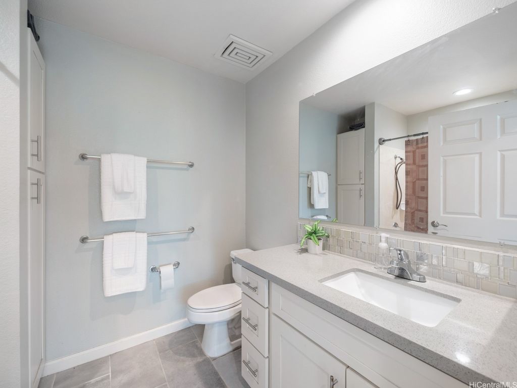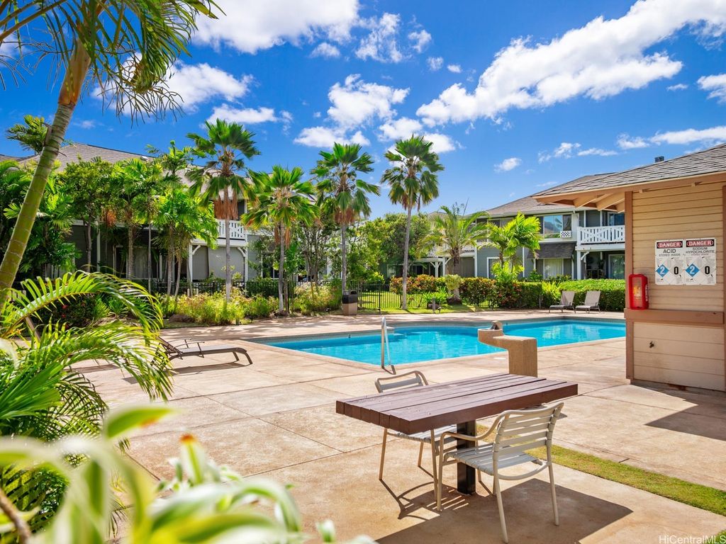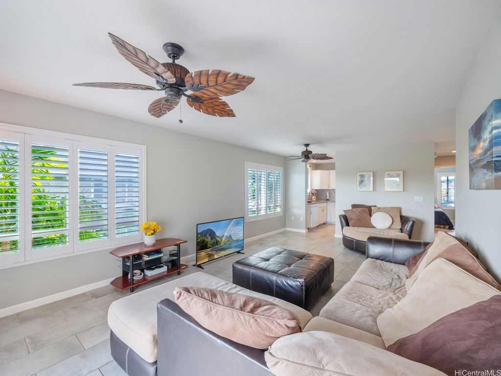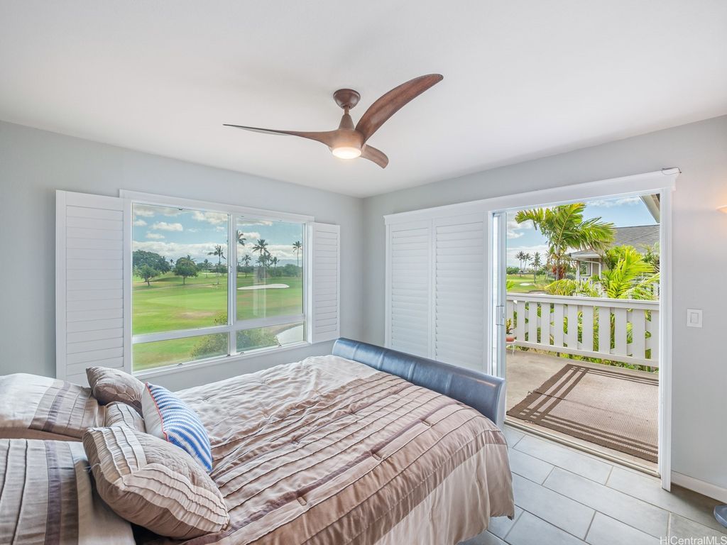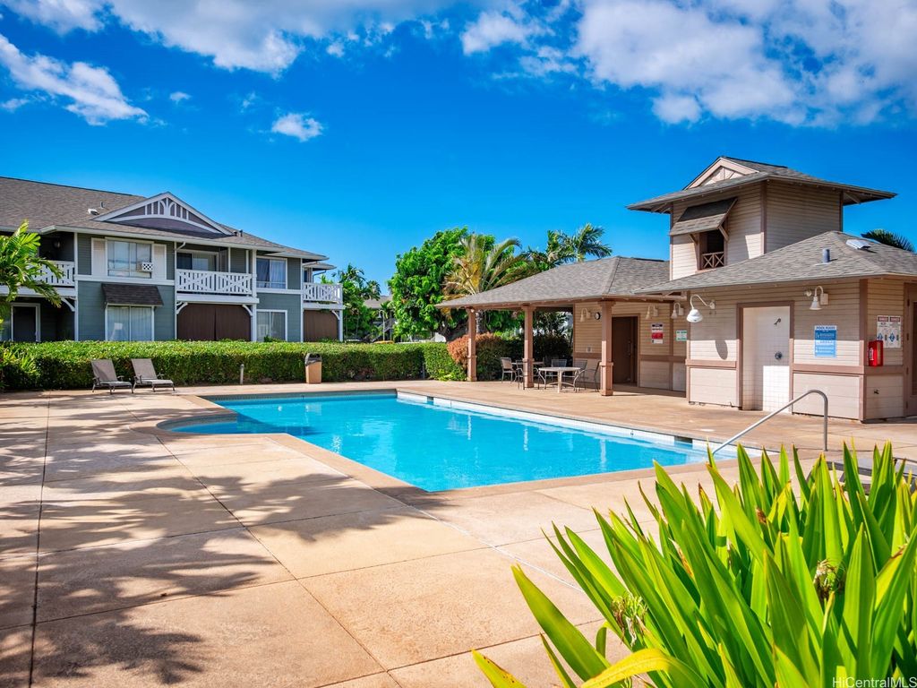 Spacious 2-Bed, 2-Bath Condo with GOLF COURSE VIEWS! Assumable VA loan at 4.99% interest rate and super small gap for qualified VA Buyers. Well-maintained condo featuring an updated kitchen, ceramic tile flooring, and plantation shutters throughout. Split AC units in both bedrooms and the living room provide year-round comfort. Enjoy beautiful golf course views from your lanai and main bedroom. Includes 2 parking stalls. Amenities include a sparkling pool, recreation room, and access to Villages Of Kapolei pool and recreation area. Conveniently located near schools, shopping at Ka Makana Ali'i Mall, dining, and more. A great opportunity in a prime location!