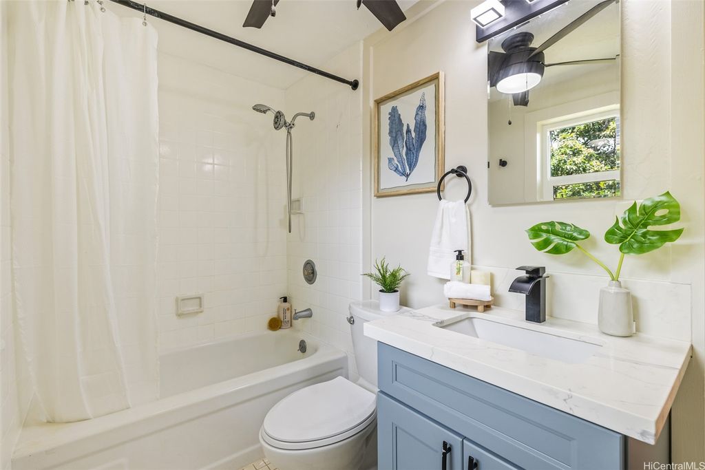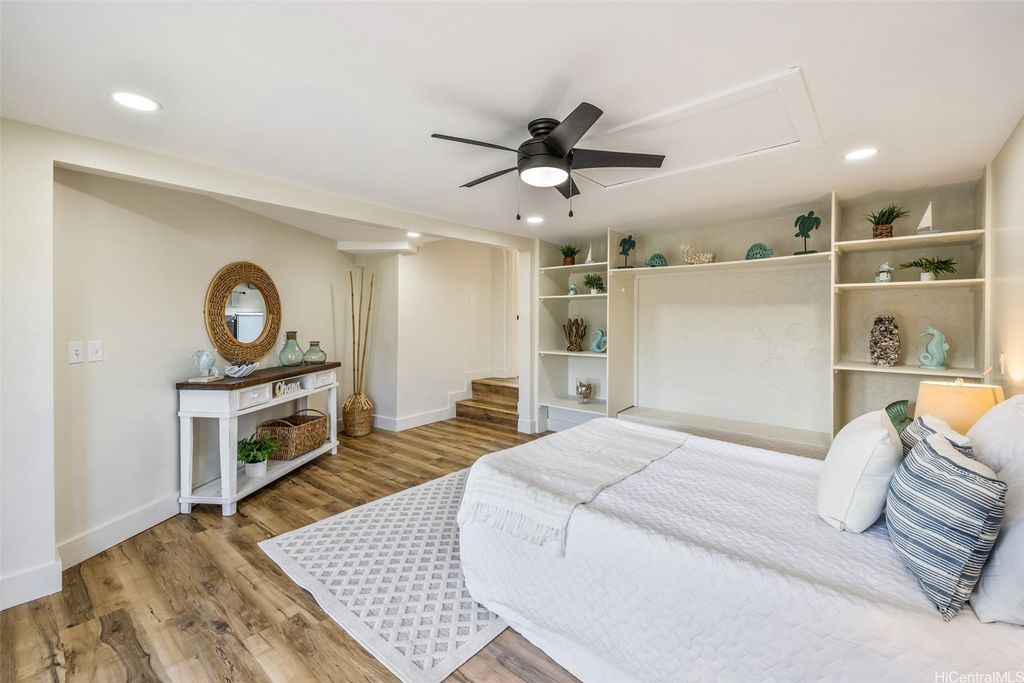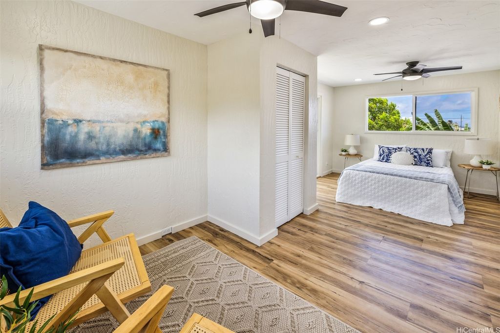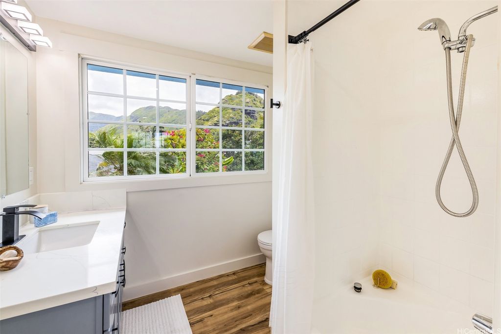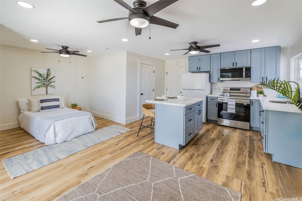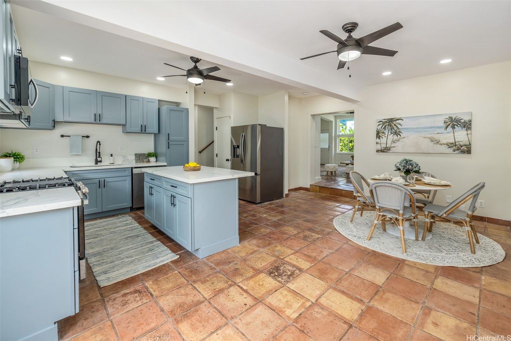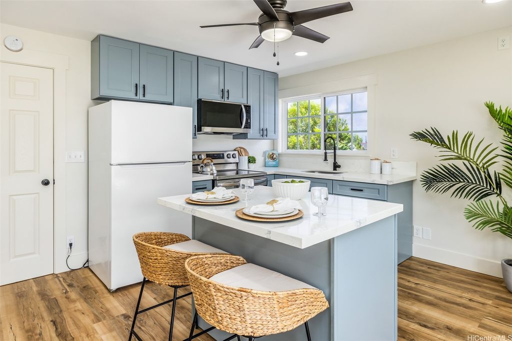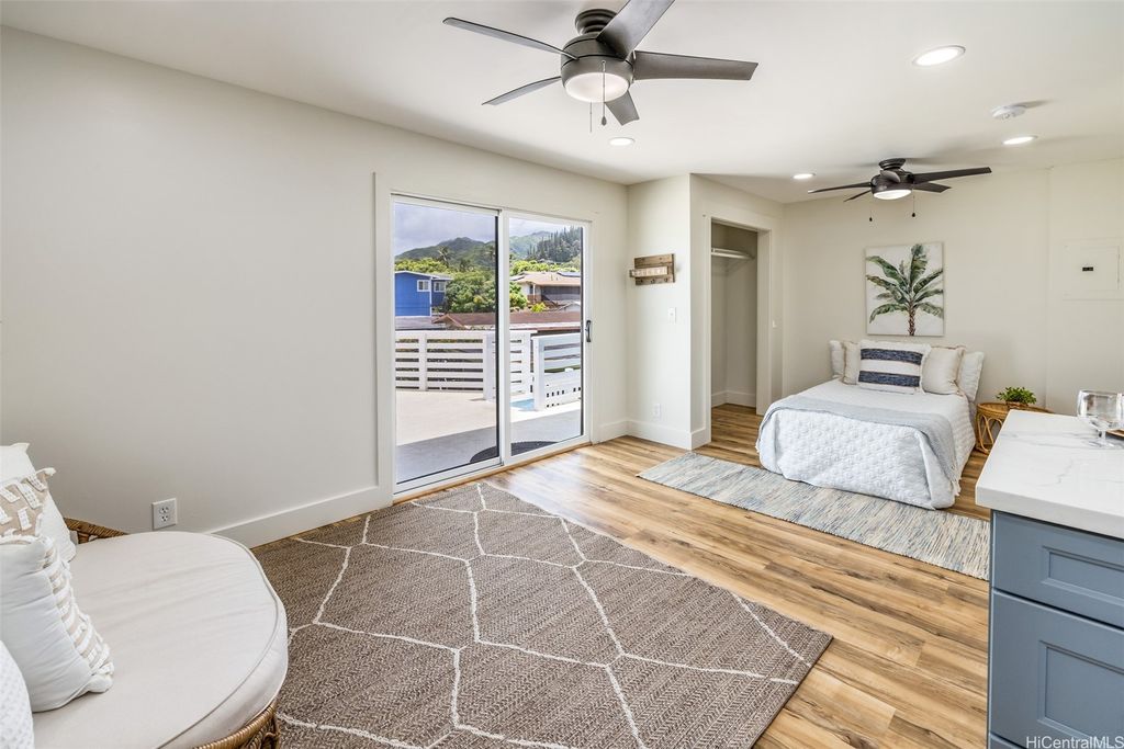 More Space. More Flexibility. More Hawai"˜i Life. Tucked away at the end of a quiet cul-de-sac in Hau'ula, this spacious 2,335 sq ft 2-story home offers a flexible layout ideal for multi-gen living or rental income. With 3 distinct living areas, there's room for 'ohana, guests, or work-from-home needs. Fresh interior paint, updated kitchens and baths, and thoughtfully designed spaces add to the appeal. The main home features 3 bed, 2 baths, and a large bonus room (staged as a 4th bedroom). The kitchen has beautiful blue cabinets, white quartz countertops, new appliances, and flows into the bright living area with tall ceilings and natural light. Downstairs, a mother-in-law suite with wet bar offers privacy or rental potential. Upstairs, a studio apartment includes a full kitchen and an oversized lanai with mountain views and peekaboo ocean views"”perfect for entertaining or unwinding. Two-car enclosed garage with workshop bay. Just 0.6 miles to Hau'ula Beach Park and close to Pounders Beach, Hau'ula Loop Trail, and everyday essentials. A short drive brings you to BYU-Hawai"˜i, the Polynesian Cultural Center, Turtle Bay Resort, and the North Shore's world-famous beaches.