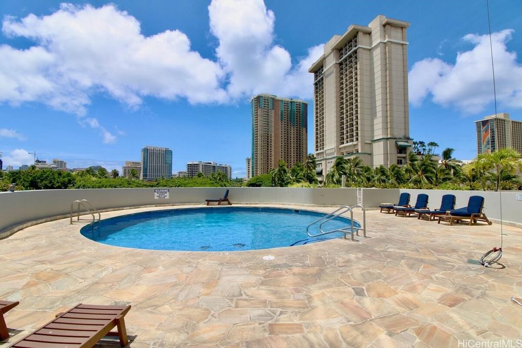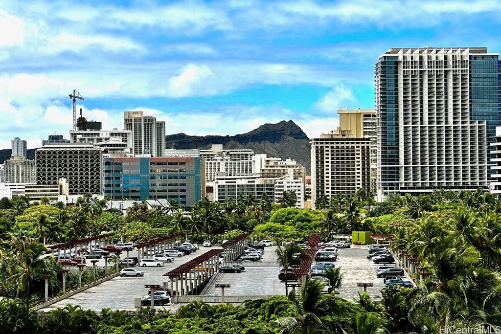 Situated in a prime location just in the heart of Waikiki is a rarely available CORNER-END UNIT in Wailana! The spacious condo offers 1180 square feet living area with 2 bedrooms, 2 full baths, 1 covered parking space and 124 sq ft balcony. Fully furnished and move-in ready! Includes Central AC and a stack washer dryer in unit. Enjoy morning coffee or sunset cocktails overlooking amazing views of Diamond head, multiple lush parks and jogging paths. There are (2) storage units included and located very close to the front door. Pet friendly (please verify) and amenities include BBQ with a lounge area, heated pool, Patio/deck, Security guard & on-site cameras. Convenience store and multiple shops on the 1st floor of the building along with additional public parking space which is available for a fee. Close proximity to the beach, bus lines, Waikiki Hotels and nightlife, shops and restaurants. This is a LEASEHOLD property ($740 monthly LH fee).