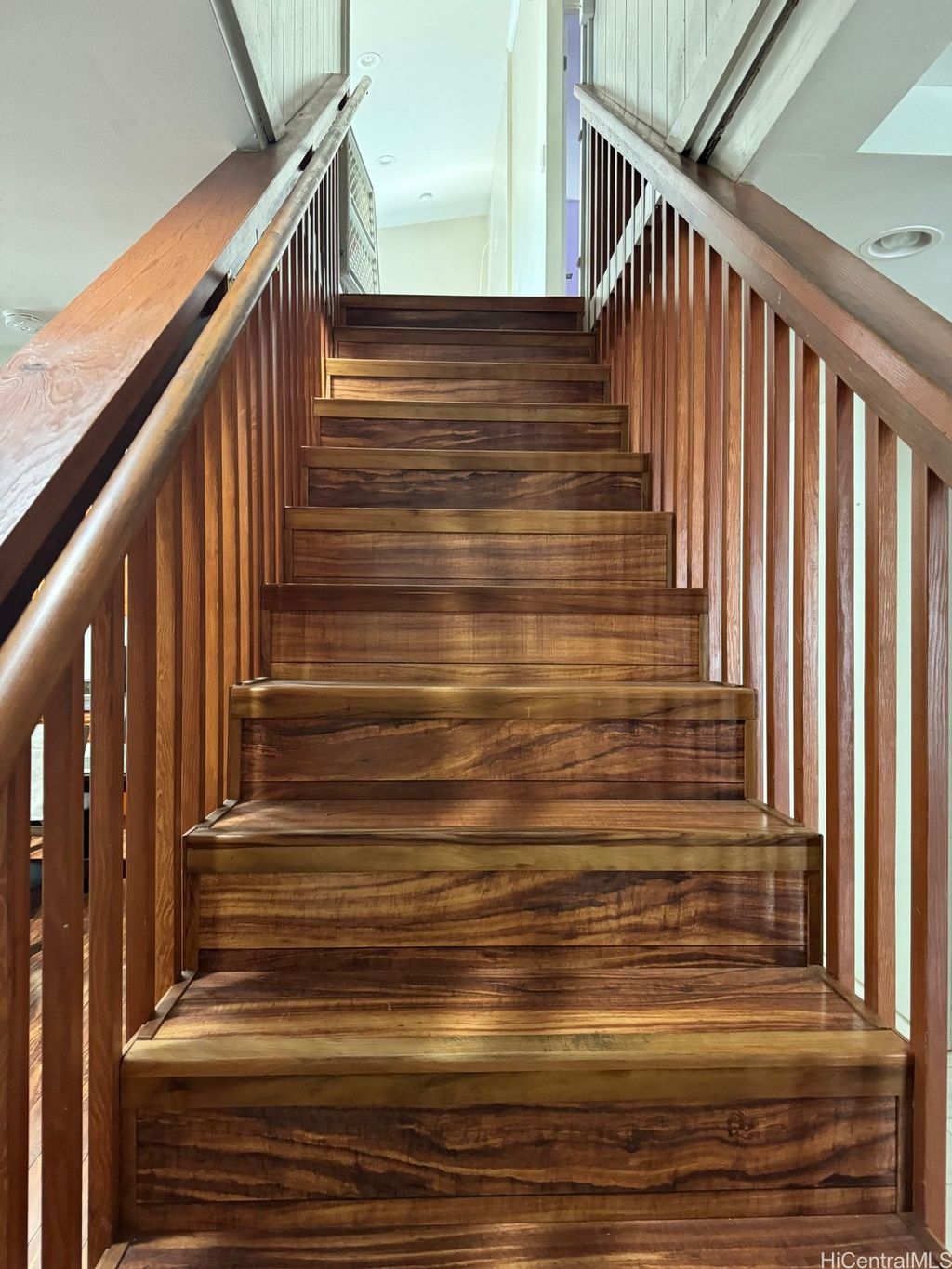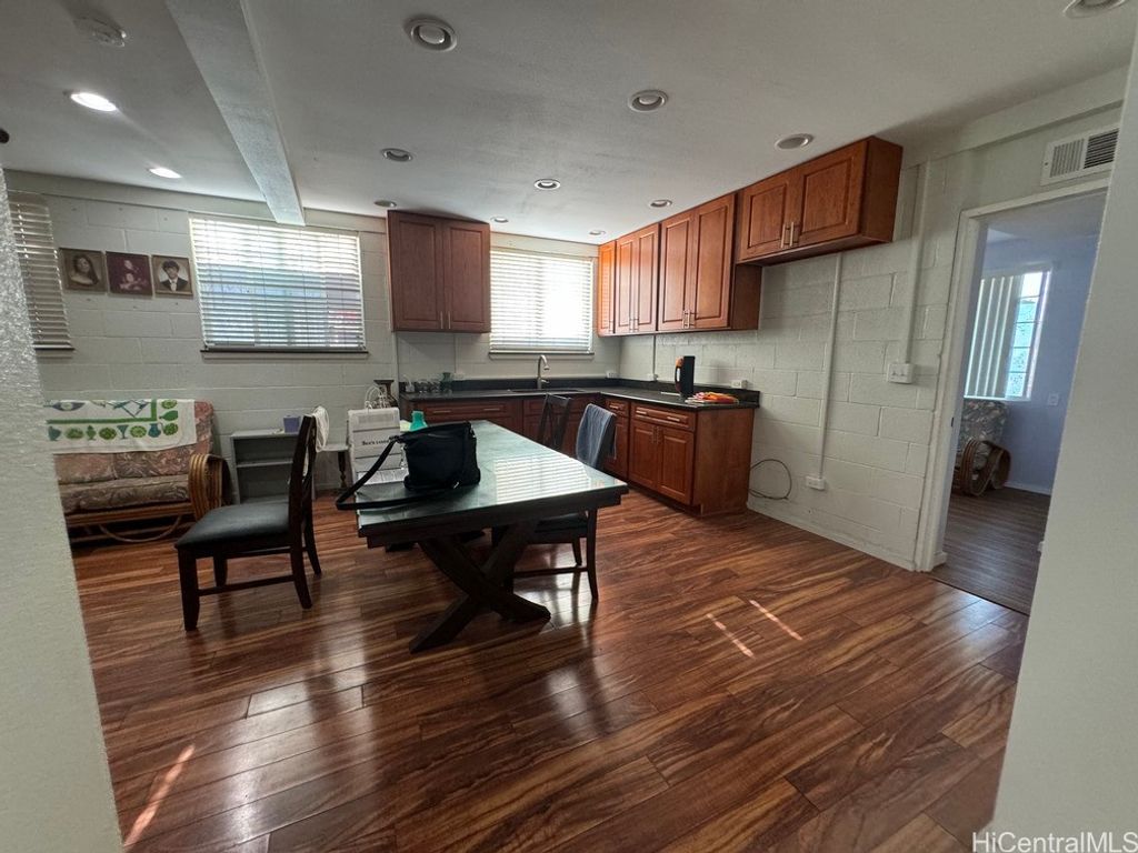 Spacious and conveniently located home near Pearl Ridge shopping Center with easy access to the freeway on-ramp. This property features separate entrances for privacy and flexibility. The downstairs unit offer a one bedroom, one bath layout with modern kitchen and flooring. Upstairs, you will find two bedroom, one bath unit with a wet bar and lanai for relaxing or entertaining. With parking for 5+ cars, this home is perfect for multi-generational living or rental income potential. Vacant and easy to see.