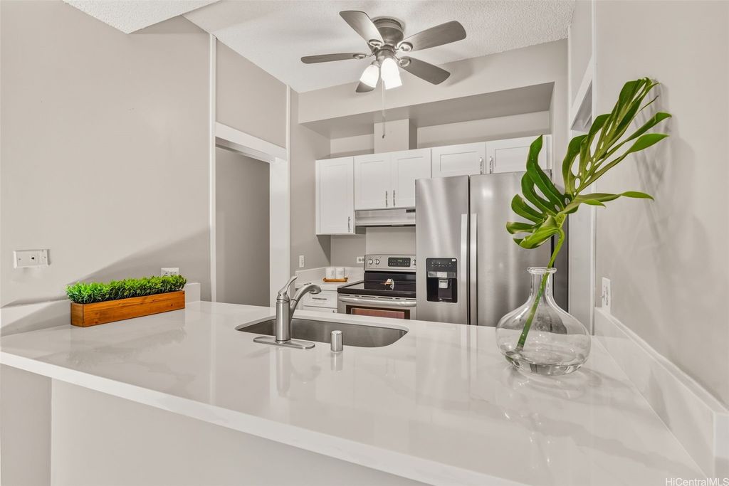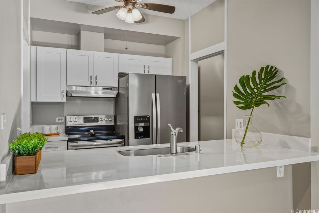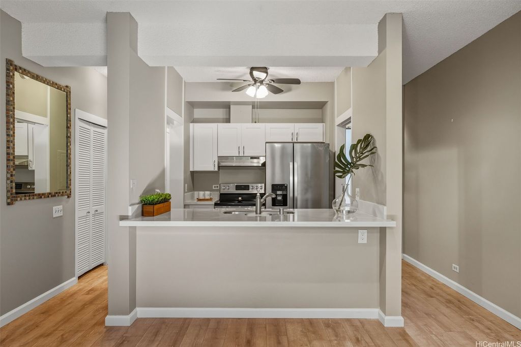 Welcome to Windward Cove"”a gated community in the heart of Kailua, surrounded by 3 acres of lush tropical landscaping, koi ponds, and peaceful water features. This private 3-bedroom, 2-bath corner unit offers an open-concept layout with floor-to-ceiling windows that fill the space with natural light. Recent updates include new kitchen cabinets, quartz countertops, refrigerator, dishwasher, vinyl flooring and fresh paint throughout. Enjoy indoor-outdoor living with a spacious 395 sq. ft. rooftop deck"”perfect for BBQs and entertaining. Located just 1.1 miles from Kailua Beach and close to shopping, dining, and the weekly Farmers Market. Community amenities include a pool, sauna, tennis court, on-site security, resident manager, and pet-friendly policies. Don't miss this rare opportunity to own a peaceful retreat in one of Oahu's most desirable neighborhoods! Assumable VA mortgage at 2.25%interest rate/ monthly payment $2100/ balance is approx $455,000. ** Seller will credit $10,000 towards closing costs or rate buydown!!!**