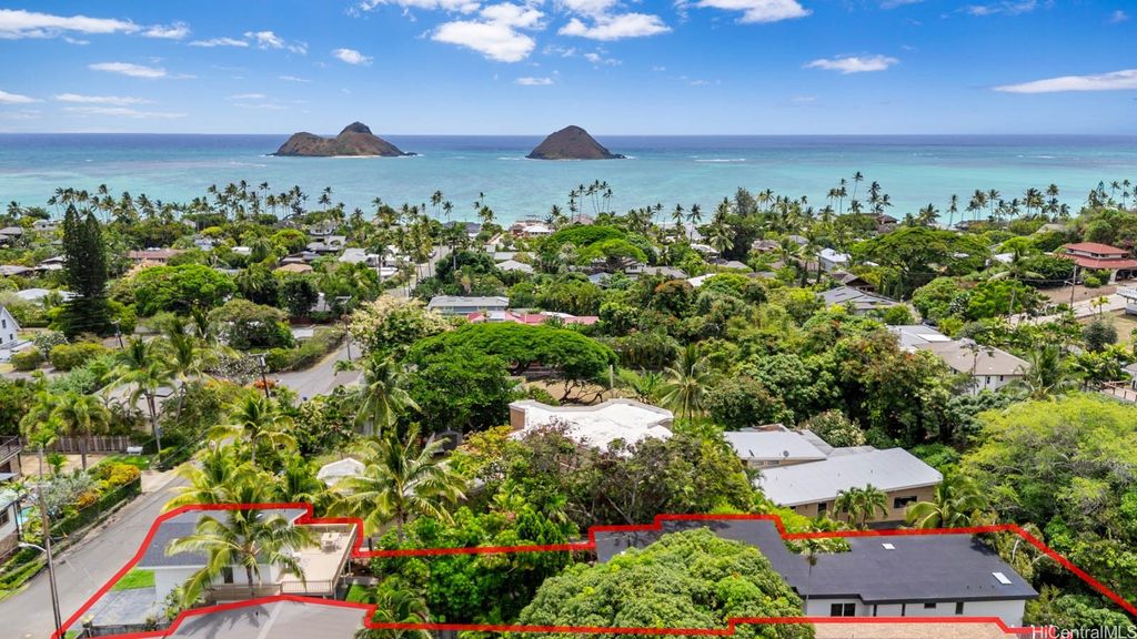 Experience elevated island living at 223 Lanipo Drive, a newly renovated Lanikai retreat where luxury, privacy, and nature converge. Just two blocks to a white sand beach and a short paddle to the Mokulua Islands, this thoughtfully designed property is nestled in one of Kailua's most coveted neighborhoods. Enter through a serene, landscaped courtyard to your private sanctuary. The reimagined 3-bed, 3-bath main residence offers two primary suites and three lanai spaces for seamless indoor-outdoor living. Soaring ceilings and oversized sliding doors invite the lush surroundings in, while curated design elements"”large-format tile, hardwood floors, custom cabinetry, Thermador appliances, a soaking tub, and upscale finishes"”add warmth and refinement. The kitchen features a spacious island, sunlit breakfast nook, architectural features and premium fixtures. Above the 2-car garage is a 1-bed, 1-bath open-concept suite with wet bar, second laundry and spacious lanai"”ideal for guests, work, or rental income. This one of a kind property offers the tranquility of a secluded oasis just moments from world-class beaches, hiking trails, restaurants & more. Don't miss this truly special home.