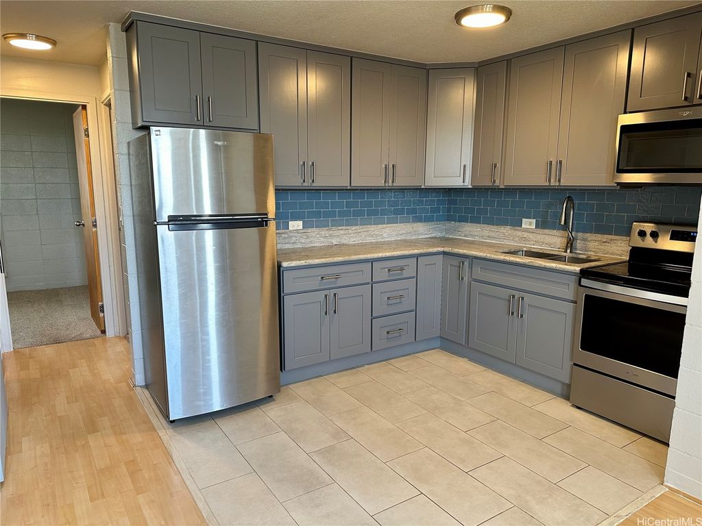 Excellent & Move-in ready 2/1/1 unit in Leolua Regent! Fantastic & completely remodeled 3rd floor unit features wood cabinetry and stone countertops in kitchen & bathroom and thoughtful upgrades like a bathroom barn door, stainless steel appliances and modern fixtures throughout. Conveniently located next to the post office, minutes to Seafood City, Waipahu Shopping Center, and many other amenities. Easy public transportation (bus, rail!) and freeway access around the corner. This unit and location has so much to offer. High owner-occupancy reflects owner satisfaction. Great starter home or reliable investment property.