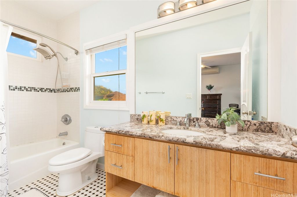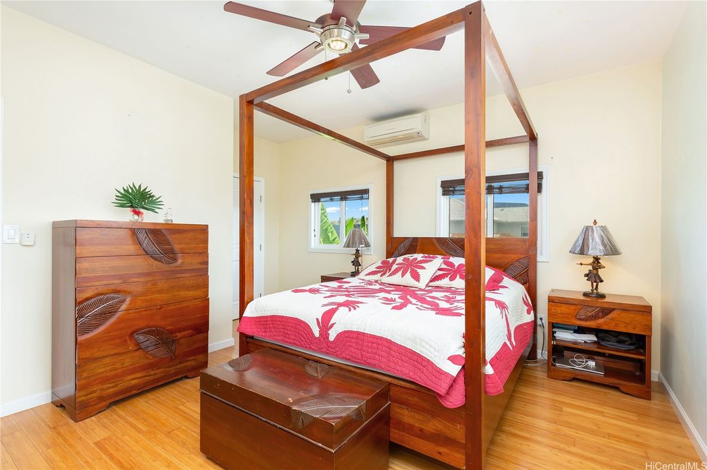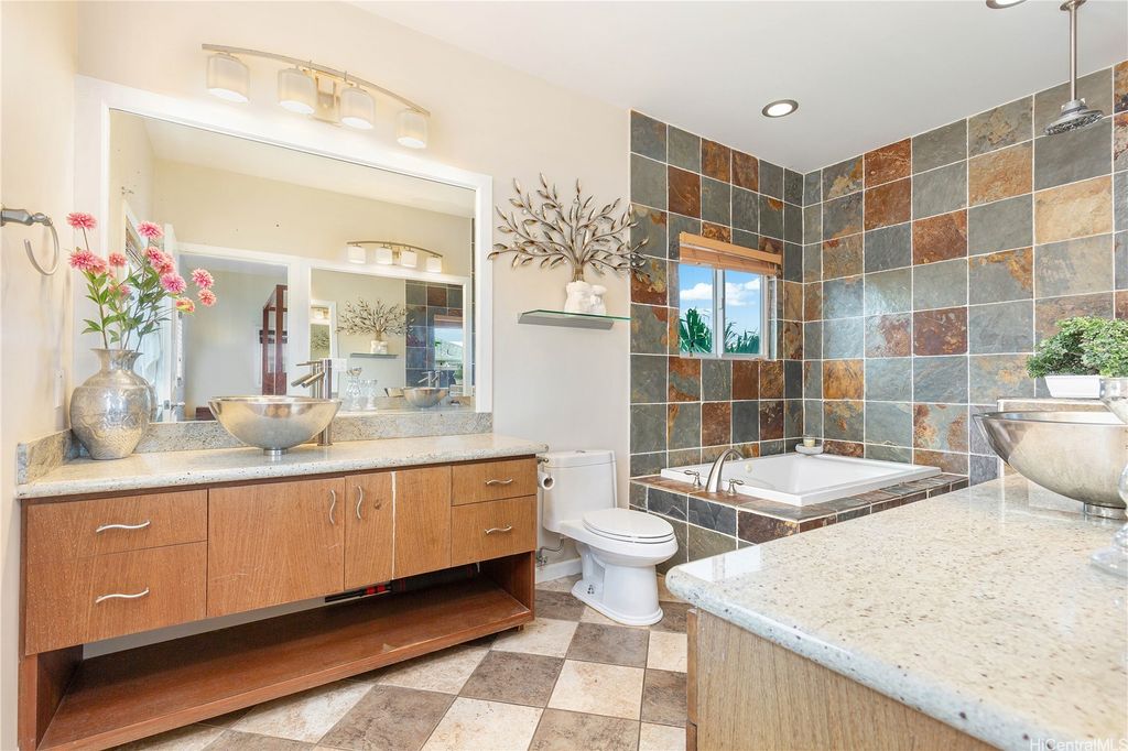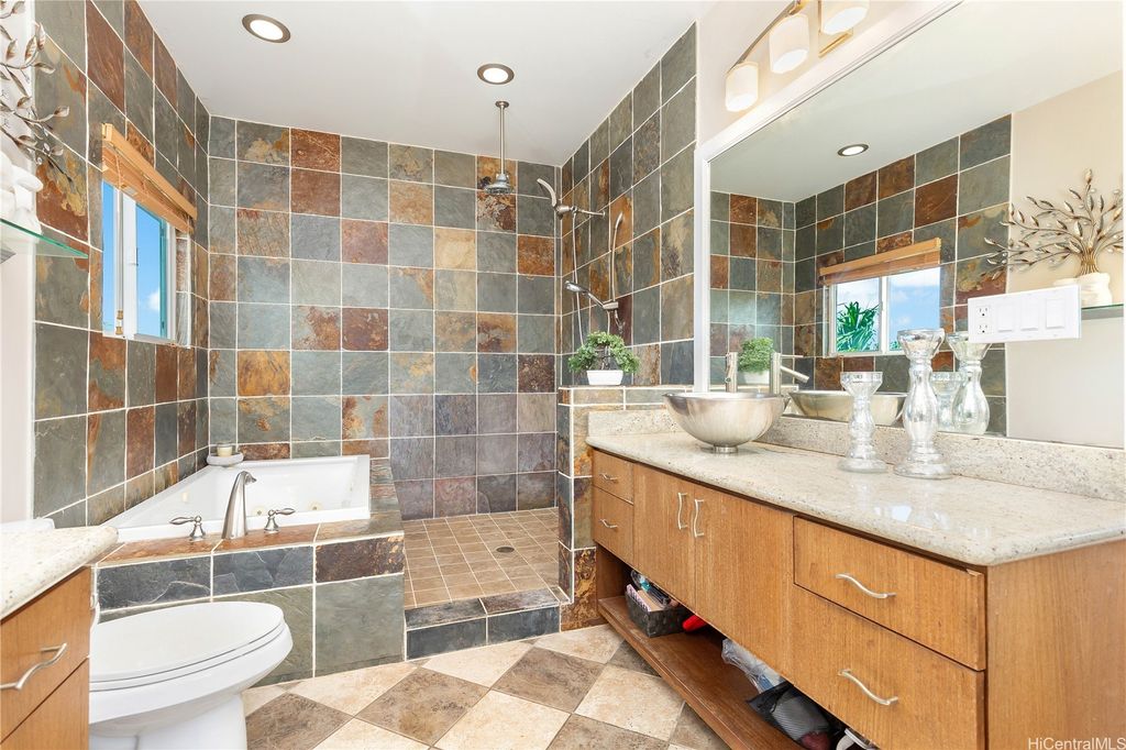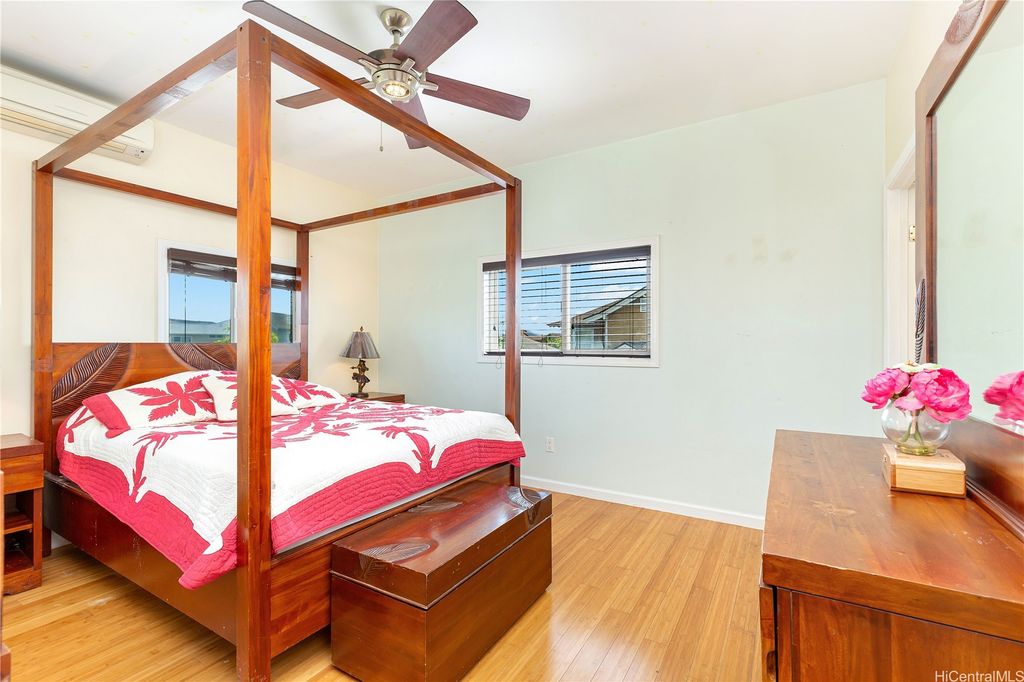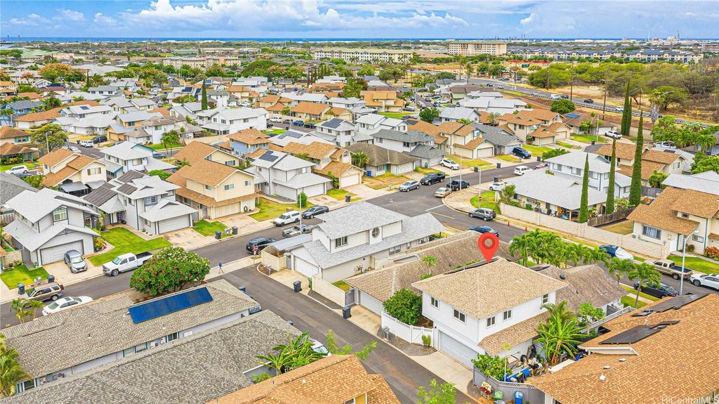 Experience elevated island living in this thoughtfully designed 4-bed, 4-bath Kapolei retreat, where every bedroom features an en suite bath. Soaring vaulted ceilings and tasteful upgrades set the tone, with granite countertops, split AC, and beautifully improved baths throughout. Two main-level suites provide comfort and effortless accessibility. The primary suite is a true escape with dual vanities, a walk-in shower, and a jet soaking tub. Enjoy sustainable luxury with 15 owned PV panels, a Tesla battery, and a whole-home water filtration system with reverse osmosis. A low-maintenance yard and close proximity to Ka Makana Ali"˜i, shopping, dining, and freeway access complete this exceptional offering. Could this be your house match? Ask us the details on the VA Assumable mortgage at 2.25% for eligible Buyers only.
