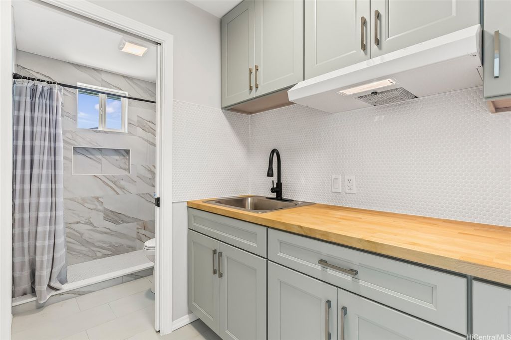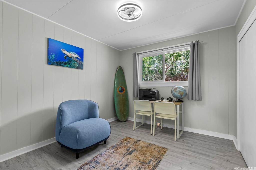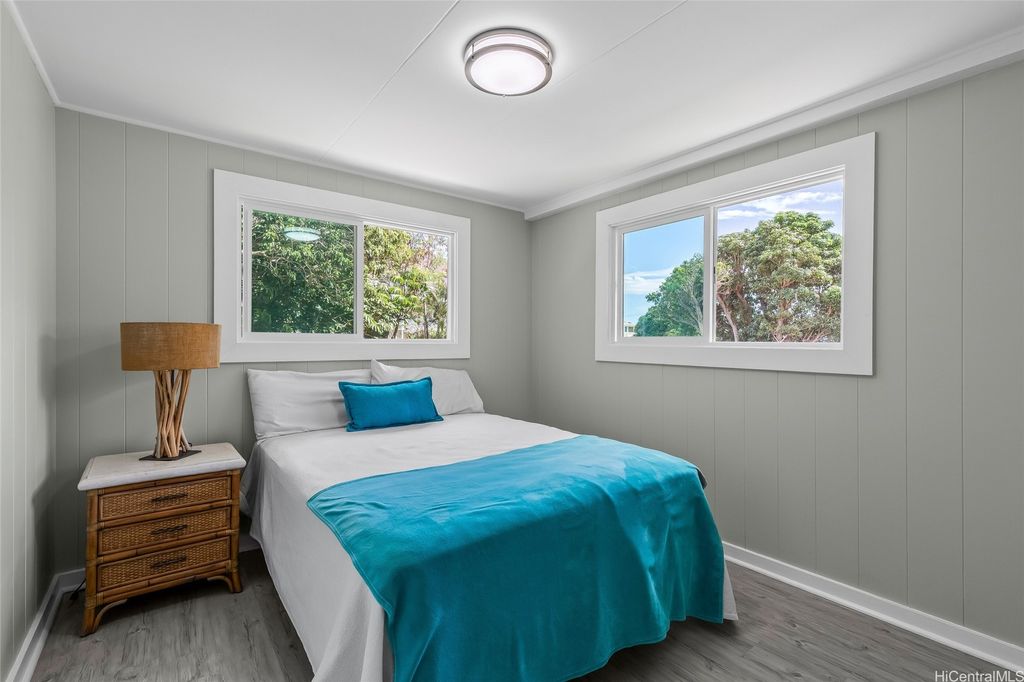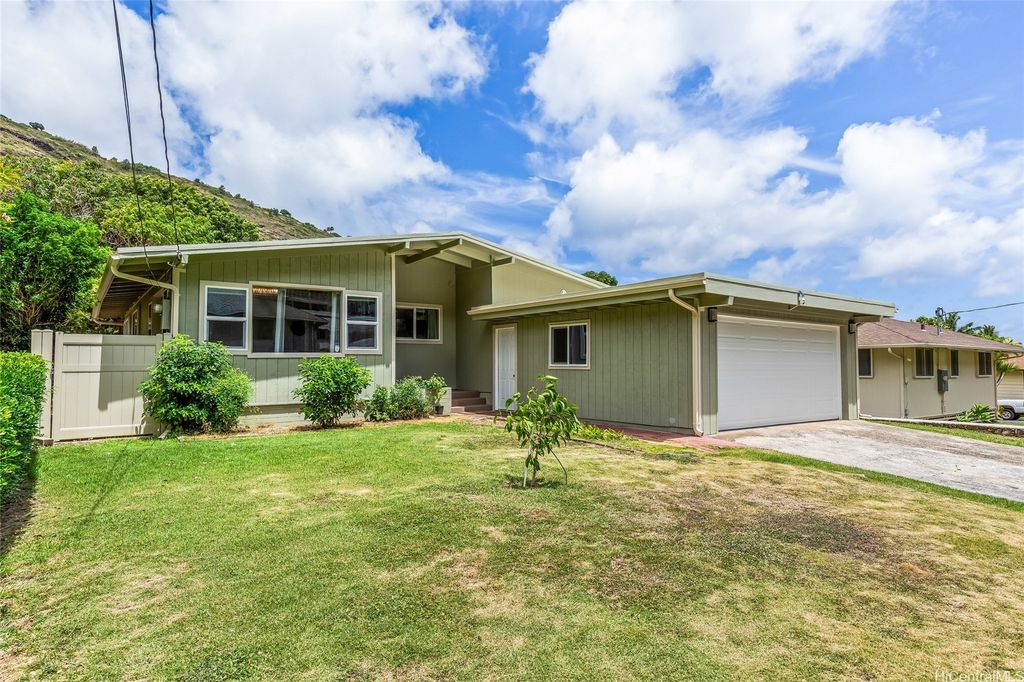 One level house on a 8,446 Sq. Ft level lot. No stairs to climb. $250k in upgrades and Move-in ready! Located in the highly sought-after Aina Haina, this beautifully renovated home offers the perfect blend of island living and everyday convenience. Fresh new paint on the interior redwood walls. New fence on the property, new luxury vinyl floors, new kitchen, new bathrooms with quartz countertops, new cabinetry and a lovely backsplash. The 1st bath has a modern flare including tile flooring, dual vanities, stylish light fixtures, and a tiled shower with glass sliding doors. The studio just off the kitchen and dining area is perfect for entertaining guests or creating your own home office. It comes with its own wet bar, brand new bathroom, and has a separate entrance. House isn't in a flood zone. Flood insurance is not required. A front yard and a huge backyard oasis that has an avocado & Lychee tree. Perfect for those who love to garden. The backyard has also been encased by beautiful vinyl fencing and a gated entrance on each side of the home. Spacious 2-car garage with new washer & dryer. Do not miss this opportunity to call Aina Haina your new neighborhood!