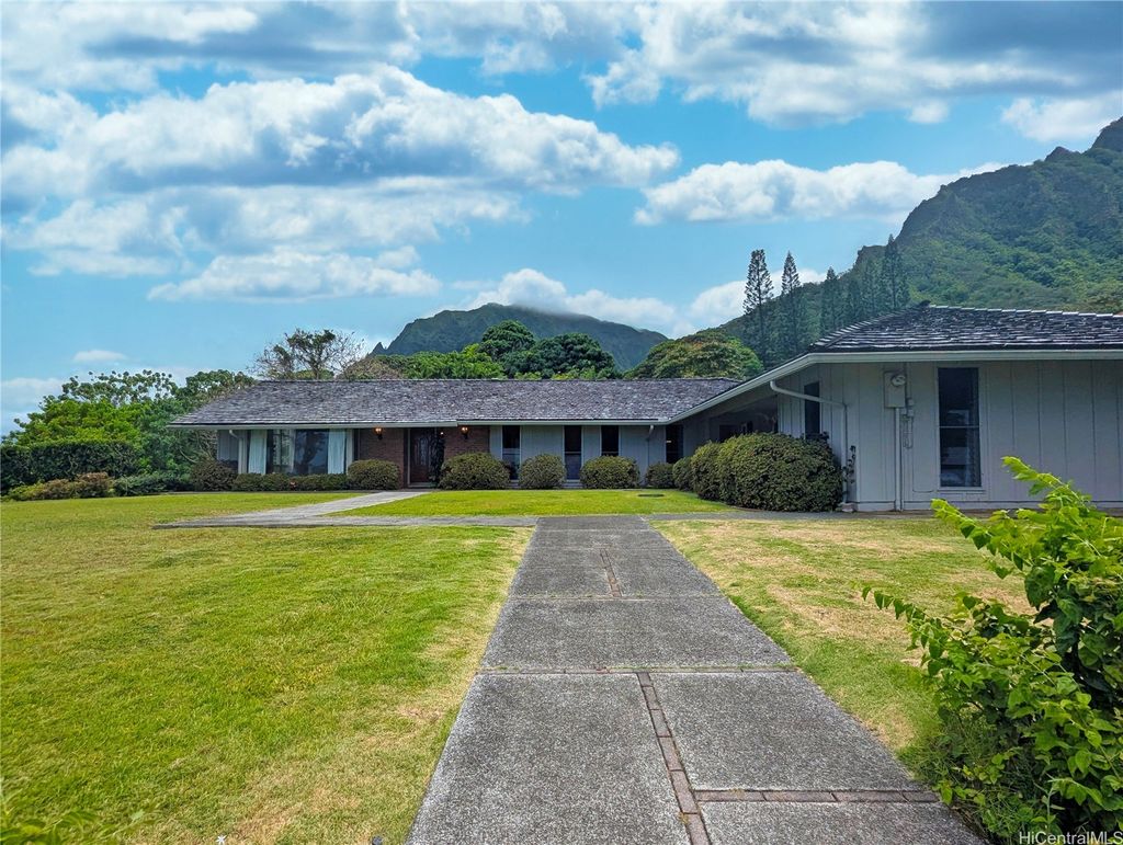 Located on Oahu's Windward side within the PRESTEGIOUS gated community of HAIKU PLANTATION, this 47,871 sf ESTATE offers a blend of ISLAND TRANQUILITY framed by the MAJESTIC Koolau Mountains and PICTURESQUE Kaneohe Bay. This SINGLE-LEVEL family home features four bedrooms, two and a half bathrooms, and an additional versatile room with a separate entrance ideal for an office, study area, yoga studio, or creative space! With a large open floorplan, cathedral ceilings, expansive windows, and sliding lanai doors, enjoy INDOOR-OUTDOOR LIVING amongst the BEAUTIFUL surroundings of Meyer lemon trees, avocado trees, and lush TROPICAL flora. Just a FABULOUS home and a RARE opportunity! COME HOME to this tropical GEM and TRULY LIVE!