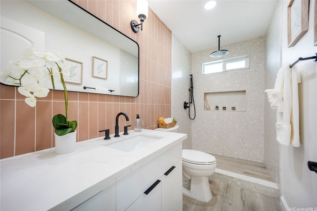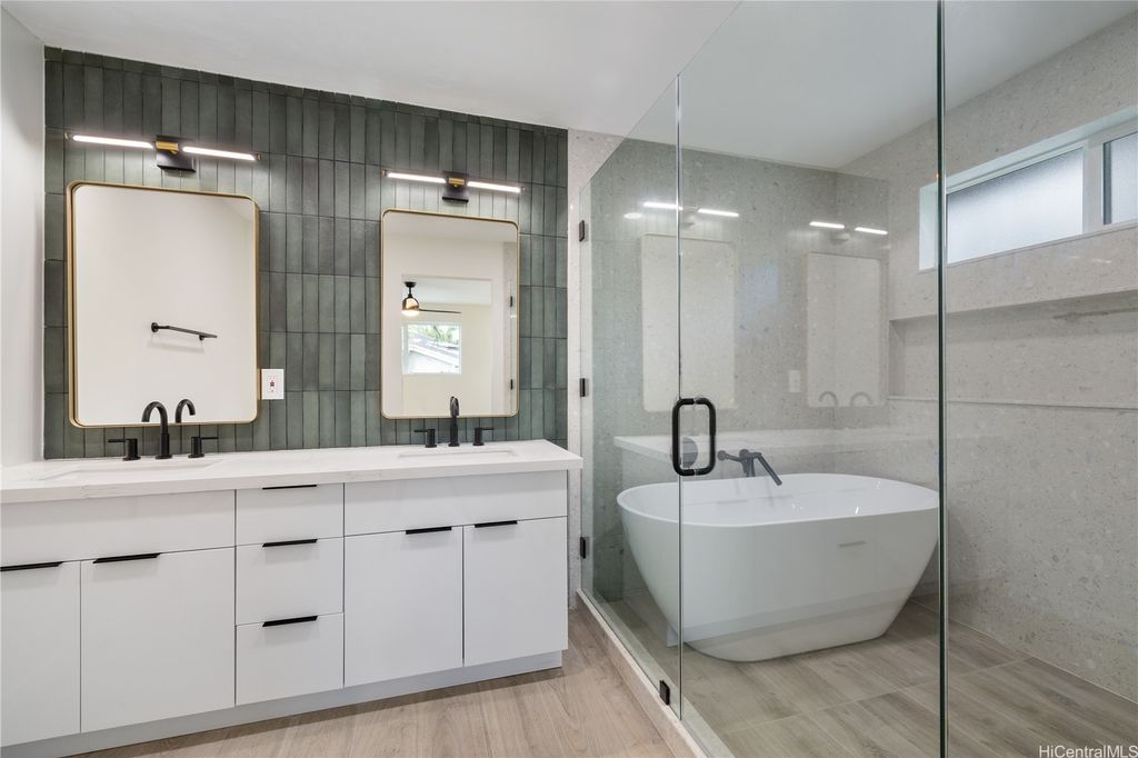 Picture-perfect and move-in ready! This rare single-level 4BD/2BA Diamond Head view home in Manoa is a true gem. Completely renovated inside out with quality, style, and comfort in mind. Easy breezy Island living's never better with sleek quartz countertops, custom cabinetry, brand-new appliances, double wall ovens, split A/Cs, and energy-efficient windows throughout. Dreams come true with the expansive primary suite with his-and-her closets, a spa-like bathroom with a double vanity sink, a freestanding soaking tub, walk-in rain shower, and premium finishes throughout. A spacious two-car garage and additional multi-vehicle parking on property offer convenience. Landscaped backyard with Diamond Head and city views for entertaining friends & family. Prime location in one of Oahu's top school districts, steps from UH, walking distance to Punahou and Mid-Pacific, with easy H-1 access, minutes to Ala Moana (8 min), Downtown (9 min), Waikiki (9 min), bus lines, shops, restaurants, and parks. Welcome home to cool Manoa breezes. Your best Hawai"˜i life starts right here.