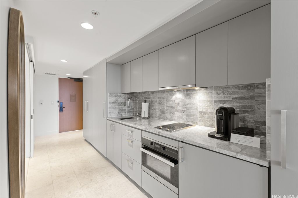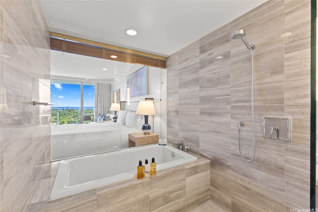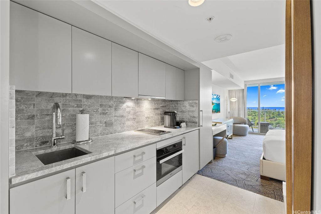 Recently upgraded and feels brand new! This beautiful studio in Tower 1 at The Ritz-Carlton Waikiki features 447 sq ft of interior space plus an 84 sq ft ocean-view lanai. It offers stunning views of the ocean and city. Enjoy modern finishes, a well-equipped kitchenette, a full bathroom with premium fixtures, and an in-unit washer/dryer. Turnkey luxury in the heart of Waikiki!