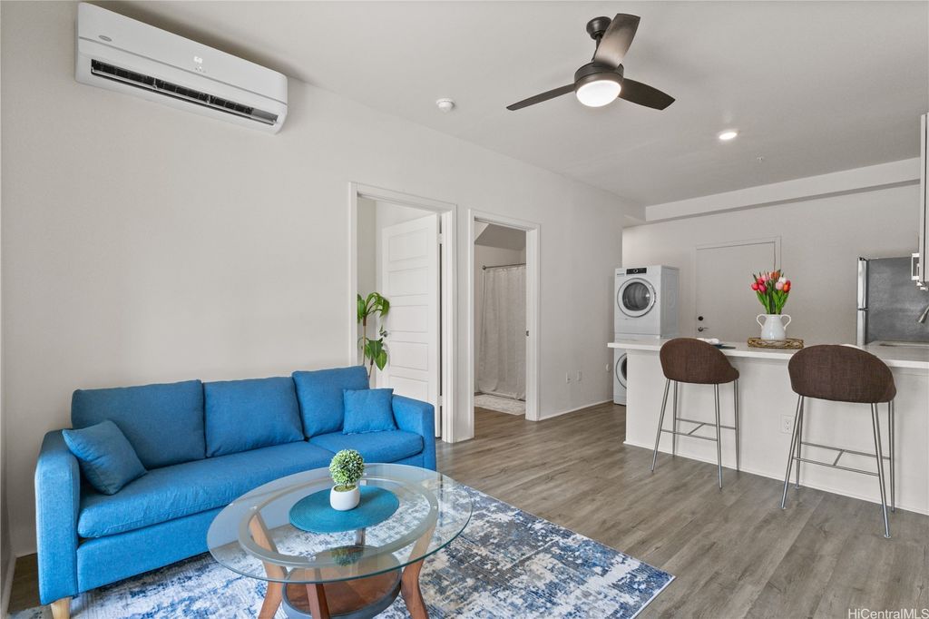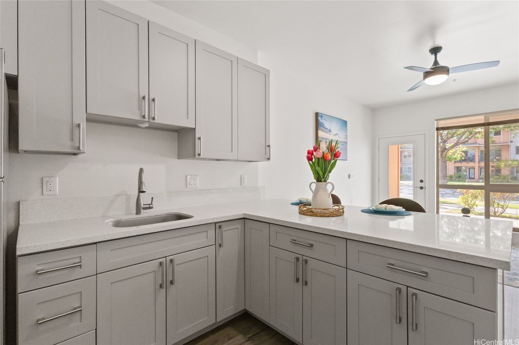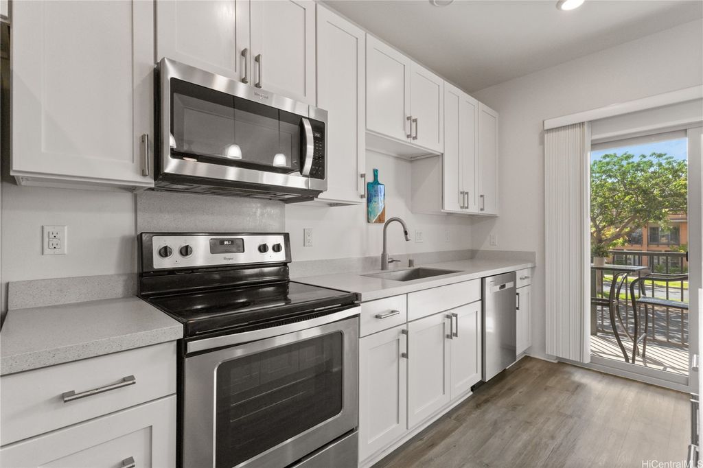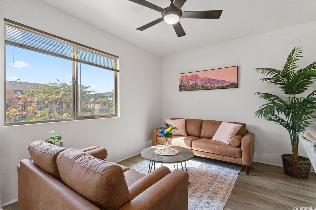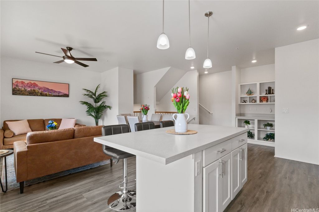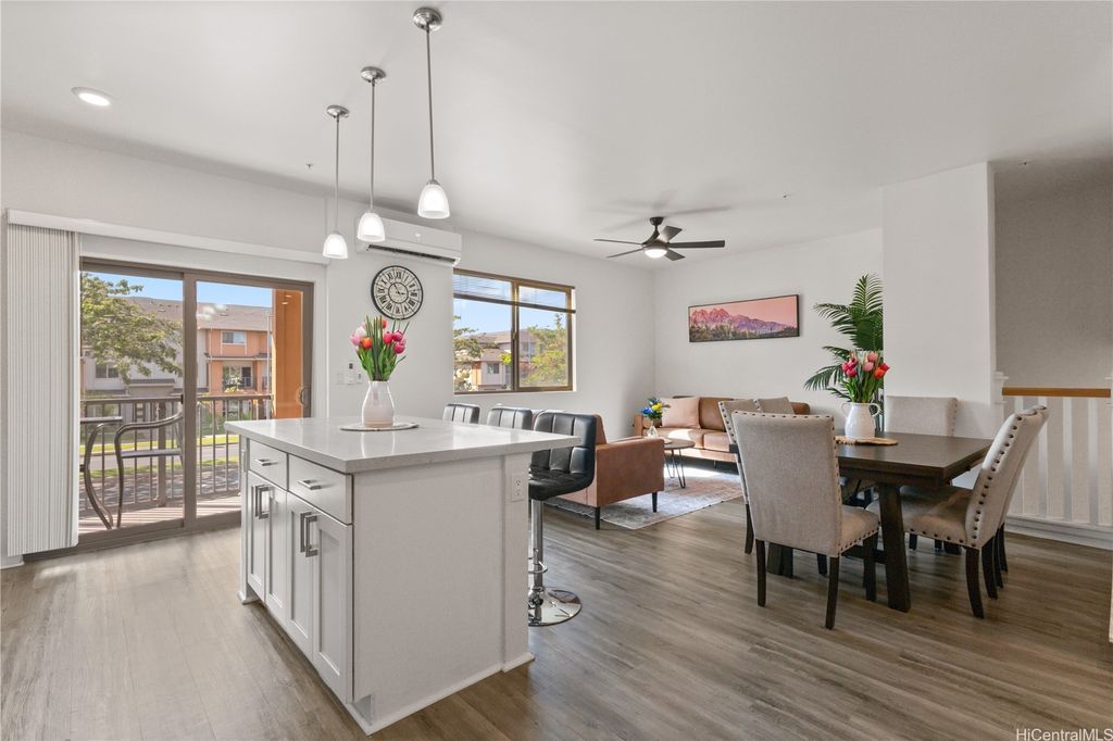 Appraisal Included! VA Assumable 2.25% interest rate! Do not lose the opportunity to own this unique FLEX Unit with a seller-installed kitchenette. Great location in Ho'opili, offering exceptional versatility, this unique home features a ground-level FLEX space with a seller-installed kitchenette and a separate entrance "” perfect for accommodating extended family or guests. Parking is a breeze with a one-car garage, tandem parking behind the garage, and two additional assigned stalls. Conveniently located just behind the festival street, you'll have easy access to year-round community events. Only two blocks from the dog park and kids park, and minutes from the H1 freeway, rail station, and Ka Makana Ali'i Mall with endless shopping, dining, and entertainment options. Ho'opili residents also enjoy resort-style amenities, including a beautiful pool, BBQ areas, and recreational spaces. An incredible bonus "” sellers are offering a VA loan assumption at an unbeatable 2.25% interest rate (subject to VA eligibility and lender approval). Experience the best of island living in one of Oahu's most sought-after communities!