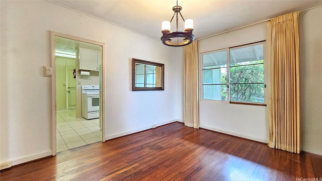 NEW PRICE - Manoa - Charming single-level 3-bedroom, 1 1/2 -bath home built in 1949 and tucked away at the end of a perpetual right-of-way easement. Entrance is from Awapuhi Street. This residence offers approximately 1,983 sq. ft. of living space on a generous 10,713 sq. ft. down sloped, terraced lot, capturing sweeping views of Diamond Head and Manoa Valley. The home features wood and tile flooring throughout, a laundry area, cozy fireplace, and copper gutters. Enjoy outdoor living on the spacious 336 sq. ft. lanai-perfect for entertaining or relaxing. There is a two-car covered carport. Don't miss this unique opportunity to own a classic Manoa home with outstanding views and versatile outdoor space. Home is located in the Noelani Elementary School District and is just minutes from downtown Honolulu and Waikiki, making commuting and access to urban amenities easy and convenient. Sold in "AS IS" condition.