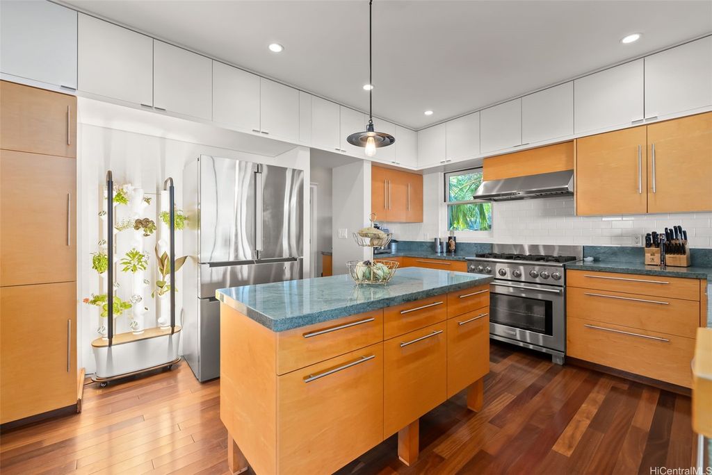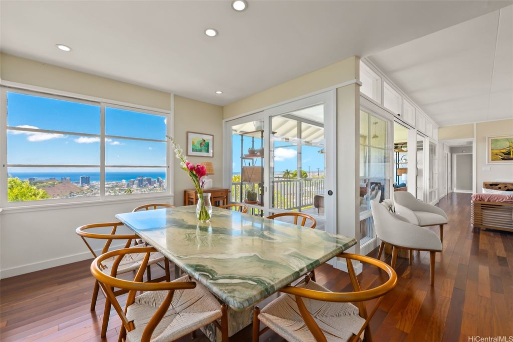 NEW LISTING!! Unobstructed, panoramic ocean and mountain views await you from this gracious 5 bdrm/2.5 bath home PLUS a separate studio/1 bath guest quarters in highly desirable Pacific Heights. Steeped in classic island charm, the main home features an open floor plan that flows seamlessly to a spacious covered lanai, beautiful wood floors, and stunning views. The chef's kitchen includes a gas range and stainless-steel appliances. Additional highlights include new carpet, engineered and hardwood flooring, and multiple outdoor areas ideal for relaxed indoor/outdoor living. The separate guest quarters offers vinyl plank flooring, a large covered deck, and a private entry. The exterior of both dwellings has been freshly painted, and the expansive backyard provides the perfect setting for relaxation. Experience the rare blend of comfort, charm, and sweeping island vistas that make this property truly special. A must-see!