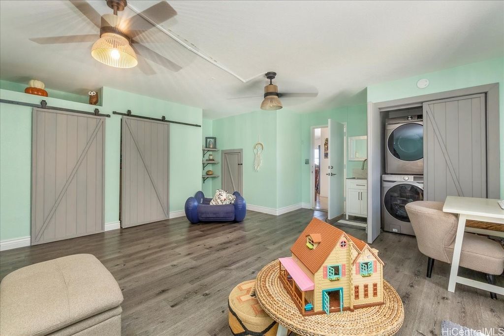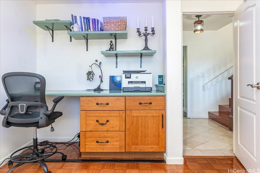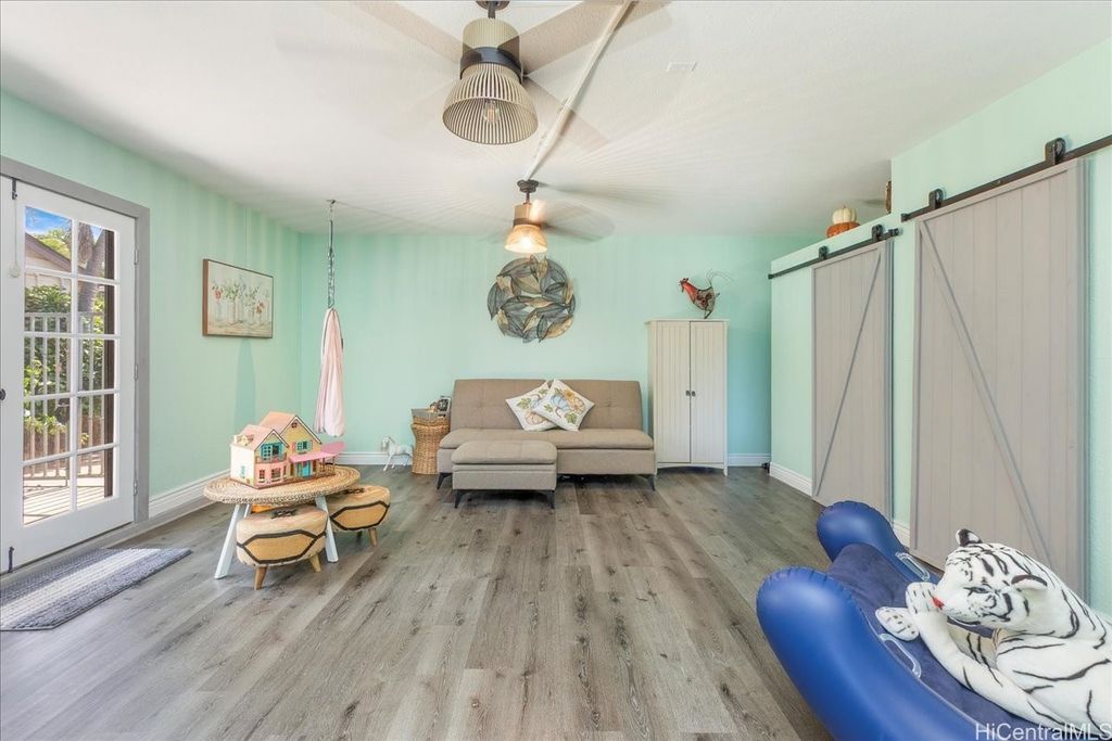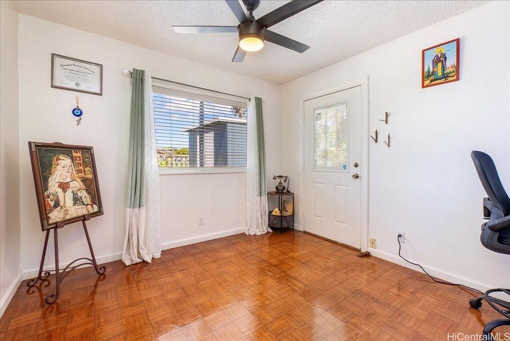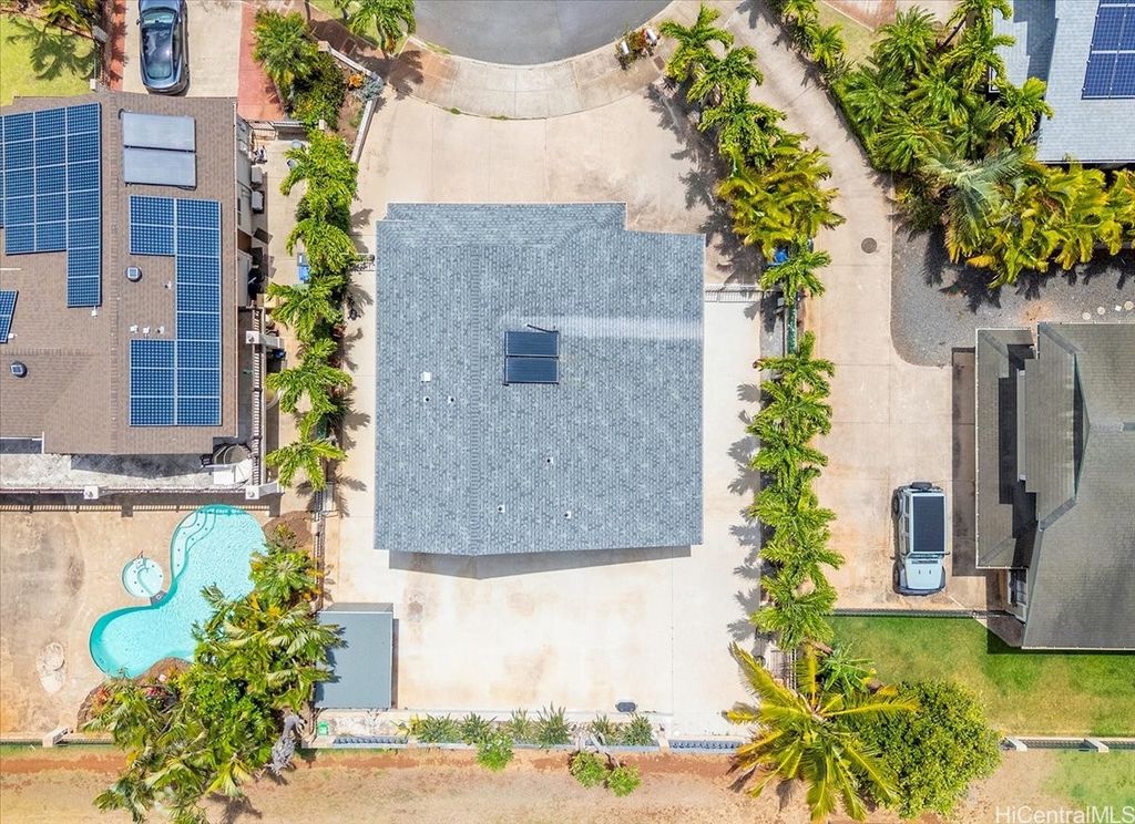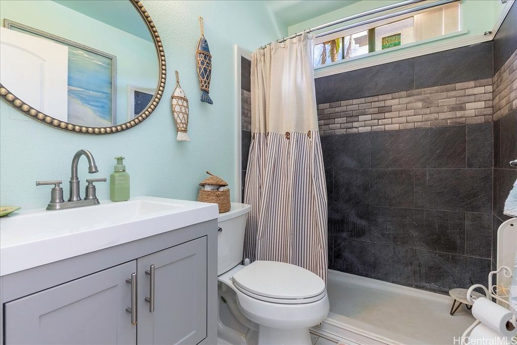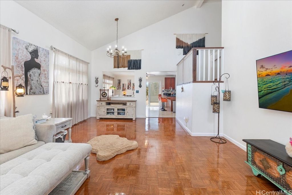 No Rear Neighbors! Beautifully renovated West Hills 4-bedroom, 3-bath home with attached 2-car garage, ideally located at the end of a quiet cul-de-sac overlooking Makakilo Heights Neighborhood Park. Versatile floor plan includes a downstairs bedroom and full bath perfect for guests or in-laws. Bright, open-concept living and dining areas flow seamlessly to a private backyard for ideal indoor-outdoor living. Enjoy cool Makakilo breezes that help keep energy costs low. Updated kitchen features newer stainless steel appliances, solid surface countertops, and stylish tiled backsplash. Upstairs offers 3 additional bedrooms, including a spacious primary suite with walk-in closet, dual vanities, and a renovated walk-in shower. All bathrooms have been updated! Garage is currently converted into an additional room (easily converted back), and the oversized driveway accommodates up to 6 cars. Conveniently located near H-1, Kapolei shopping, dining, and Ko Olina beaches. Low HOA under $10 month. Move-in ready with endless potential!
