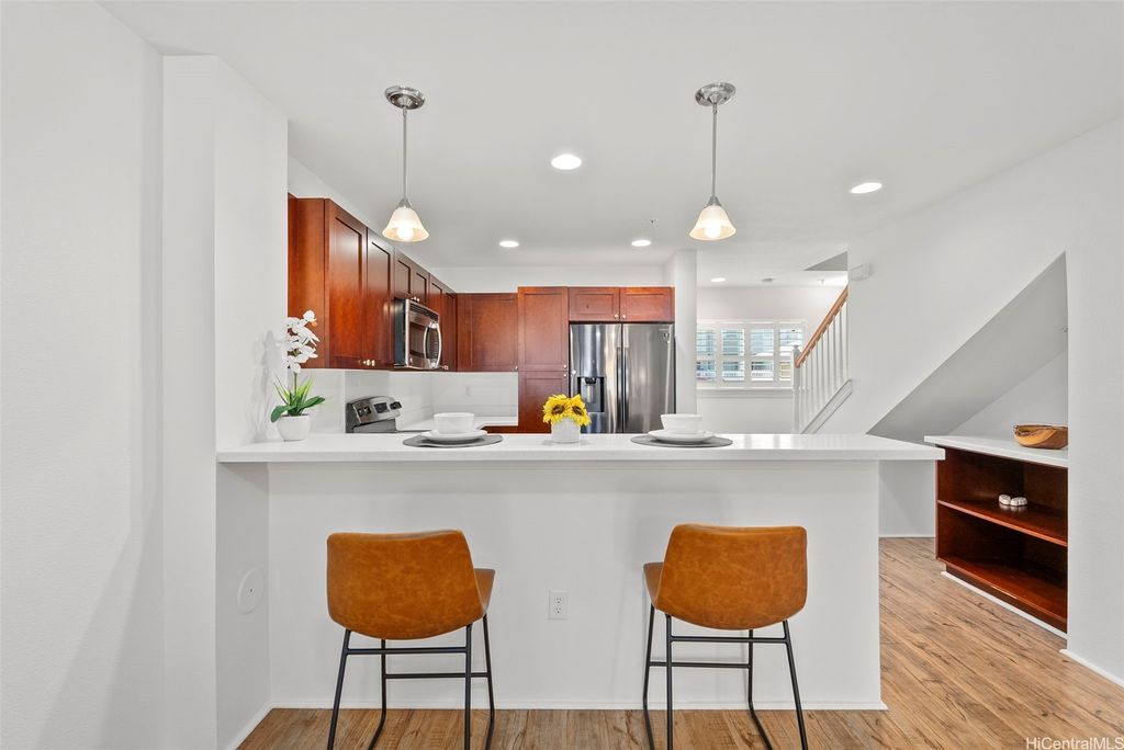 Price reduced! Brand new carpet, true turn key, priced to sell, 2-bed, 2.5-bath townhouse with 2 parking stalls in the highly sought-after Mehana community in Kapolei. This split-level home features a bright, open layout with half bath on the ground level and two bedrooms on the second floor, split ACs throughout, yard space for kids or pets, and access to community amenities including a pool, dog park, wellness center, playground, and walking paths. Located less than 10 minutes from Costco, Target, Walmart (with EV superchargers), Wai Kai wave pool, and Ka Makana Ali"˜i Shopping Center"”featuring Chick-fil-A, Cheesecake Factory, and more"”everything you need is nearby. You're also just 15 minutes to White Plains Beach, Ko Olina Resort, Aulani, and the Coast Guard Air Station. Around 30 minutes to Joint Base Pearl Harbor Hickam, Tripler Army Medical Hospital, and Camp Smith. Don't miss this opportunity! Perfect for first-time buyers, professionals, or military families"”don't miss this move-in ready gem!