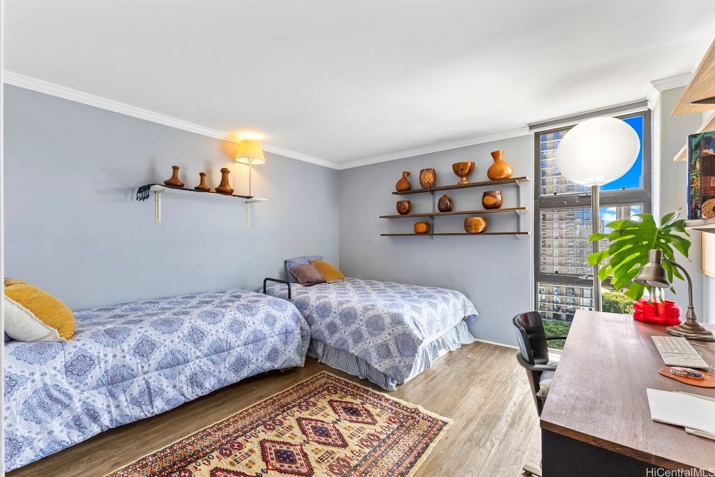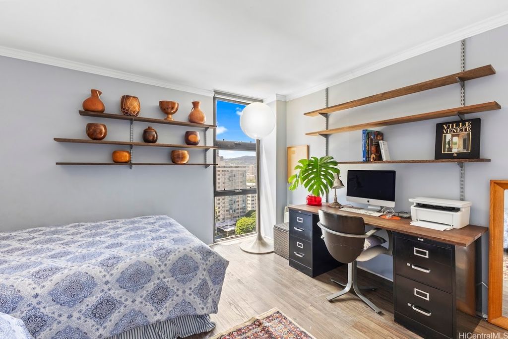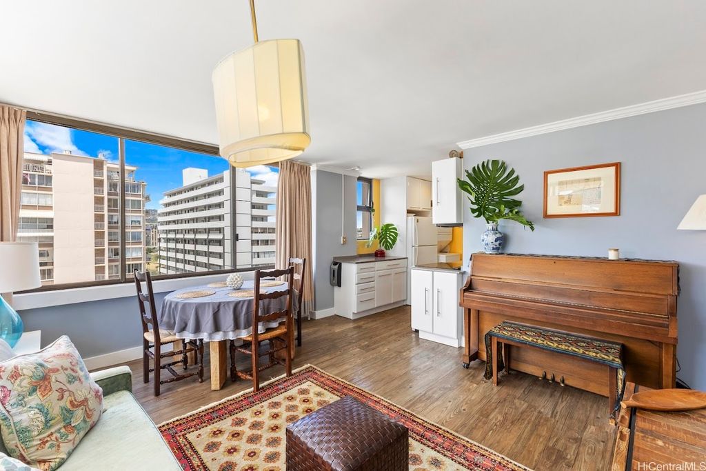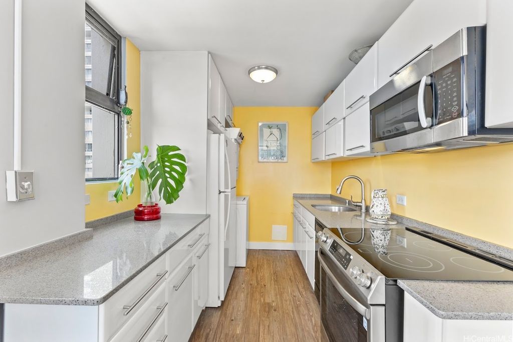 Enjoy panoramic views of the mountains, Ala Wai Canal, ocean, and city from this beautiful maintained 1-bedroom, 1-bathroom corner unit on the 18th floor of Waikiki Skytower. Just four blocks world-famous Waikiki Beach, this move-in ready unit features a specious living area, in-unit washer and dryer, and one covered parking stall. The large, covered lanai with sliding doors invites the tropical breeze and offers the perfect spot to relax with ocean and city views-ideal for enjoying a morning coffee or a glass of wine as Waikiki lights up at night. This fully furnished unit comes complete with linens and kitchenware, making it ideal as a primary residence, second home, or turnkey rental. The pet-friendly building offers excellent amenities including a swimming pool, sauna, BBQ area, surf and bike lockers, and Four guest parking stalls. Conveniently located near Waikiki Beach, Ala Wai Golf course, International Market Place, local shops, restaurants, and the island's best surfing spots like Queens and Canoes. Start living the Hawaiian dream today! Sold "AS IS".