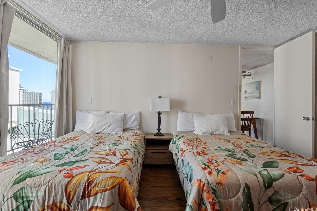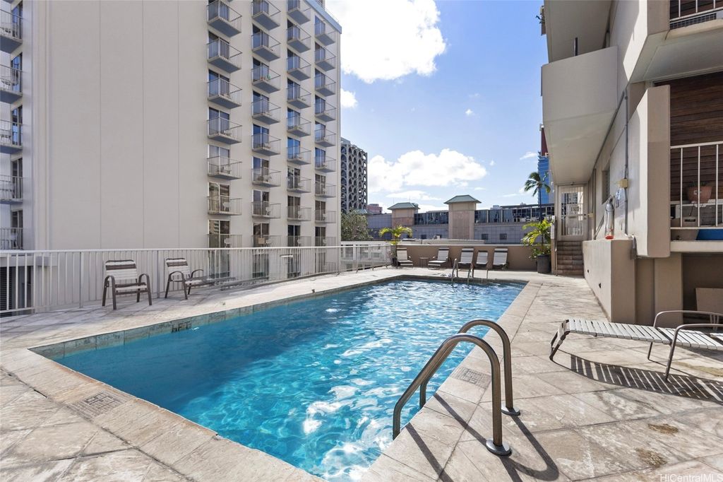 Rarely available 1-bedroom corner unit at Marine Surf Waikiki"”this is the only non-penthouse 1BD unit in the entire building! Bright and breezy, this spacious corner residence features partial ocean views, excellent natural light, and a thoughtful layout that offers comfort and functionality. Located in the heart of Waikiki, just a short stroll to world-famous beaches, renowned restaurants, and premier shopping, this unit is a perfect blend of convenience and island lifestyle. With its resort zoning and high rental demand, it presents a fantastic opportunity for investors or those seeking a second home in paradise. This is a legal short-term rental, making it an even more valuable investment opportunity. Marine Surf Waikiki is a well-managed building with amenities including a pool and security, and this unit comes with rare deeded parking. Whether you're looking to live, vacation, or invest, this is a unique chance to own a truly special property in one of Waikiki's most desirable locations.