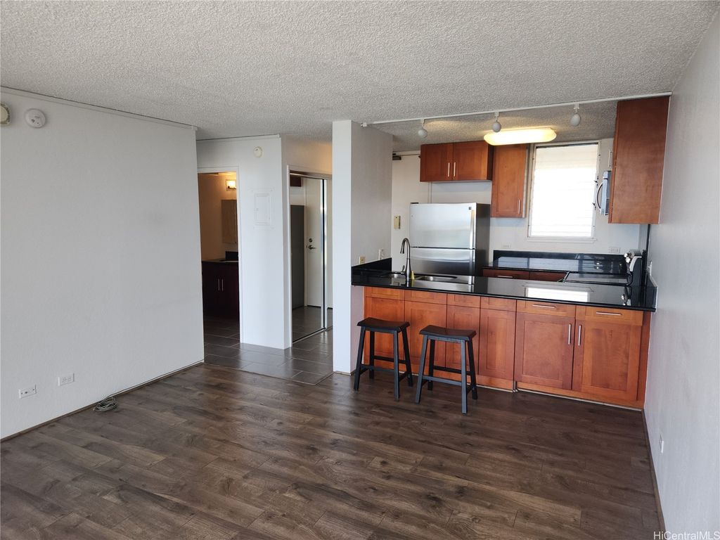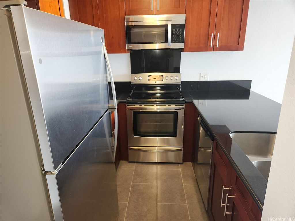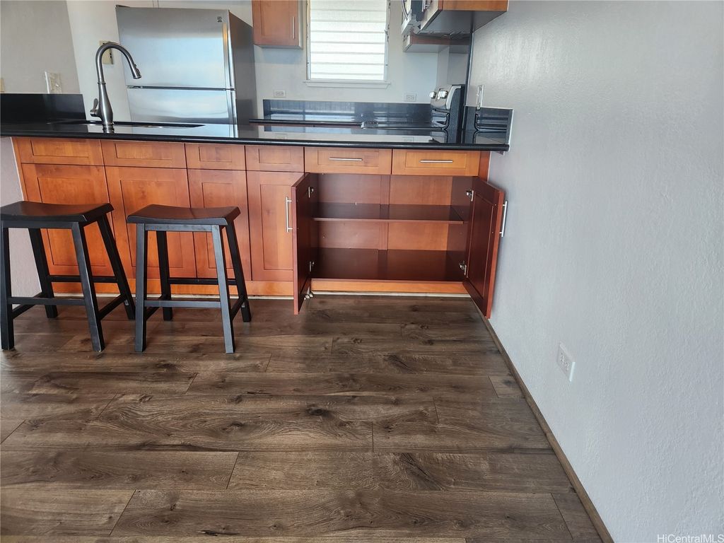 Best spot in the building! Center top Penthouse, directly facing the ocean. Rarely available at desirable Lele Pono. Awesome panoramic views from Diamond Head to Ewa. You can enjoy the spectacular view of the long coastline at the top of the building from your spacious lanai. Shows pride in ownership. Renovated in 2013. Updated cabinets, granite countertops, upgraded appliances. Laminate flooring in living room & bedroom, and ceramic tile floor in kitchen & bathroom and so much more! 1 covered parking conveniently located on the lobby level. Right by Pearlridge Shopping Center, community park, school, bus line and rail station. Amenities abound with pool, recreation area, BBQ and storage locker. Lele Pono has Resident manager, security, cameras and gated entry to parking. Building has insurance in place. Pet friendly too. Click on virtual tour link for 3D tour.