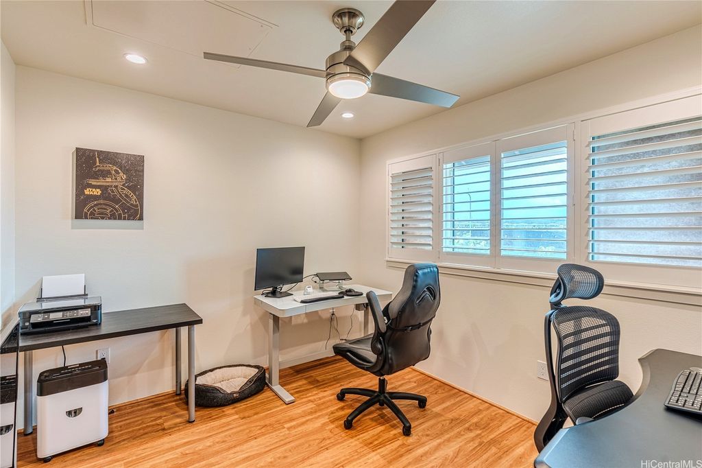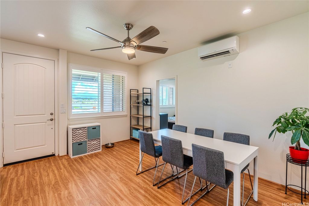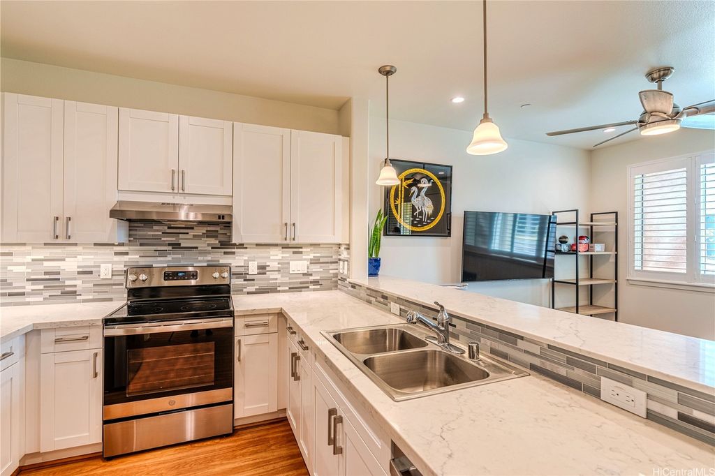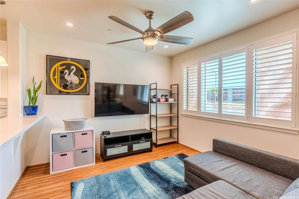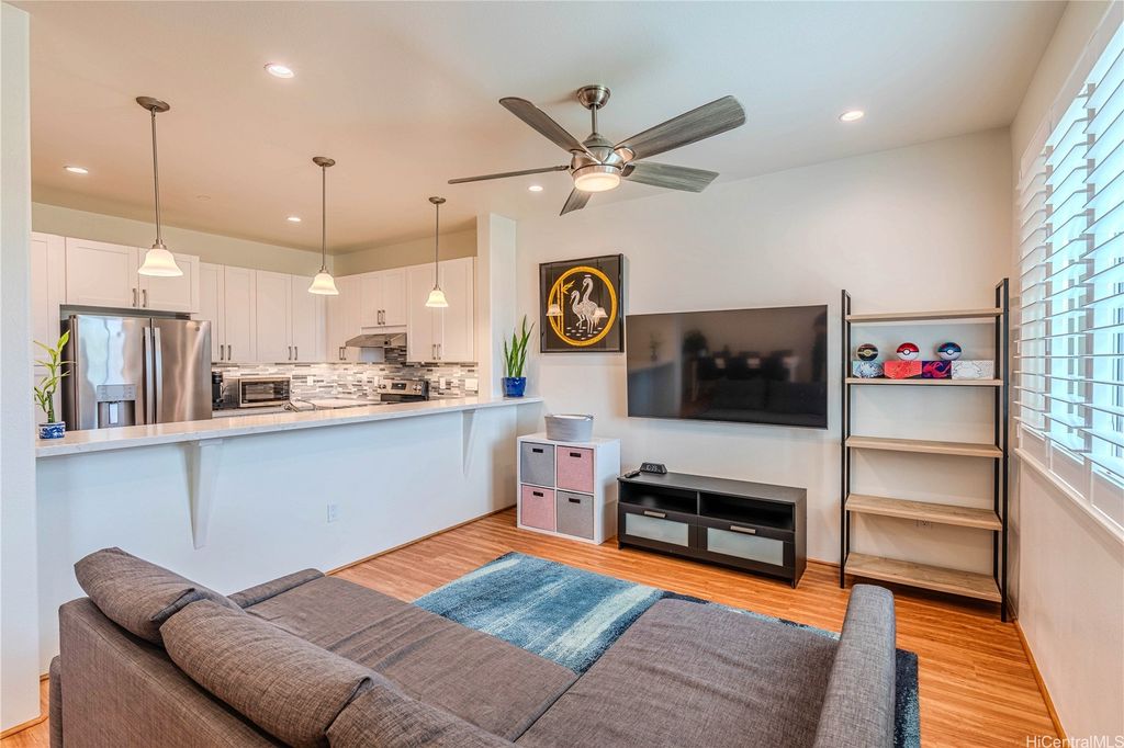 Huge deduct the selling price. This 4 bedroom and 2.5 bathroom condominium consists of 1,557 square feet (net) of living area with an attached garage on the ground floor. When you step into this home, you will be greeted by the kitchen featuring stainless steel appliances and white cabinets. The kitchen flows seamlessly into the dining and living room. The ground floor consists of a bedroom with a walk-in closet, and a full bathroom. The second floor features 3 bedrooms with one bath and a den. The Whole house has split air conditioning and modern appliances including a range/oven, micro-hood, dishwasher, refrigerator, and washer/dryer allow for ease of living. Seller spent extra $70K to upgrade the property with new quartz kitchen countertop, ceiling fans in all rooms, security doors on front and back doors....etc Short distance to Costco, Waikele outlets and H2 freeway.