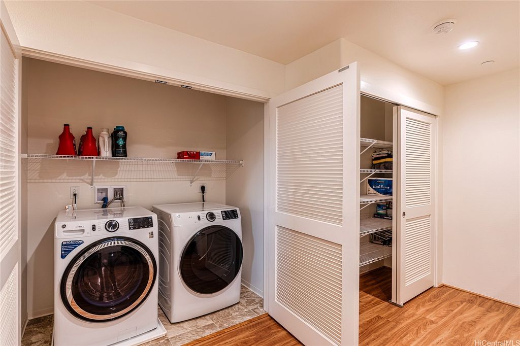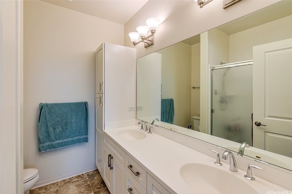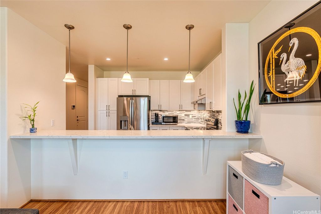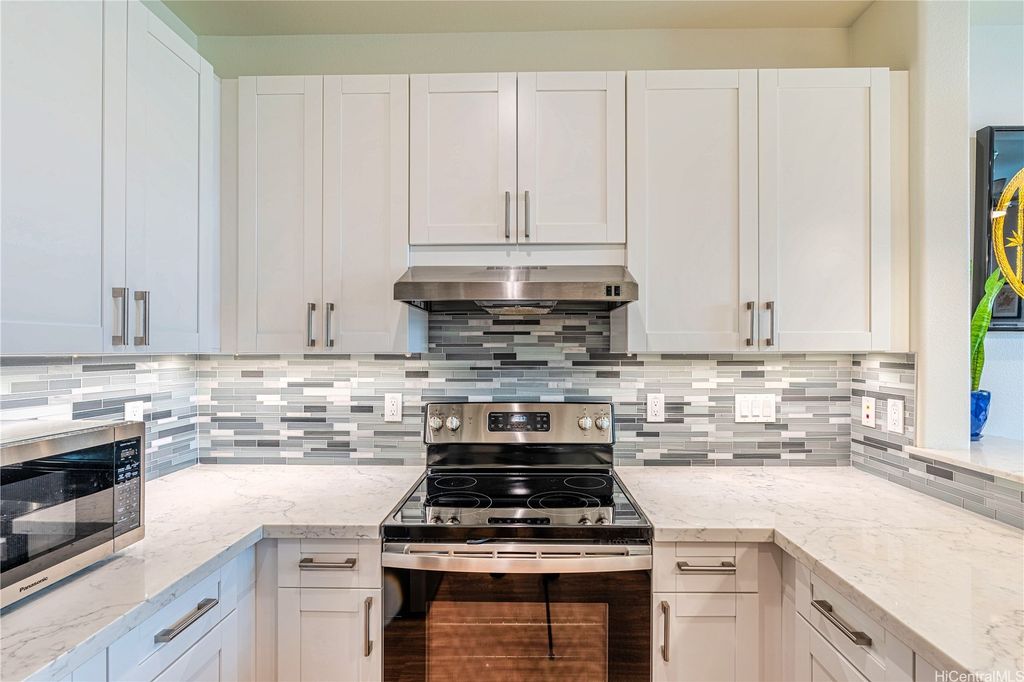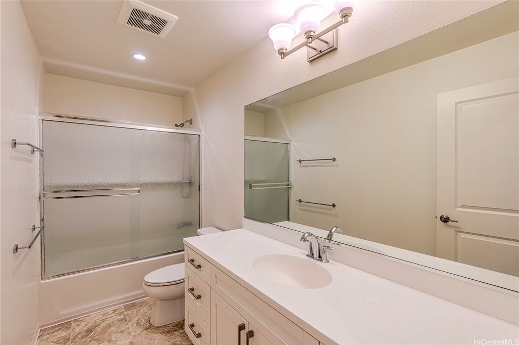 Huge deduct the selling price. This 4 bedroom and 2.5 bathroom condominium consists of 1,557 square feet (net) of living area with an attached garage on the ground floor. When you step into this home, you will be greeted by the kitchen featuring stainless steel appliances and white cabinets. The kitchen flows seamlessly into the dining and living room. The ground floor consists of a bedroom with a walk-in closet, and a full bathroom. The second floor features 3 bedrooms with one bath and a den. The Whole house has split air conditioning and modern appliances including a range/oven, micro-hood, dishwasher, refrigerator, and washer/dryer allow for ease of living. Seller spent extra $70K to upgrade the property with new quartz kitchen countertop, ceiling fans in all rooms, security doors on front and back doors....etc Short distance to Costco, Waikele outlets and H2 freeway.