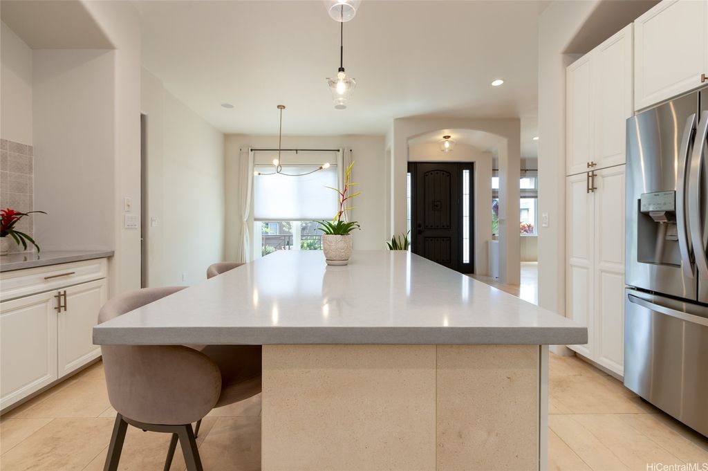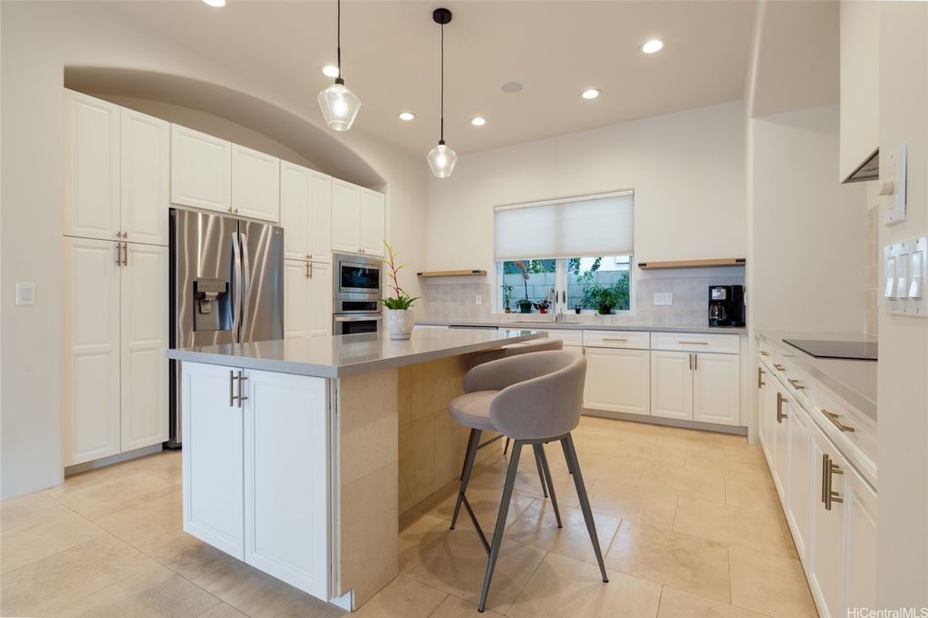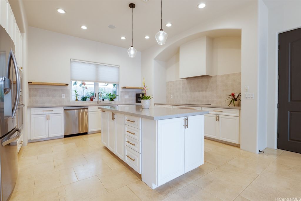 **OPEN HOUSE ** 8/3/25 2:00-5:00 *** LUXURY SINGLE-LEVEL HOME IN PALEHUA POINTE! Welcome to this stunning custom-built 4-bed,3-bath home in one of Upper Makakilo's most desirable neighborhoods. Situated on a corner lot, this single-level residence features soaring 10-ft ceilings, 8-ft doors, and an open-concept layout filled with natural light. The chef's kitchen offers stainless steel appliances, a spacious island, and ample storage-perfect for entertaining. Enjoy central A/C, a built-in speaker system (indoors & out), and a bonus bedroom with its own cabinet, counter and sink-ideal for guests or multi-generational living. The primary suite features generous space and a beautifully updated en suite bath. The finished 2-car garage includes a full bath, split A/C, sink, refrigerator and its own washer/dryer-great as a gym, workshop, or a flexible living space. The yard is beautifully landscaped, low maintenance, and includes a sprinkler system. DONT MISS THIS RARE OPPOPRTUNITY - schedule your private showing today!