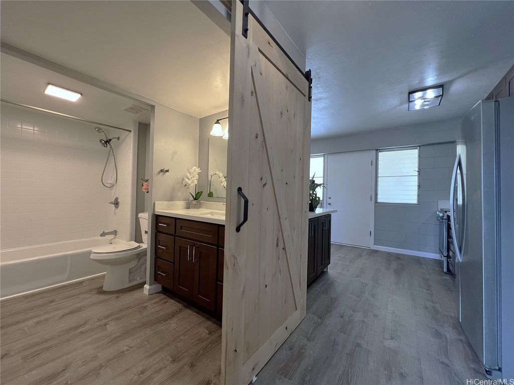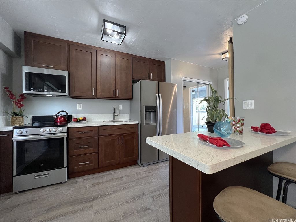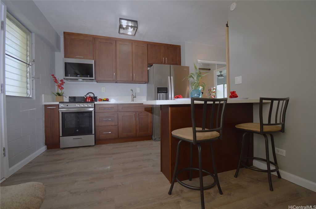Welcome to this beautifully updated 1-bedroom, 1-bath condo at Makiki Colony, ideally situated near Punahou, with quick access to UH, H-1 freeway, and Ala Moana. This thoughtfully designed unit features a modern kitchen with space-saving countertop dining, perfect for maximizing functionality. Enjoy stylish finishes including stainless steel appliances, mirrored closet doors, a contemporary barn-style bathroom door, and sleek laminate flooring throughout. Step out onto your open lanai and take in the refreshing breeze "” ideal for relaxing or entertaining.