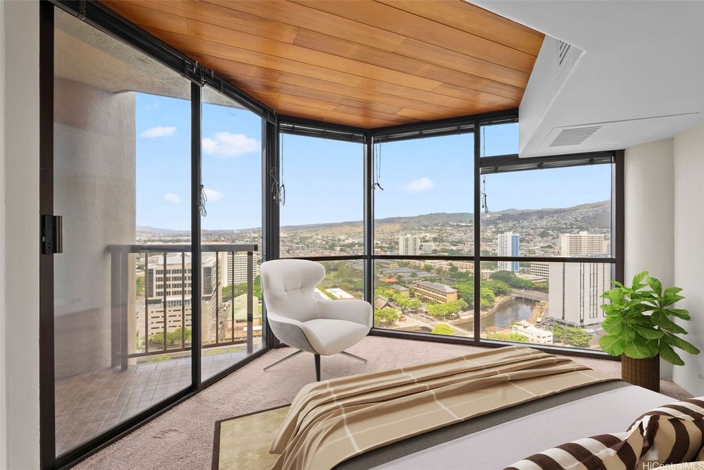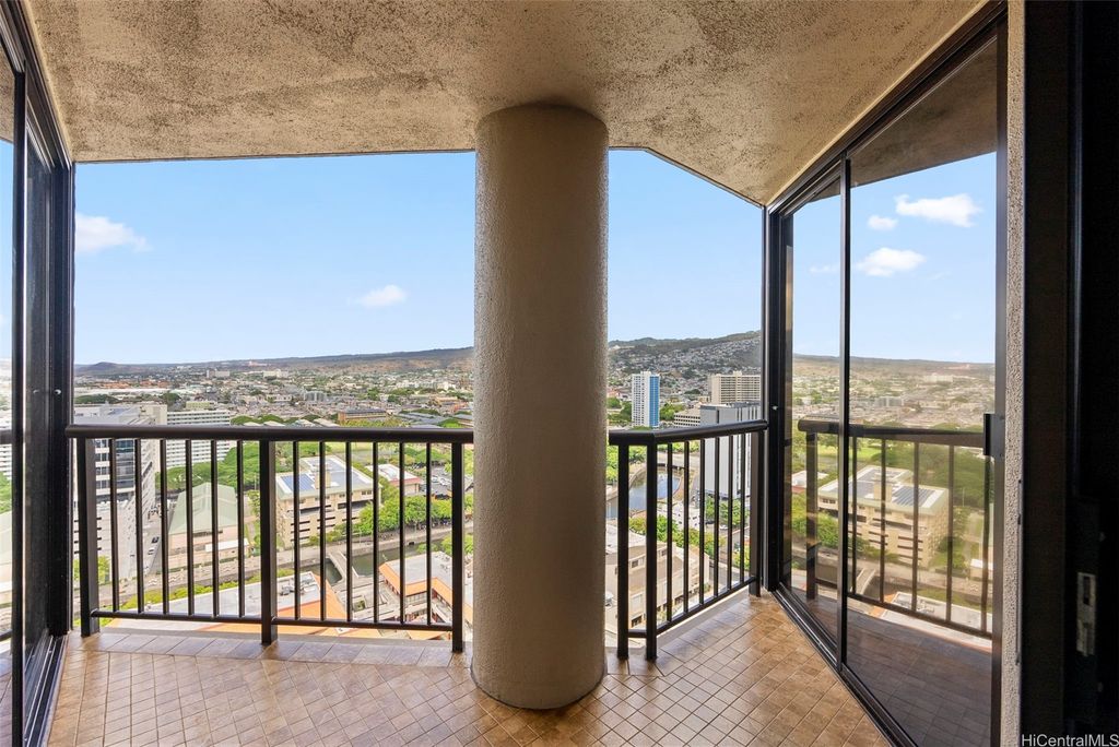 NEW LISTING!! Live in the heart of Honolulu! This high-floor 2 bdrm/1 bath condo at Honolulu Tower features 993 sq ft of comfortable living space plus a covered lanai with beautiful mountain views. Includes one covered parking stall. Enjoy amenities including swimming pool, hot tub, BBQ area, and 24-hour security. Just minutes to shops, restaurants, and Downtown Honolulu, with easy freeway access. Perfect blend of comfort, convenience, and city living! A few photos have been virtually staged(enhanced).