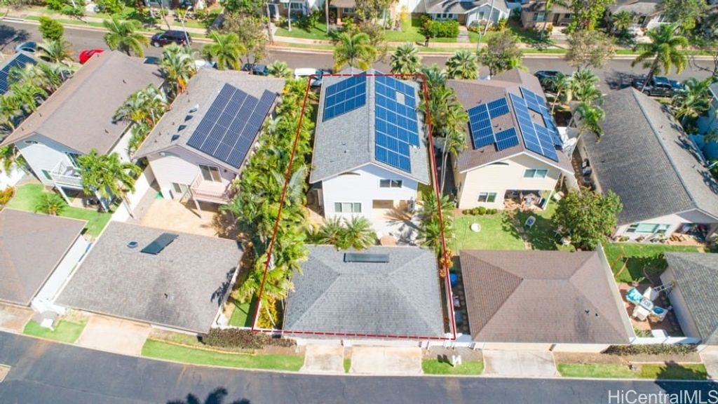 Imagine owning a stylish, energy-efficient home where your monthly electric bill is about $30, thanks to 37 solar panels on net metering. It also features a VA assumable mortgage at 4.5% interest and a gap of under $80k. This lovely home blends island charm with smart upgrades, including a new energy-efficient A/C to keep you cool and save costs. Parking is a breeze with a spacious 3-car garage perfect for your vehicle, a home gym, or extra storage space. Step outside to your private backyard oasis, complete with lush palms, tidy grass, and a spacious lanai"”perfect for sunset barbecues or enjoying your morning coffee in paradise. Inside, the upstairs loft is a versatile space that can be a home office, playroom, or second living area, giving you room to grow. Located just minutes from beautiful beaches, parks, and schools, this home offers the laid-back, easy island lifestyle. Whether you're eco-minded, are growing your family, or looking for a smart investment, this move-in-ready property is an excellent choice. Don't wait"”schedule a tour today and make Ewa Beach your forever home!