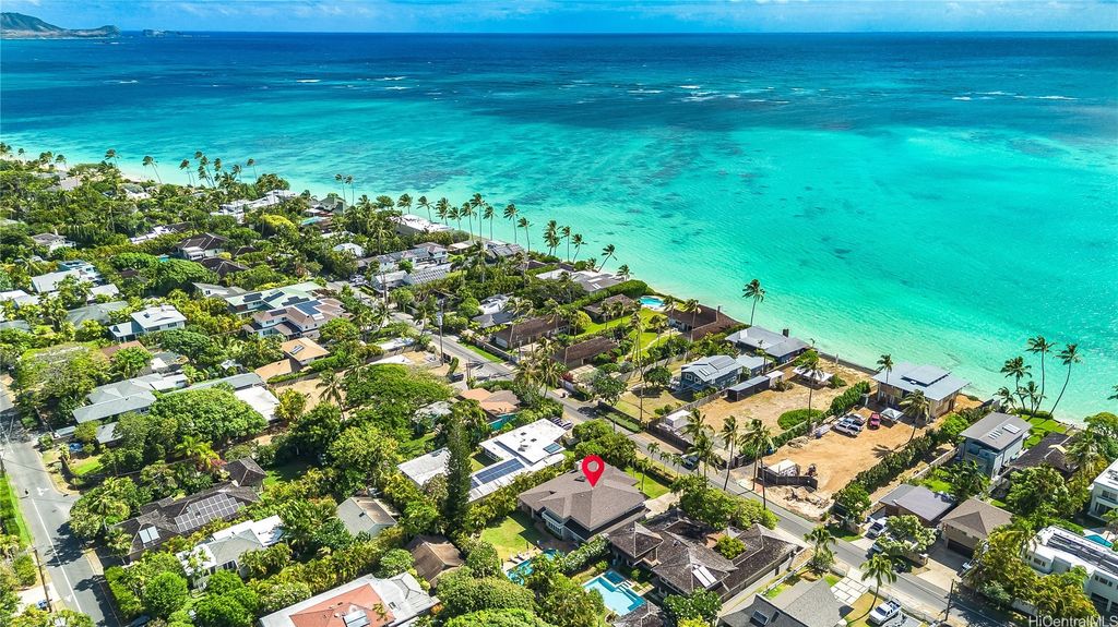 "Recent Price Improvement" Steps from the ocean, this stunning island retreat offers the perfect blend of luxury, comfort & convenience. Thoughtfully renovated with modern touches, the home invites you to embrace beachside living"”so bring your swimsuit & paddle board; there's ample storage for all your ocean gear. Enjoy breathtaking ocean & mountain views from this serene oasis, featuring 2 spacious primary suites, a private pool, cozy fireplace & an expansive covered lanai that flows seamlessly into a generous backyard"”ideal for entertaining or unforgettable family gatherings. The upgraded kitchen is a dream for any home chef, thoughtfully designed to combine elegant style with everyday functionality. The downstairs den & bath could be used as a 5th bedroom. A spacious front yard with an electric gate provides both privacy & convenience, while the large open backyard offers endless possibilities for outdoor fun. Located in the quieter, rear section of Lanikai"”away from the busy park"”this home offers peace and privacy just moments from the shoreline. Start your mornings walking the Lanikai loop at sunrise or enjoy cool afternoon strolls with your close-knit community of neighbors.