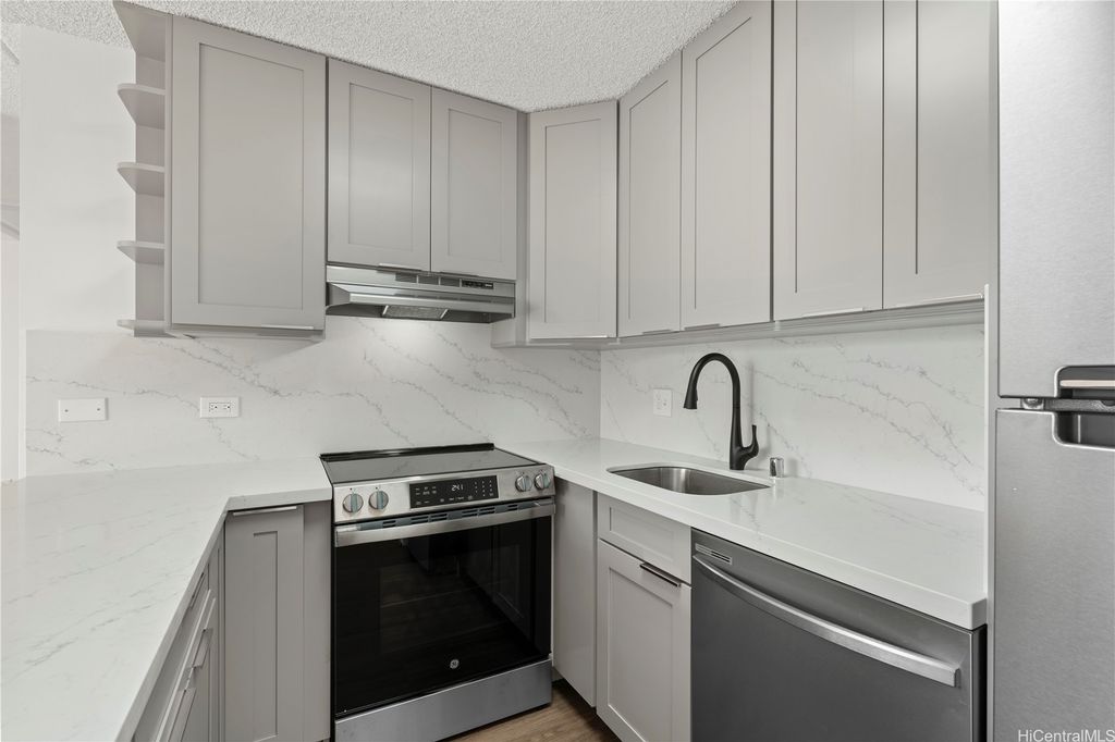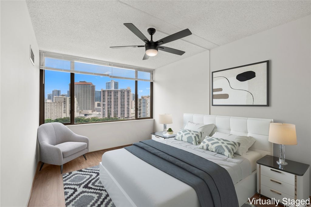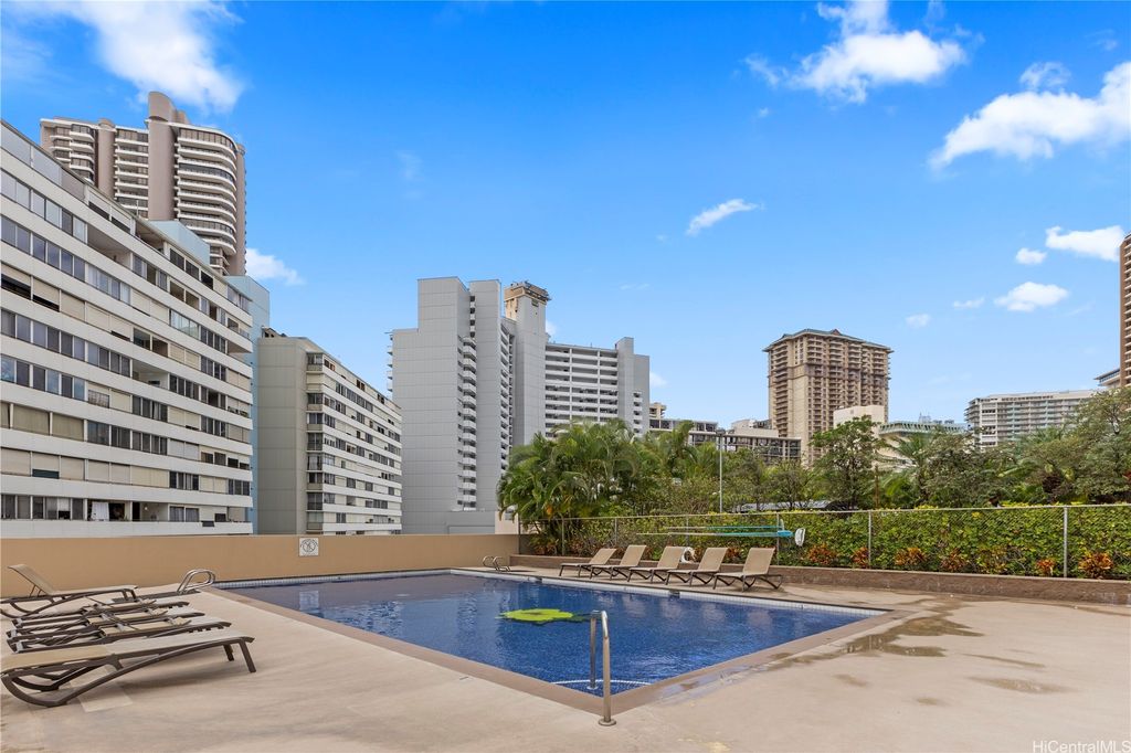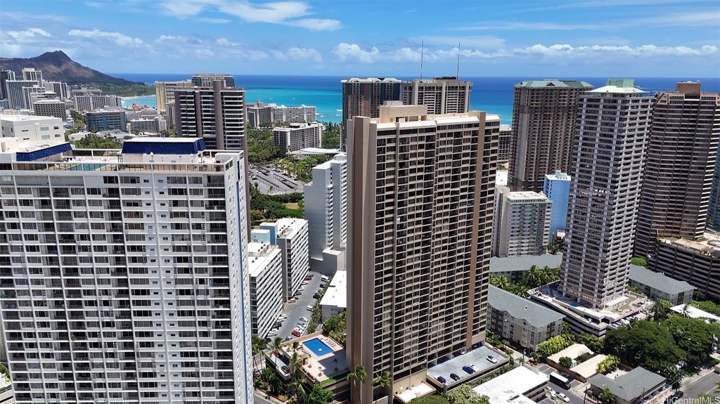 Marina and city views from this southwest-facing residence in desirable Chateau Waikiki. This 1-bedroom, 1-bath unit has a spacious lanai and large picture windows providing ventilation and ample natural light. Newly remodeled kitchen and baths with quartz counter tops, hardwood cabinets, new stainless steel appliances, and luxury vinyl flooring throughout. Amenities include a large pool, BBQ area, exercise room, sauna, library, resident manager, and secured entry. Minutes to Waikiki Beach, Ala Moana Beach, Ala Moana Shopping Center, Kaka'ako and a variety of shops and restaurants.