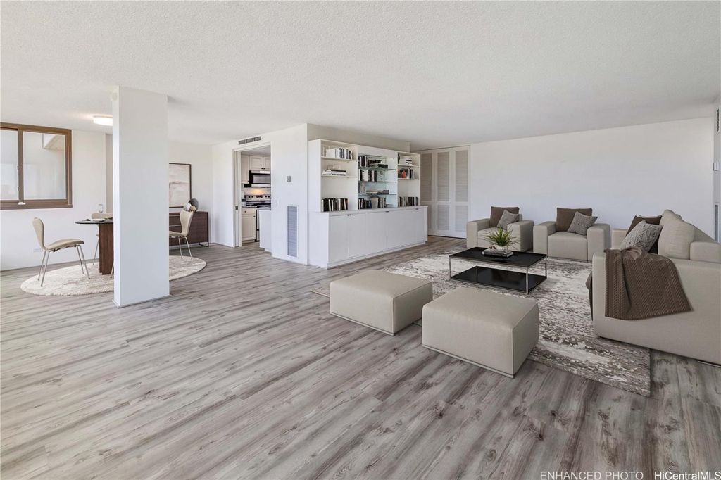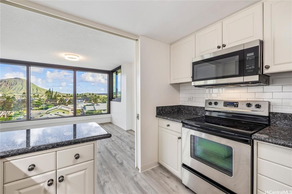 Best Value at Mt. Terrace. Now priced to sell! Welcome to your castle in the sky in Hawaii Kai, where luxury living meets breathtaking views! This stunning condo sits on the fourth floor and boasts panoramic views of Hawai'i Kai Marina, Maunalua Bay, Koko Head, and lush greenery that will take your breath away. Located in one of the most sought-after neighborhoods on the island of Oahu, this property offers the perfect blend of relaxation and convenience. As you step inside, you will be greeted by an open, spacious living area with floor-to-ceiling windows providing unobstructed views. The modern and stylish residence was tastefully remodeled in 2021. The unit also includes two generously sized bedrooms with two full baths, providing plenty of privacy and space for you and your family or guests, and two garage parking spaces. The Mt Terrace Condominium community is known for its topdrawer amenities and twenty-four-hour staff. Conveniently located in the heart of Hawaii Kai, this property is just minutes away from locally owned restaurants, shopping centers, and recreational options, including hiking, and boating.