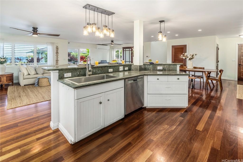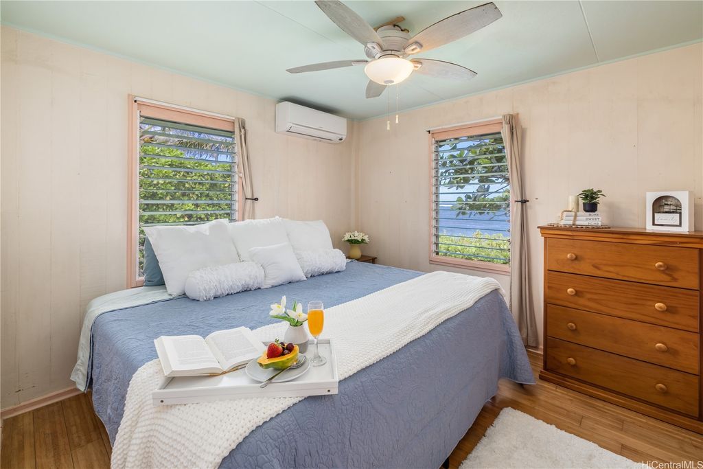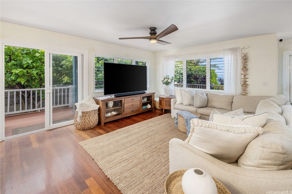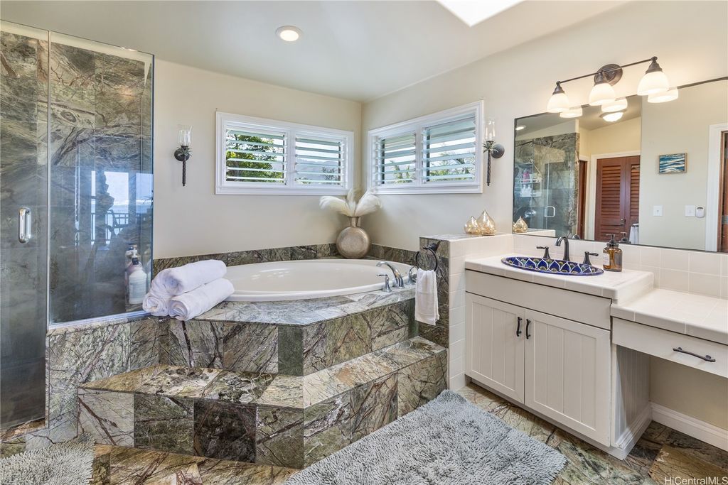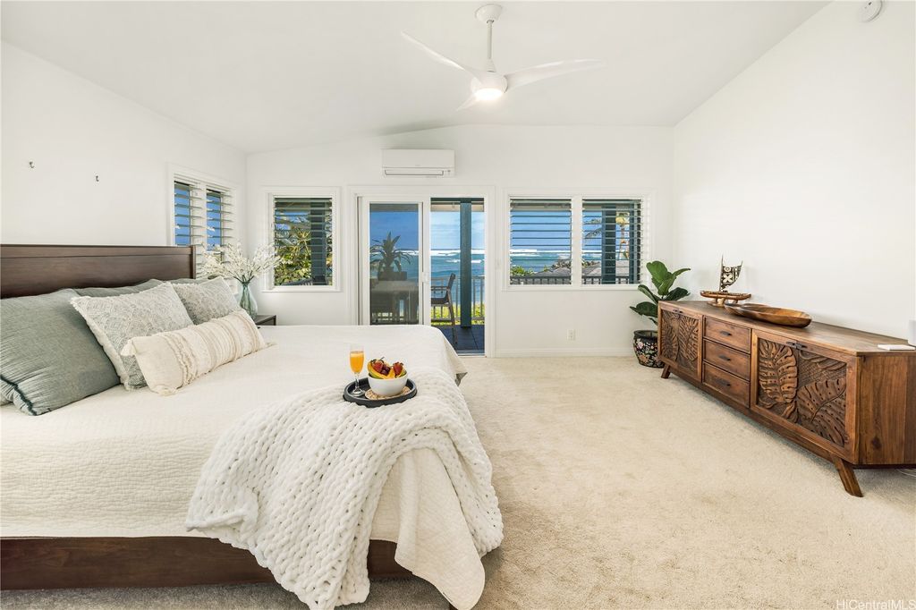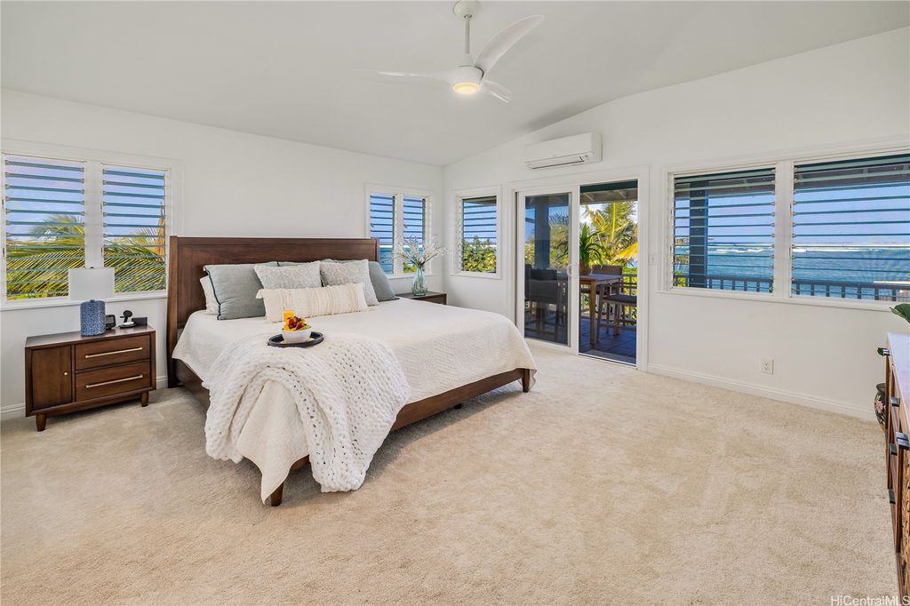 Breathtaking ocean views with white sandy beaches and captivating sunsets showcase paradisical island living along one of Oahu's finest coastline stretches. This stunning 6 bedroom, 5 bathroom home; nestled amidst gorgeous tropical vegetation with the peace and tranquility of a cul de sac, is a Homeowners dream. With a blend of classic and local charm, the main house open floor plan offers effortless transitioning between the living spaces and out on to the wrap around lanai. Favorably elevated on the 2nd floor, the Primary bedroom, with en-suite bathroom, opens up on to a 200 sqft lanai with mesmerizing ocean views and cool windward breezes. 2 additional bedrooms with en-suite bathrooms complete the upper living area. Downstairs hosts a 1 bedroom/1 bathroom with a quaint office space. With its own privacy and serenity, a charming 2 bedroom/1 bathroom beachfront cottage is perfect for visiting family and friends or as a long term rental unit. The epitome of coastal living is enveloped in a layer of old Hawaii to bring you the reset you have been searching for. Close to Haliewa, prominent local eateries, surfing spots, with easy access to Costco, Walmart, Honolulu and the airport.