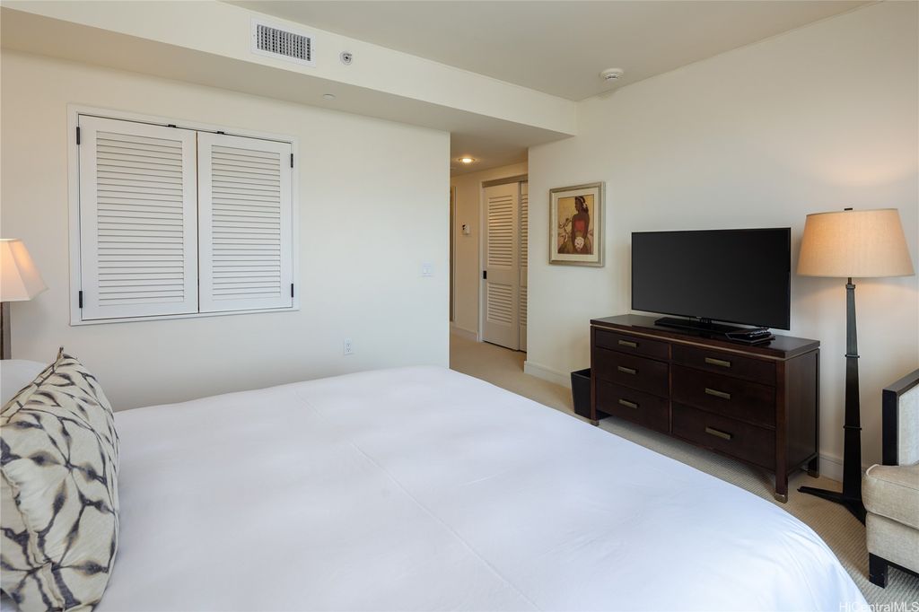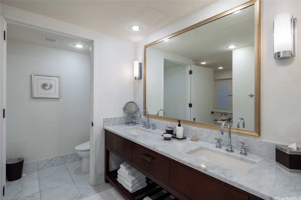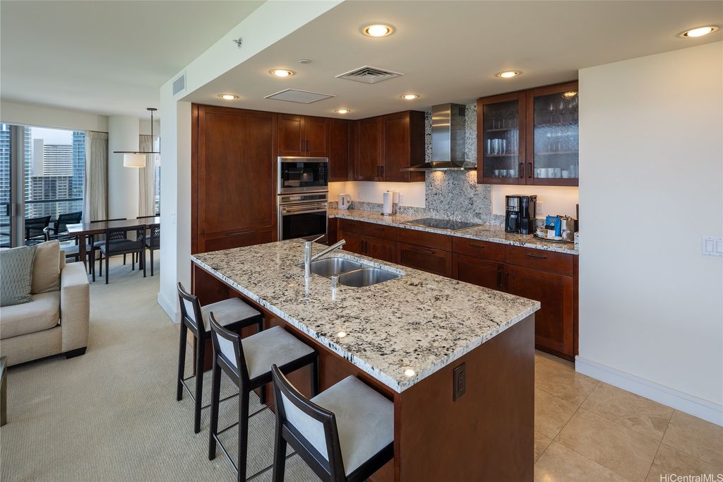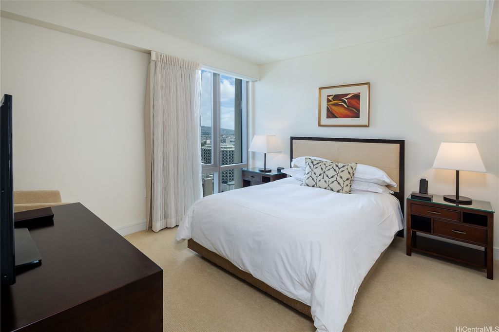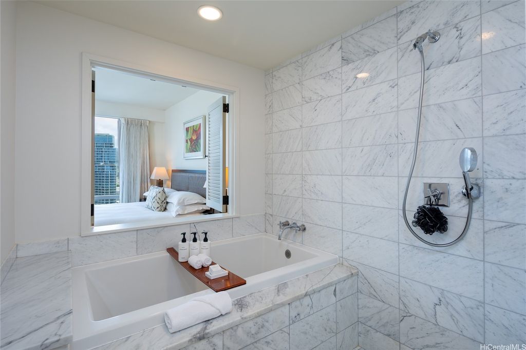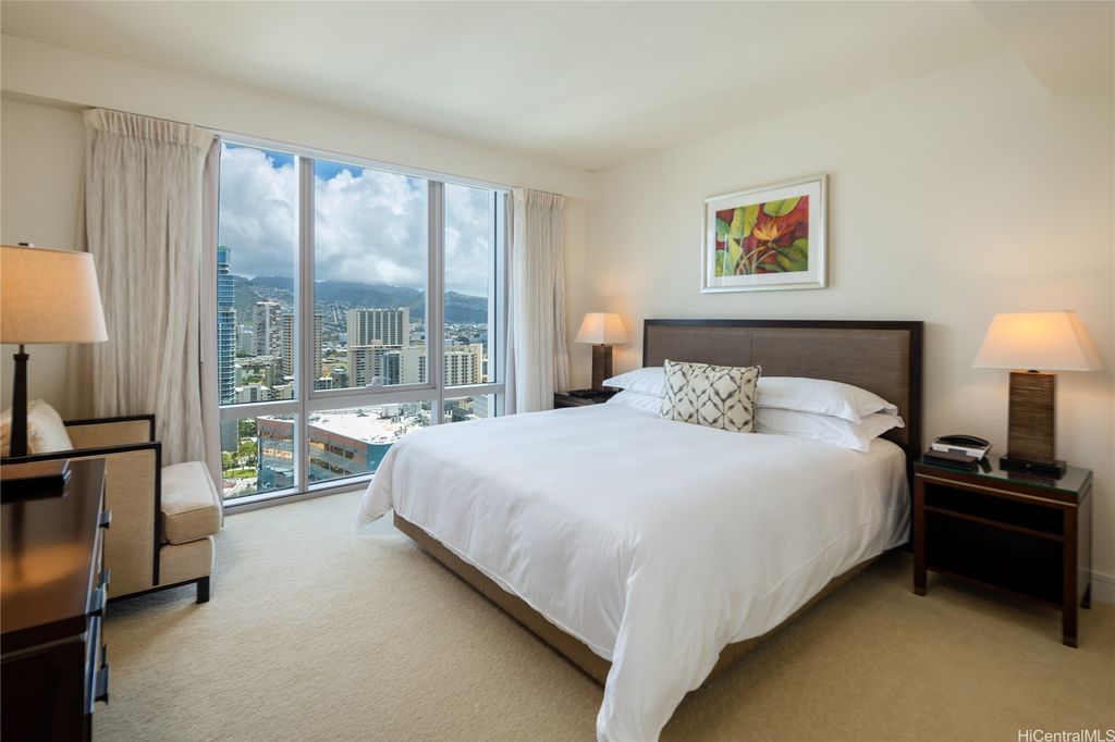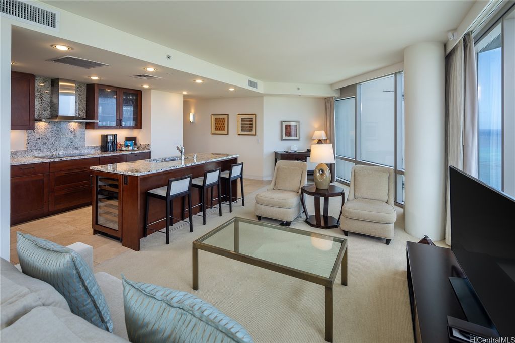 Welcome to paradise living at its finest in this spacious and luxurious 2-bedroom, 2-bathroom suite located on the grand residence floor of Ka Lai Waikiki Beach (formerly Trump Tower). Perched on the corner-end, this exquisite unit offers an unparalleled 180-degree panorama, showcasing breathtaking views of the tranquil ocean, majestic mountains, captivating fireworks, enchanting sunsets, and the vibrant hues of city lights. Overlooking the serene Fort DeRussy Park and beautiful ocean, this haven spans 1,406 square feet of impeccably designed living space complemented by a 73-square-foot open lanai, perfect for indulging in the serene beauty of Waikiki.