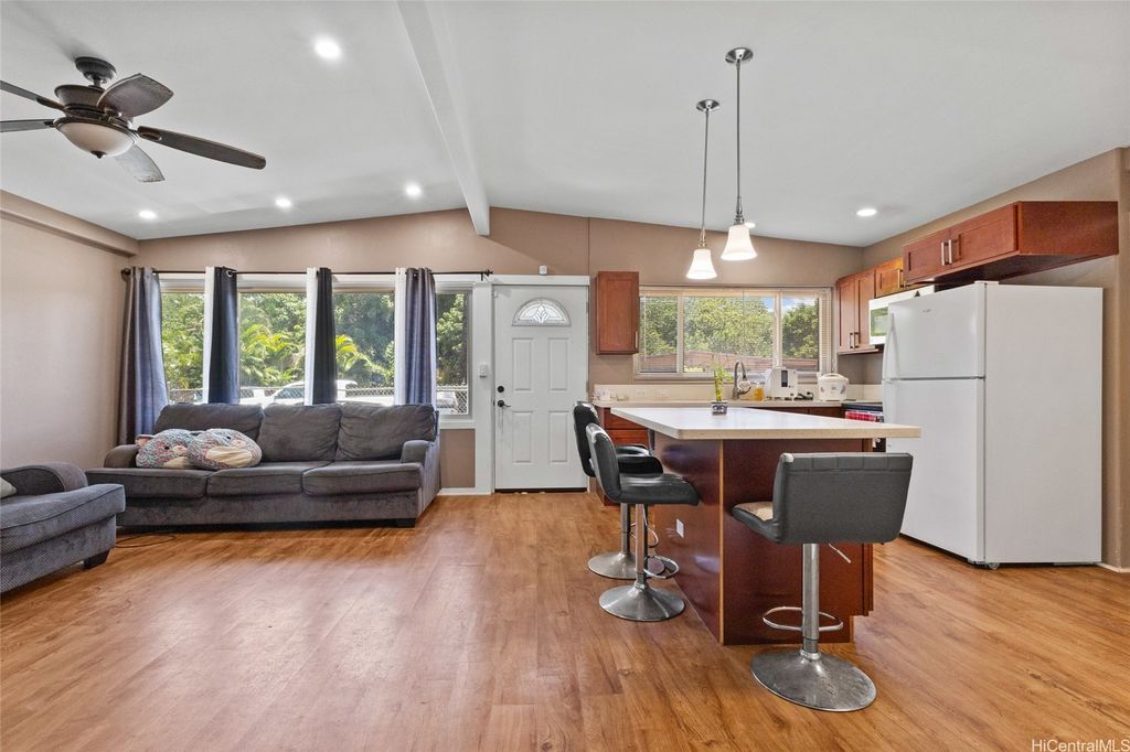 Welcome to 94-555 Awamoi Street - a well-maintained 3-bedroom, 2.5-bath home in the heart of Waipahu. The main home features split AC systems to keep you cool and comfortable year-around, along with a thoughtful layout that blends comfort and function. Separate bonus unit with its own full bath offers flexibility-perfect for guests, extended family, or a private office. Step outside to a large open lanai, ideal for entertaining or simply enjoying the island breeze in your fully fenced backyard. Additional highlights include solar water heating and a convenient location near schools., shopping, and freeway access. This is island living with room to grow! First open house on 7/13/25, 2-5PM.