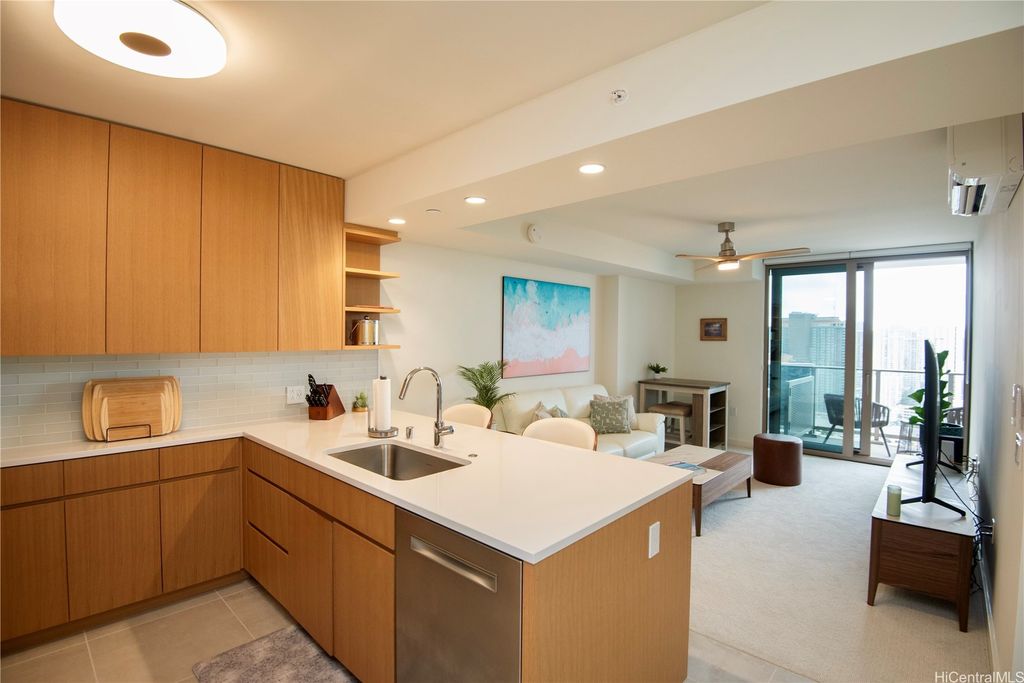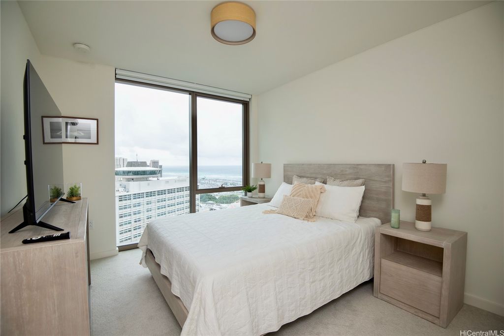 PRICED TO SELL! MOTIVATED SELLER! Incredible opportunity to own one of the most desirable 1-Bedroom, 1-Bathroom units at Sky Ala Moana. This move-in ready, high-floor residence offers stunning Diamond Head-facing ocean, city & mountain views. Bright, open layout with sleek kitchen featuring Bosch appliances, quartz countertops, custom blinds, and split AC. Resort-style amenities include pool, spa, sauna, fitness center, BBQ cabanas, dog park, entertaining spaces & more. Steps to Ala Moana Center and just minutes to Ala Moana Beach Park. All furnishings negotiable "” just pack a bag and move right in!