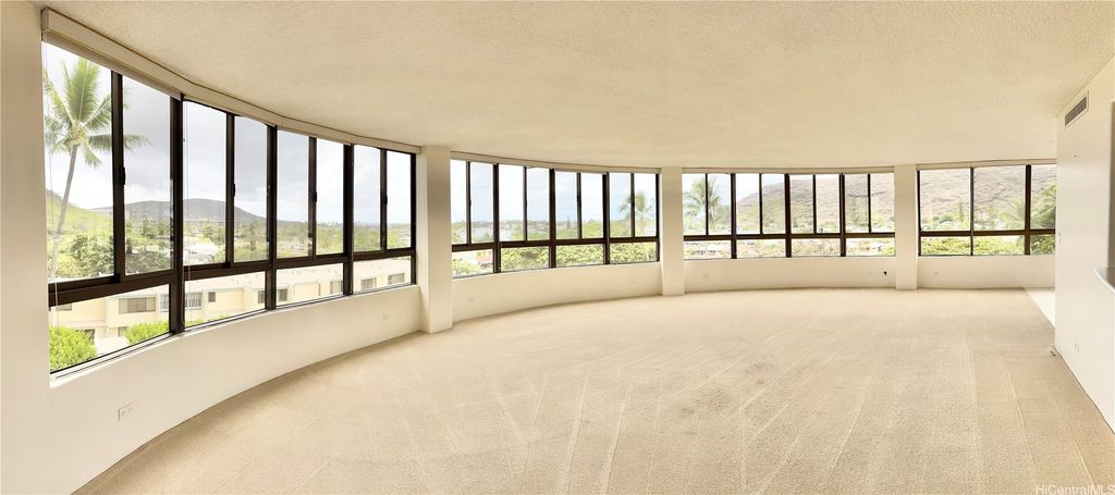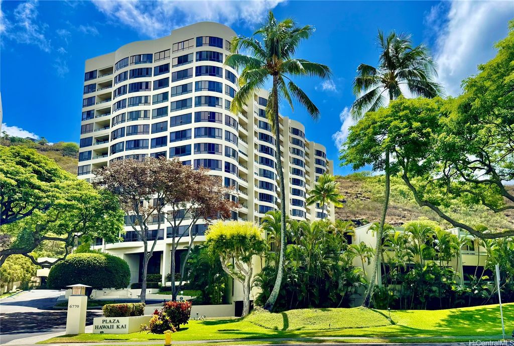 Amazing ocean and marina views! Welcome to your home located in beautiful Hawaii Kai at the Plaza Hawaii Kai in East Oahu.This offering is for a 2 bedroom, 2 bath, corner-end unit, with gorgeous, unobstructed, 180 degree + views of surrounding mountains behind you to Koko Crater in distance and close-up water views of the Hawaii Kai marina to the Pacific ocean! This coveted "02" end unit, has unique "bubble" wrap-around curved facade of floor to ceiling windows offering breathtaking sunrise and sunset 180+views in and out! Multiple living spaces can be created amongst over 1600 sq. feet of interior resulting in a grandeur resort lifestyle! Apt.priced ready for your personal upgrade and TLC touch. 2 covered parking stalls. Storage locker # 31. Guest parking. Pet friendly. Amenities are swimming pool, bathroom and showers, gym, BBQ area w/grassy recreation area, conf. room, car wash area, building security. 100% insured. Other mo. fees/building improvements $376.54 mo.till Oct. 2035.No other future planned assessments per HOA currently.Enhanced photos
