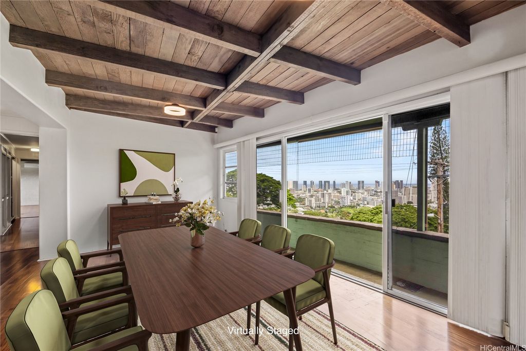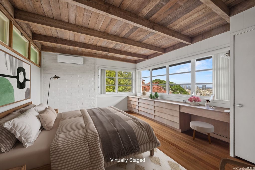 Discover a rare opportunity to own an Alfred Preis-designed residence"”renowned architect of the USS Arizona Memorial. This thoughtfully designed Mid-Century Modern home showcases stunning Ocean, City and Punchbowl views and offers easy access to Downtown Honolulu. The main upper level is ready for a refresh or your personal touches, while the separate lower-level suite has been recently renovated and features its own entrance, bedroom, bathroom, living area, and kitchenette"”ideal for guests, multigenerational living, or rental income. Nestled among terraced tropical gardens, the home is a true paradise for gardeners. The open-concept layout is perfect for entertaining, with a spacious kitchen featuring timeless stainless steel countertops and custom built-in cabinetry. A rare architectural gem in one of Honolulu's most desirable neighborhoods. (One or mire photos have been enhanced)