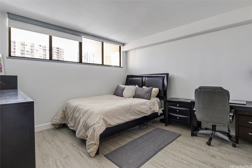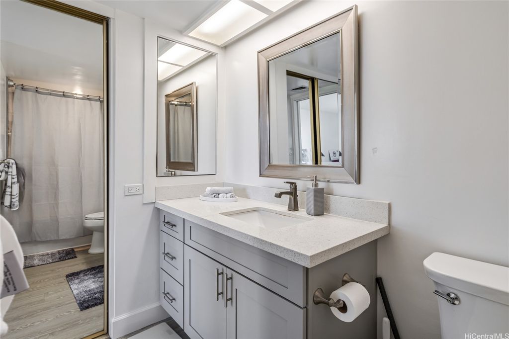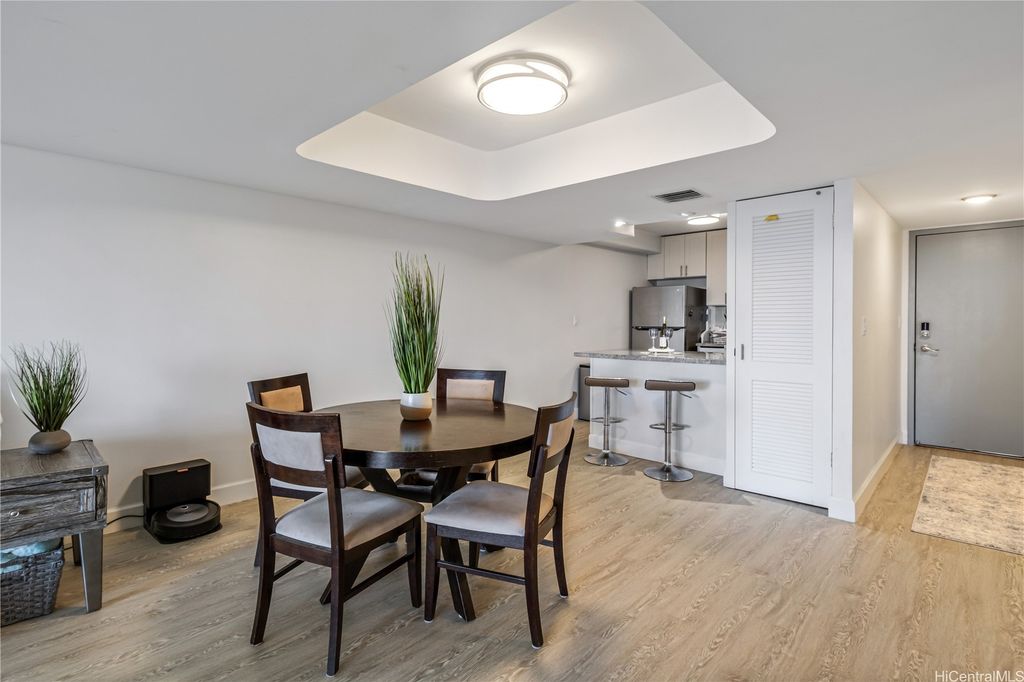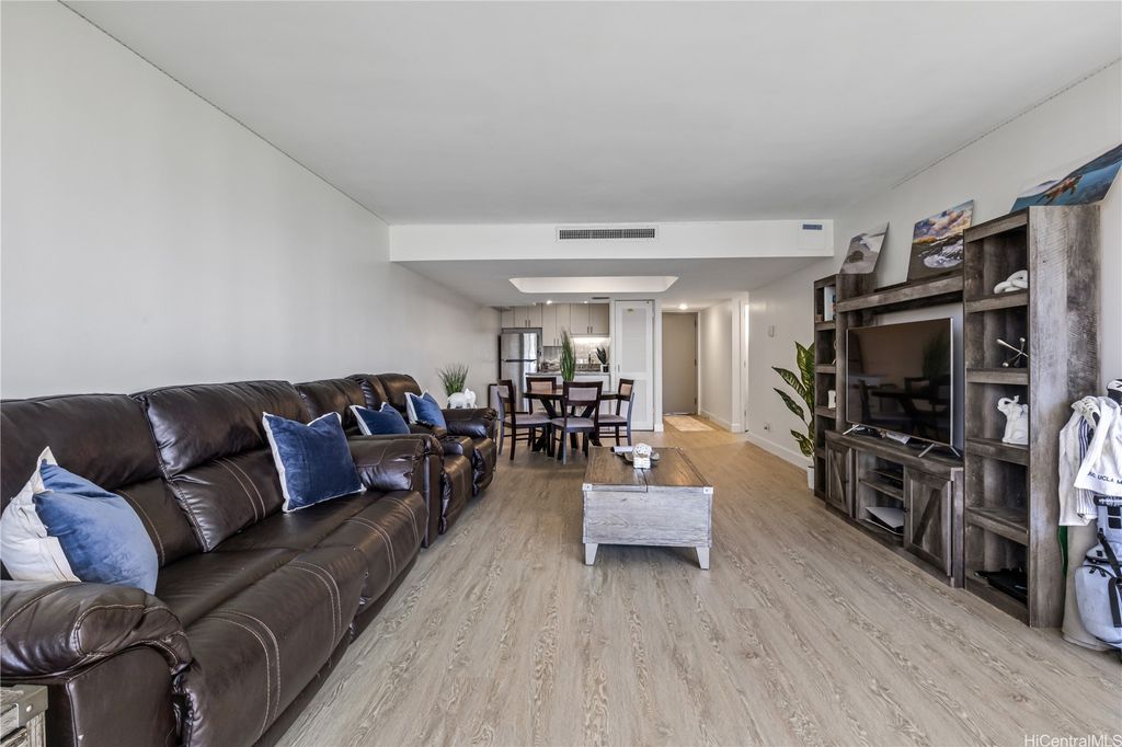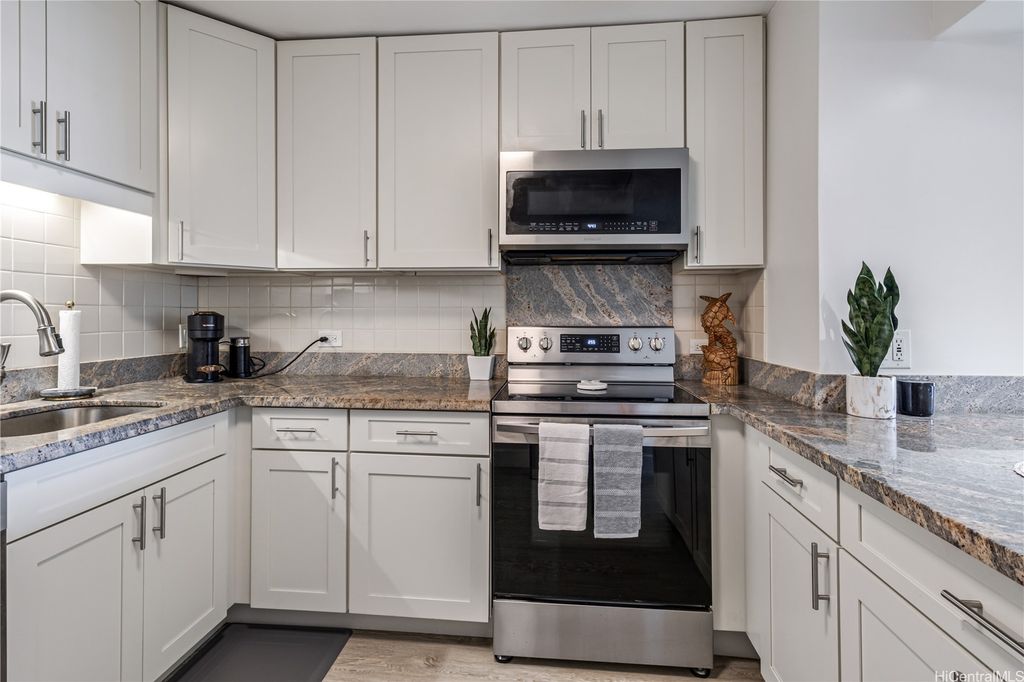 Exceptional Fee Simple 2/2 condo at Wailana at Waikiki! Discover luxury living in this beautifully remodeled condo, offering stunning city and Diamond Head views. The open and airy floor plan features elegant luxury vinyl plank flooring throughout, complemented by high-end Samsung and LG appliances. Enjoy Granite countertops in the kitchen and Quartz countertops with Limestone shower surrounds in both bathrooms. Custom blackout shades and a unique fiber optic cable installation ensure both comfort and connectivity. The well-thought-out design places bedrooms on opposite sides of the unit for added privacy and optimal cross-breezes. Located in a prime area near entertainment, beaches, parks, dining, and shopping. This condo also boasts the convenience of the Island Country Market with its deli and sushi bar located in the building's lobby. Additional features include two deeded storage units just outside your door and secured garage parking, making this a fantastic value!