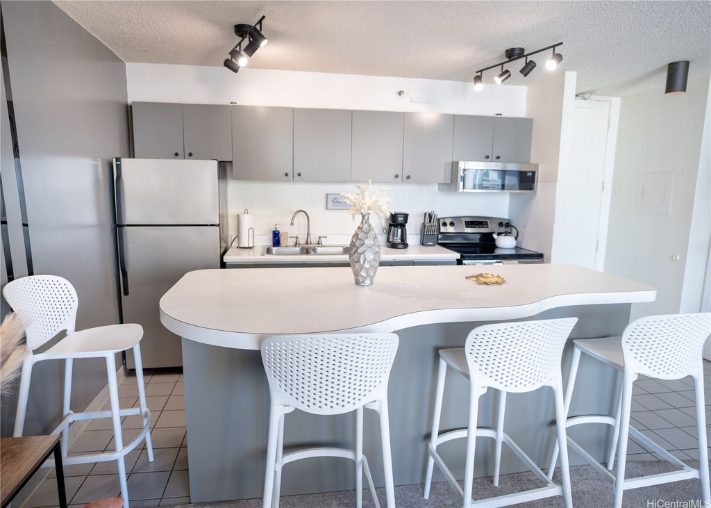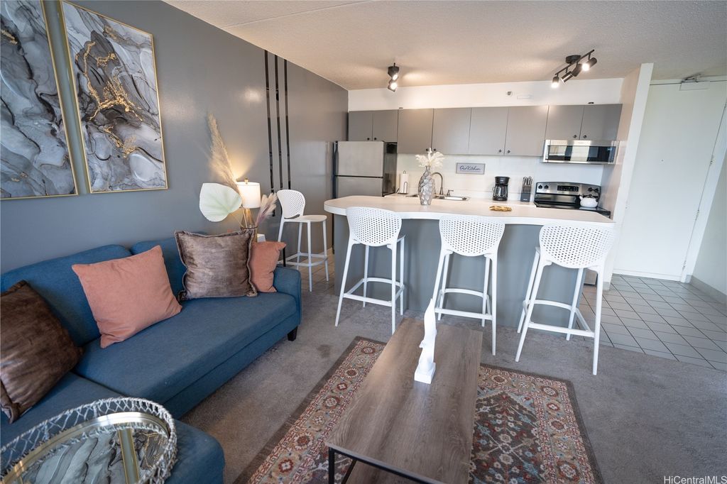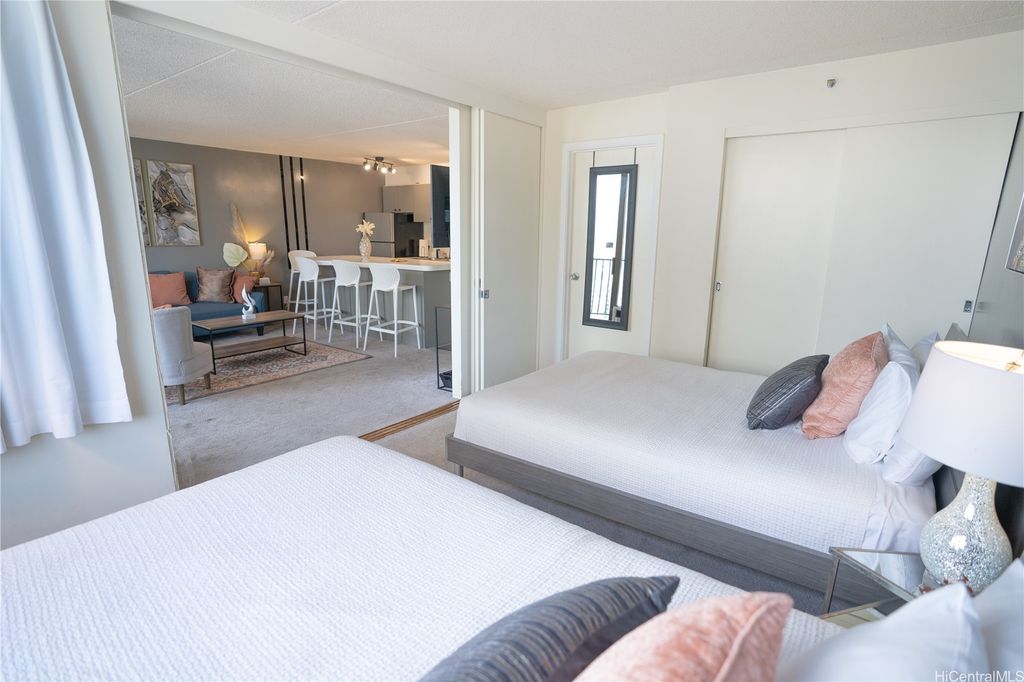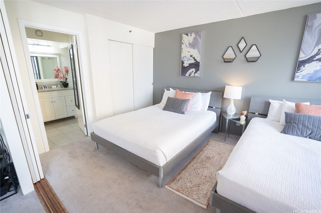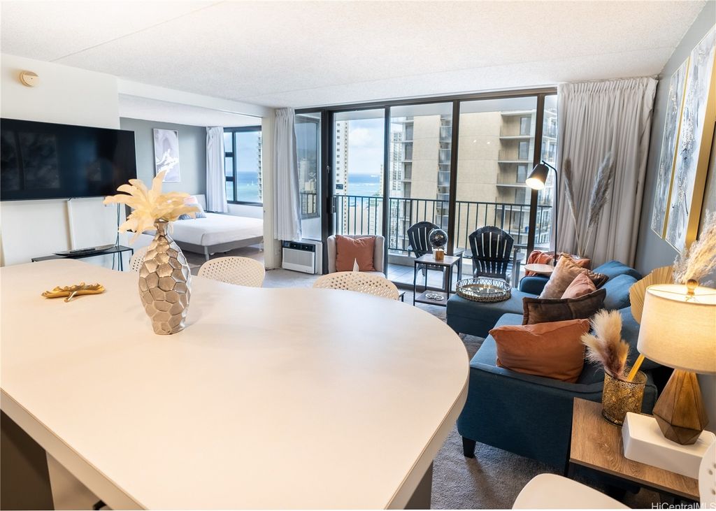 Experience the perfect blend of city and ocean views in this deluxe 28th-floor Waikiki Banyan condo, just a 5-minute walk from the famous Waikiki Beach. The spacious unit features two queen beds, a fully equipped kitchen with recently replaced appliances, upgraded bathroom with dual entry and a cozy living room with a lanai to take in breathtaking sunset views with parking included. All utilities and internet are included in the monthly dues. Enjoy access to a recreation deck with a pool, hot tubs, and BBQ grills, this property offers everything needed for a relaxing Hawaiian retreat. Enjoy the proximity to top-notch dining, shopping, and family-friendly attractions!