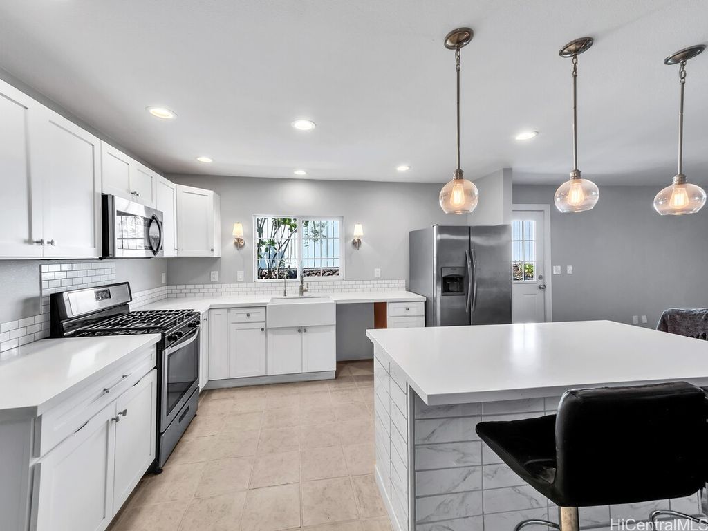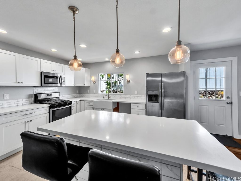 Beautifully remodeled 5-bedroom, 2-bath home in a charming neighborhood just 30 minutes from Kona Airport! This spacious property features an open kitchen, ceiling fans in every room, and a large, family-friendly backyard with front and side yards"”plus potential to build more. Includes photovoltaic/solar system and a two-car garage with washer/dryer. Conveniently located near dining, shopping, gas stations, and just a short drive to golf courses and beaches. Residents enjoy access to a community park with picnic tables, BBQ areas, and playgrounds. Easy to show and move-in ready! Property to be sold as is; buyer to do their own due diligence.