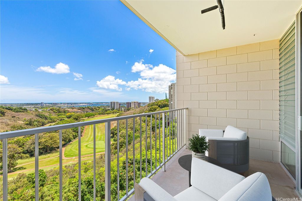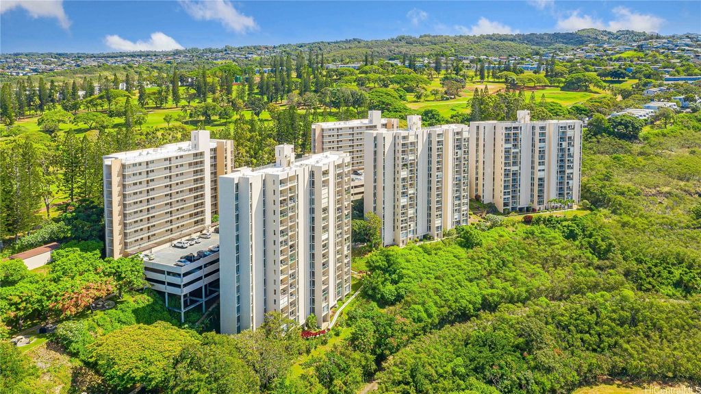 PRICE REDUCED FOR QUICK SALE! $70,000 less than any other unit! In great condition, SELLER NEEDS TO SELL NOW! Spacious 2-bedroom, 2-bath unit in a gated complex with resort-style amenities! Enjoy an open kitchen that flows into the living area with beautiful golf course views extending to Pearl Harbor. Covered parking is right next to the walkway on the same floor as the unit"”no need to use an elevator. Previously remodeled with open concept kitchen to living area and move-in ready, with just a touch of TLC needed to make it your own. Amenities include a heated swimming pool, tennis and pickleball court, indoor driving range, exercise rooms with saunas, recreation room with a pool and ping pong table, basketball court, and BBQ areas with outdoor dining. Conveniently located near Pearlridge Center, offering shopping, dining, and quick access to military bases.