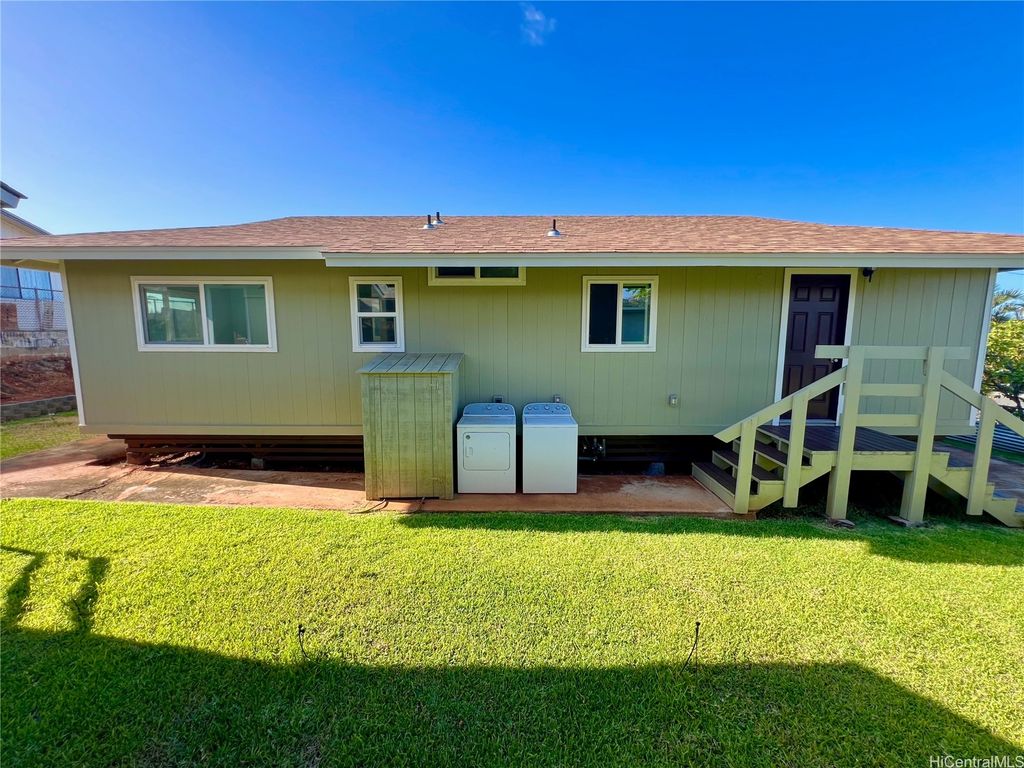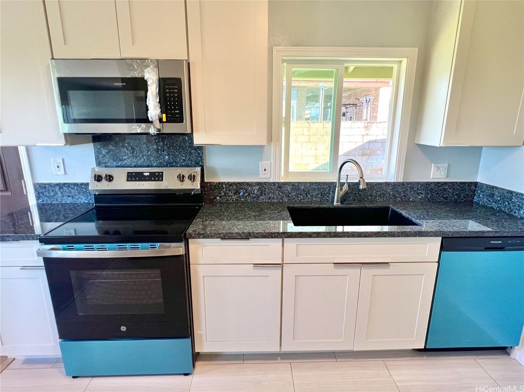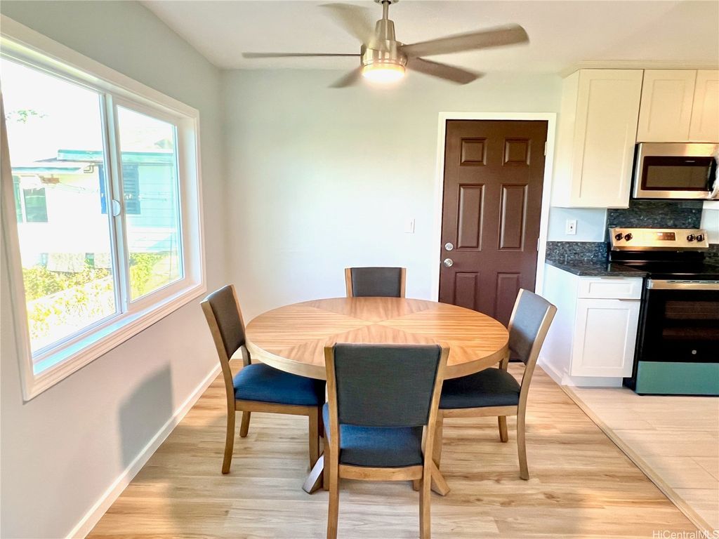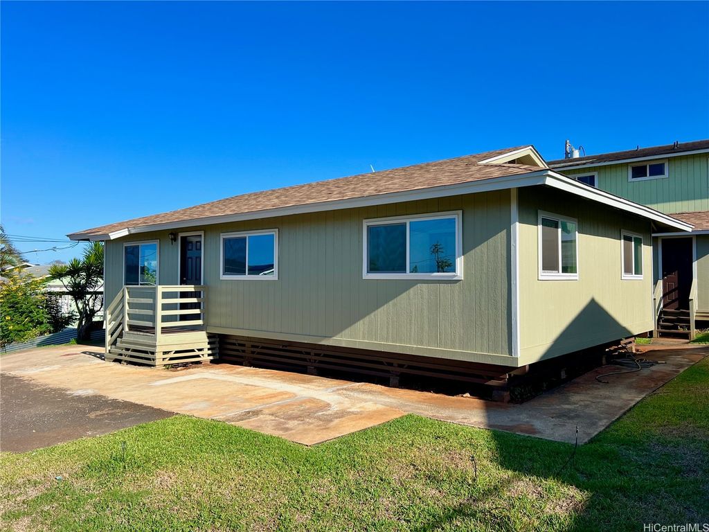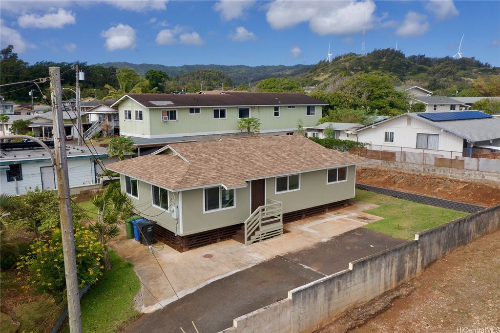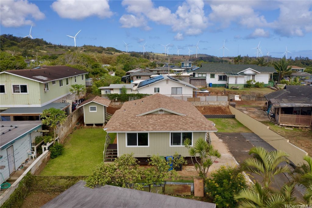 Peek-a-boo Ocean Views from this completely updated and renovated North Shore 3 bedroom 1 1/2 bathroom home in Kahuku, priced under $1,000,000. All new kitchen cabinets, quartz countertops, stainless steel appliances, kitchen floor tile, as well as all new bathroom renovations including new floor-to-ceiling tiled walk-in shower, new bathroom vanity with quartz countertops, new tiled bathroom floors, all new luxury vinyl plank flooring throughout the home, new closet doors, all new lighting fixtures, new vinyl windows throughout the home, a new roof, and updated electrical and plumbing work. Bonus well-built shed in the backyard, as well. Move-in ready! Located on an elevated lot at the end of a quiet cul-de-sac with wonderful views and very nice and cool tradewind breezes. Situated less than 3 blocks to Kahuku District Park and Kahuku Elementary School. A short drive to North Shore beaches, Turtle Bay Resort, BYUH, and the Polynesian Cultural Center and about 1 hour to Honolulu. Very easy to view on short notice. Welcome home!