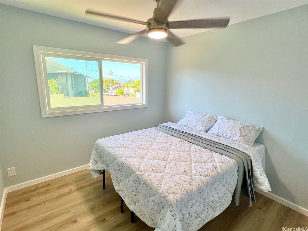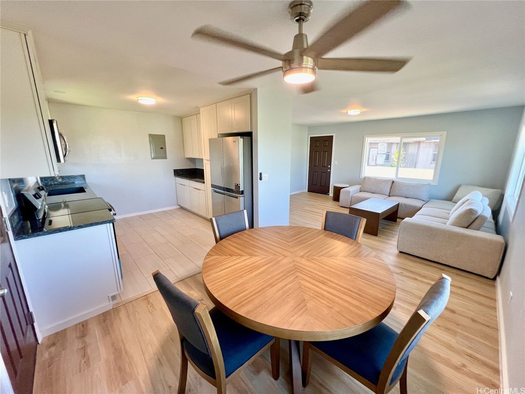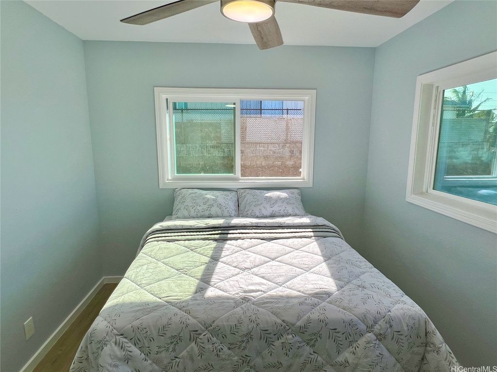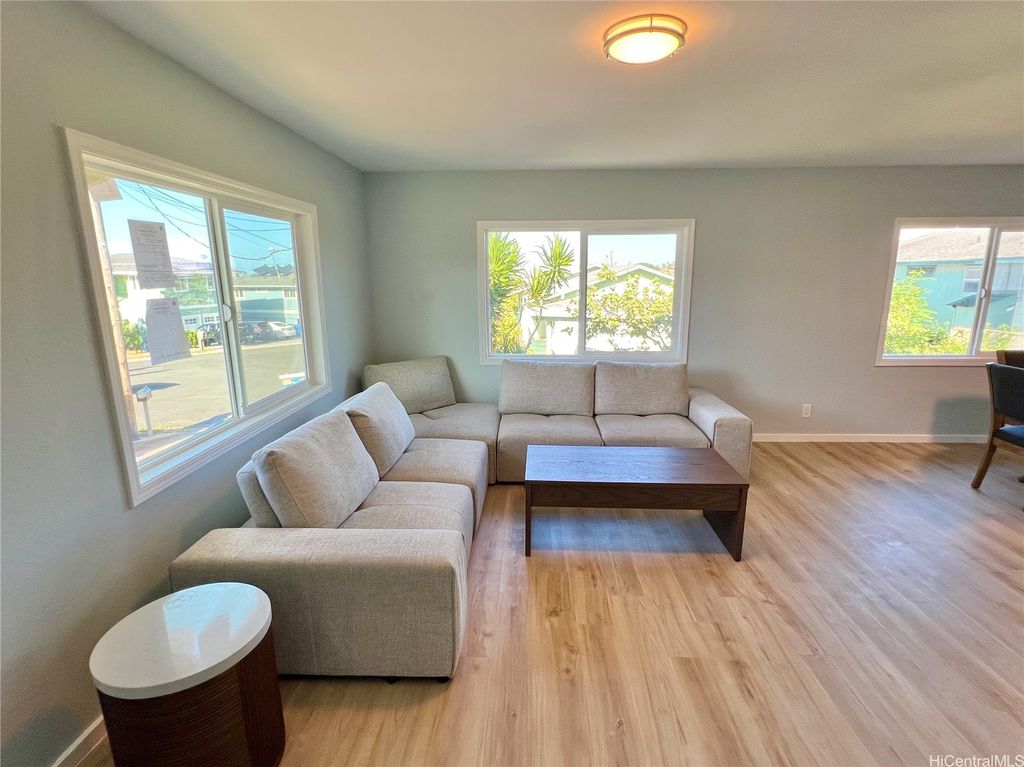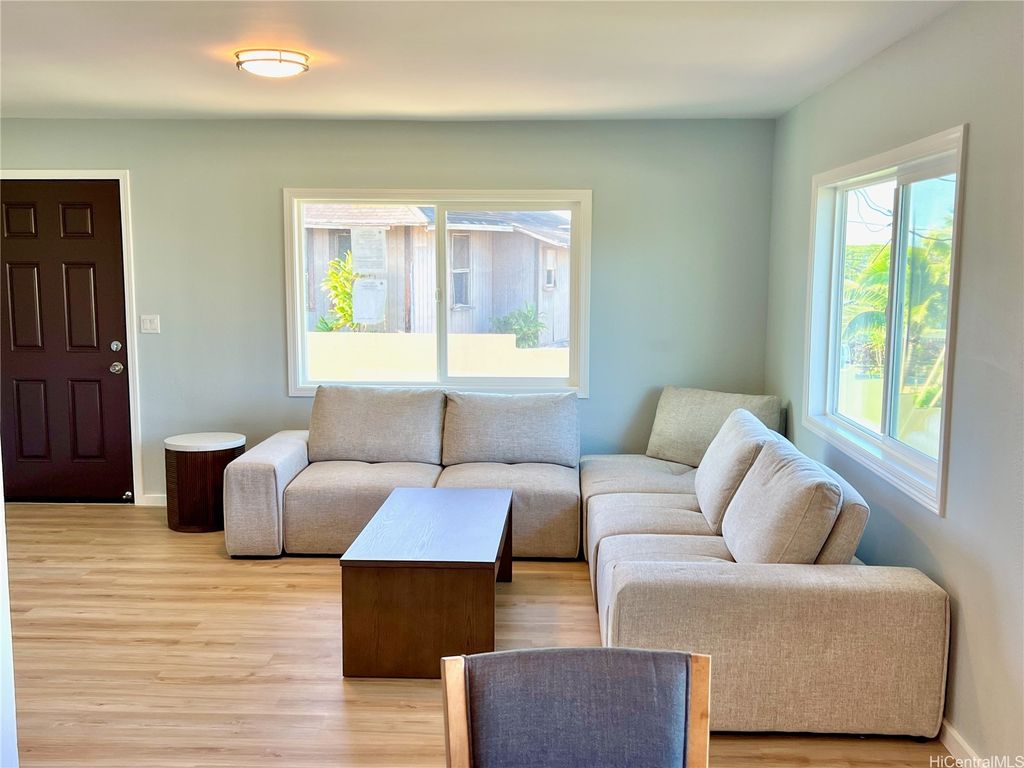 Peek-a-boo Ocean Views from this completely updated and renovated North Shore 3 bedroom 1 1/2 bathroom home in Kahuku, priced under $1,000,000. All new kitchen cabinets, quartz countertops, stainless steel appliances, kitchen floor tile, as well as all new bathroom renovations including new floor-to-ceiling tiled walk-in shower, new bathroom vanity with quartz countertops, new tiled bathroom floors, all new luxury vinyl plank flooring throughout the home, new closet doors, all new lighting fixtures, new vinyl windows throughout the home, a new roof, and updated electrical and plumbing work. Bonus well-built shed in the backyard, as well. Move-in ready! Located on an elevated lot at the end of a quiet cul-de-sac with wonderful views and very nice and cool tradewind breezes. Situated less than 3 blocks to Kahuku District Park and Kahuku Elementary School. A short drive to North Shore beaches, Turtle Bay Resort, BYUH, and the Polynesian Cultural Center and about 1 hour to Honolulu. Very easy to view on short notice. Welcome home!