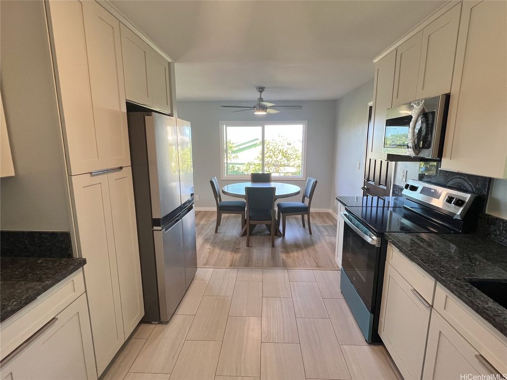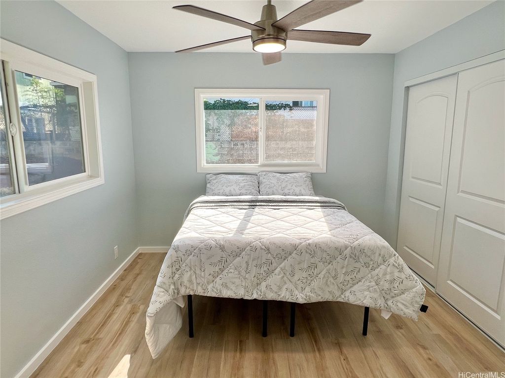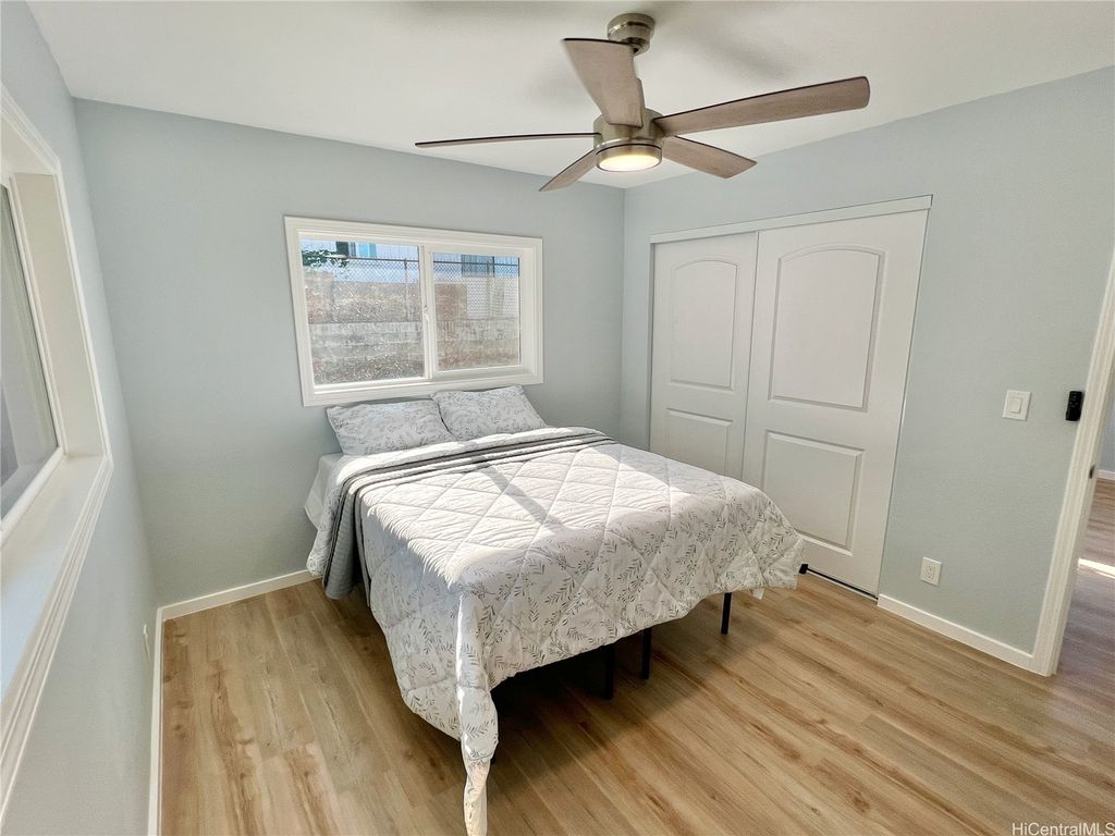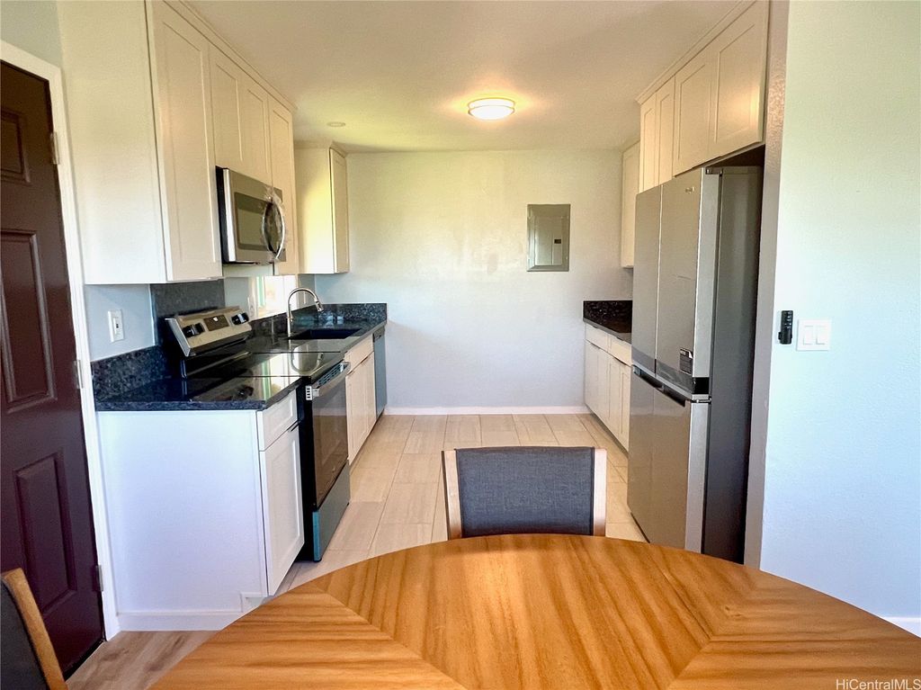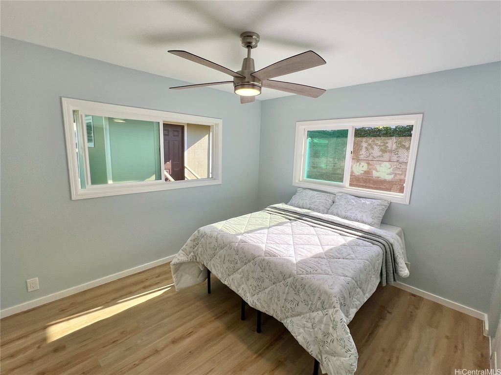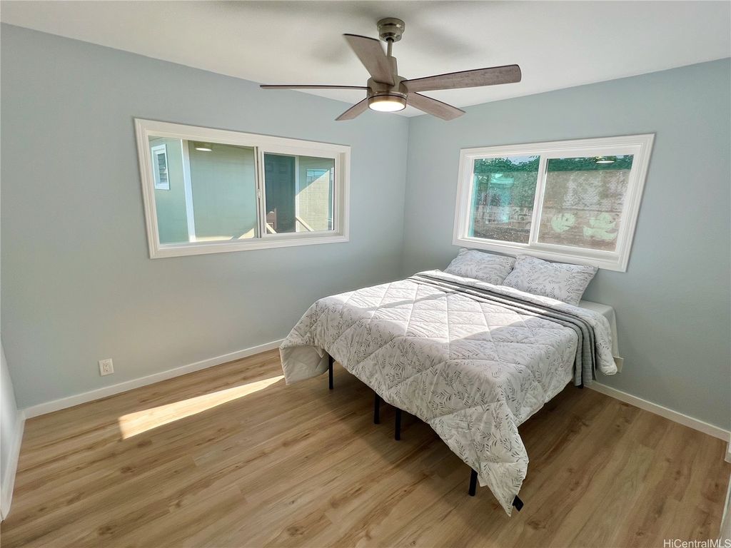 Peek-a-boo Ocean Views from this completely updated and renovated North Shore 3 bedroom 1 1/2 bathroom home in Kahuku, priced under $1,000,000. All new kitchen cabinets, quartz countertops, stainless steel appliances, kitchen floor tile, as well as all new bathroom renovations including new floor-to-ceiling tiled walk-in shower, new bathroom vanity with quartz countertops, new tiled bathroom floors, all new luxury vinyl plank flooring throughout the home, new closet doors, all new lighting fixtures, new vinyl windows throughout the home, a new roof, and updated electrical and plumbing work. Bonus well-built shed in the backyard, as well. Move-in ready! Located on an elevated lot at the end of a quiet cul-de-sac with wonderful views and very nice and cool tradewind breezes. Situated less than 3 blocks to Kahuku District Park and Kahuku Elementary School. A short drive to North Shore beaches, Turtle Bay Resort, BYUH, and the Polynesian Cultural Center and about 1 hour to Honolulu. Very easy to view on short notice. Welcome home!