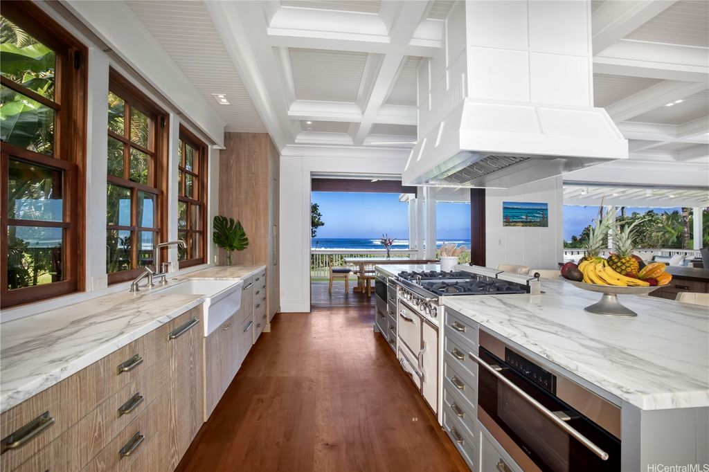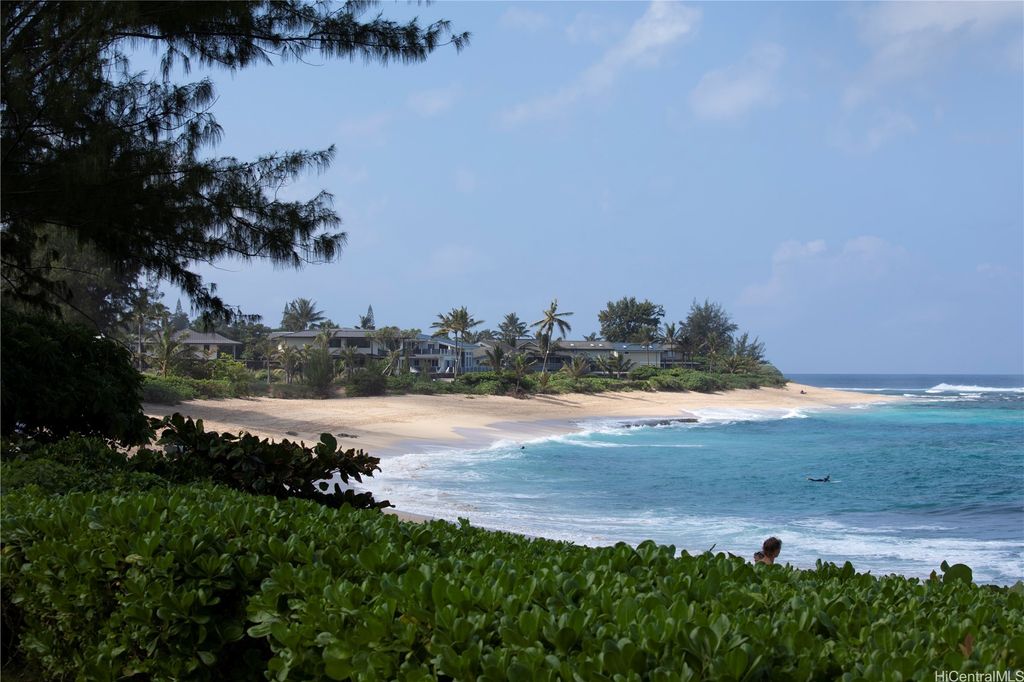 Crafted by renowned design firm JZMK Partners of Costa Mesa, this island-inspired coastal retreat is the embodiment of luxury living by the sea. From the moment you enter through custom hardwood doors, you're transported to a world where elegant architecture meets relaxed tropical living. Set against the backdrop of one of Hawai"˜i's most iconic beaches and surf spots, this stunning residence offers seamless indoor-outdoor living with expansive seaside lanais and thoughtfully designed spaces that invite gathering, entertaining, and quiet reflection. The gourmet kitchen is a dream for chefs and hosts alike, featuring dual islands, professional-grade appliances, and beautifully finished custom cabinetry. Whether preparing a casual breakfast or an elaborate dinner party, every detail is tailored for ease and elegance. Surrounding the home is lush tropical landscaping that completes the sense of serene seclusion, while the beach just beyond remains ever within reach. This is more than a home"”it's a rare coastal compound that captures the essence of island living with architectural pedigree, natural beauty, and effortless luxury. Welcome to the North Shore's ultimate beach house.